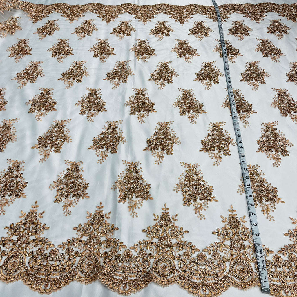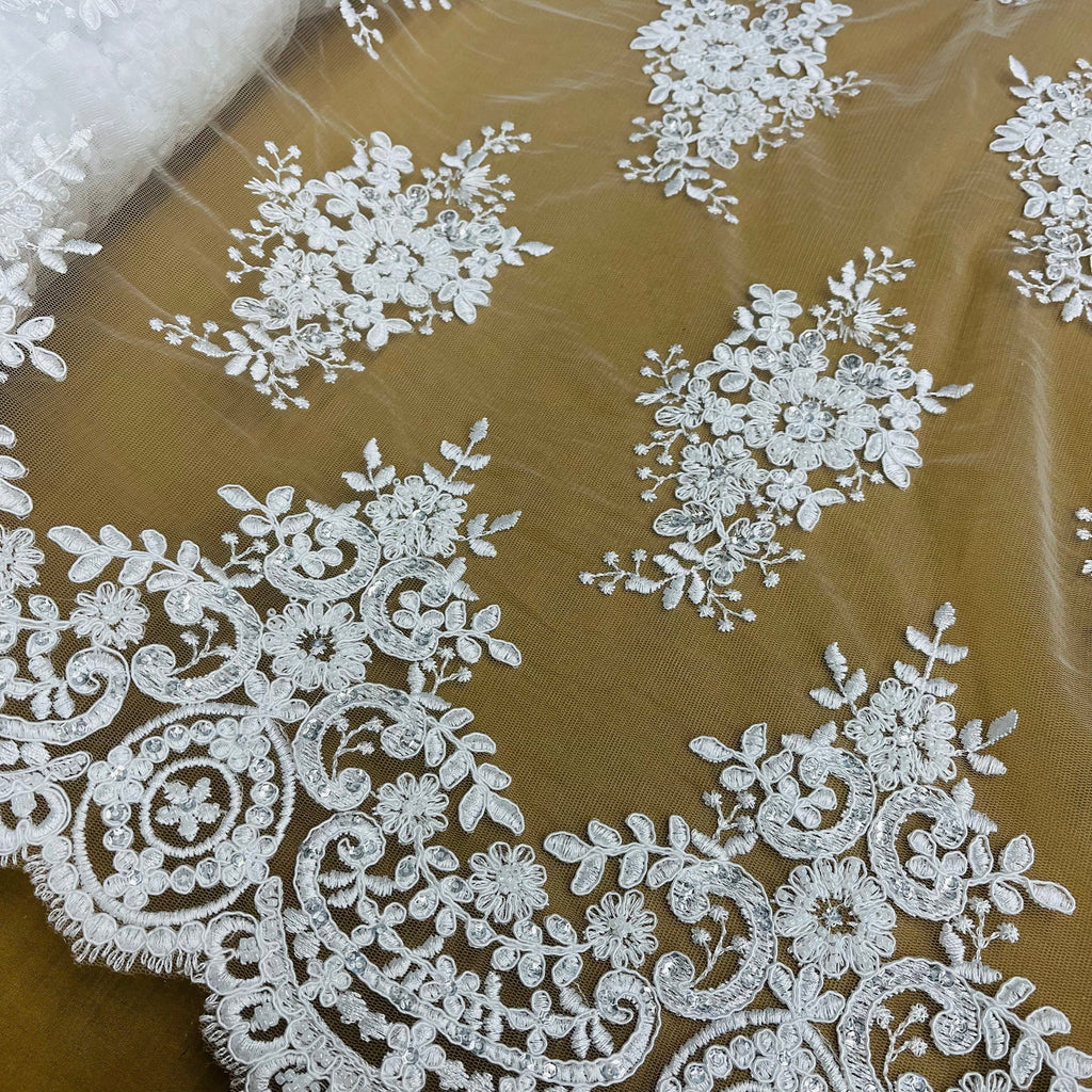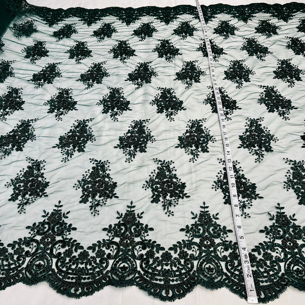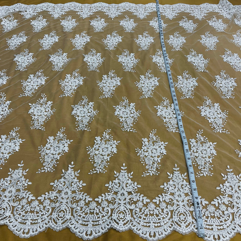 Beaded & Corded Lace Fabric Embroidered on 100% Polyester Net Mesh | Lace USA - 97019W-HB