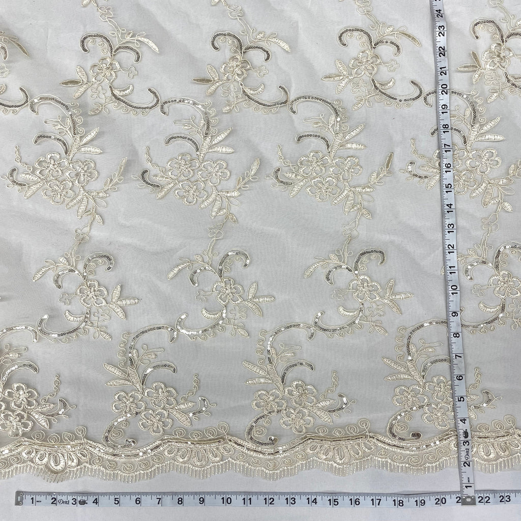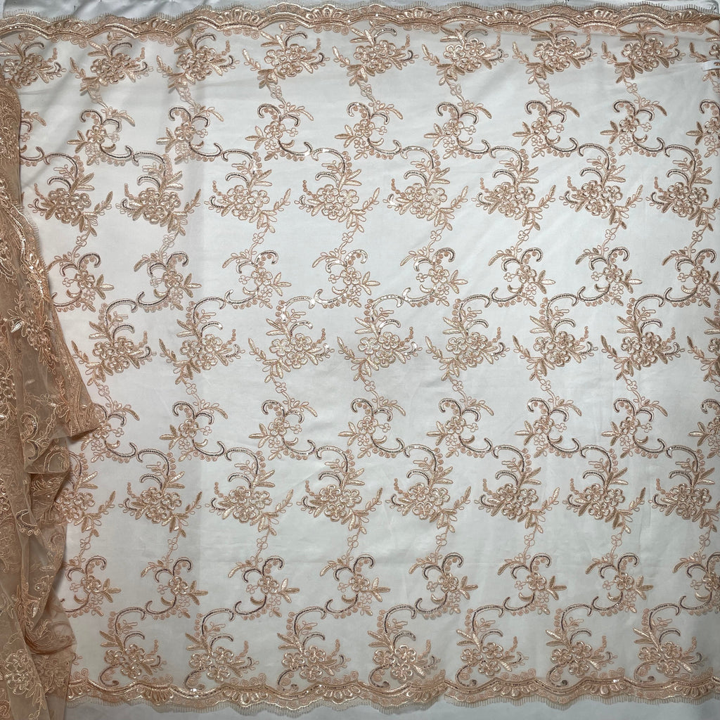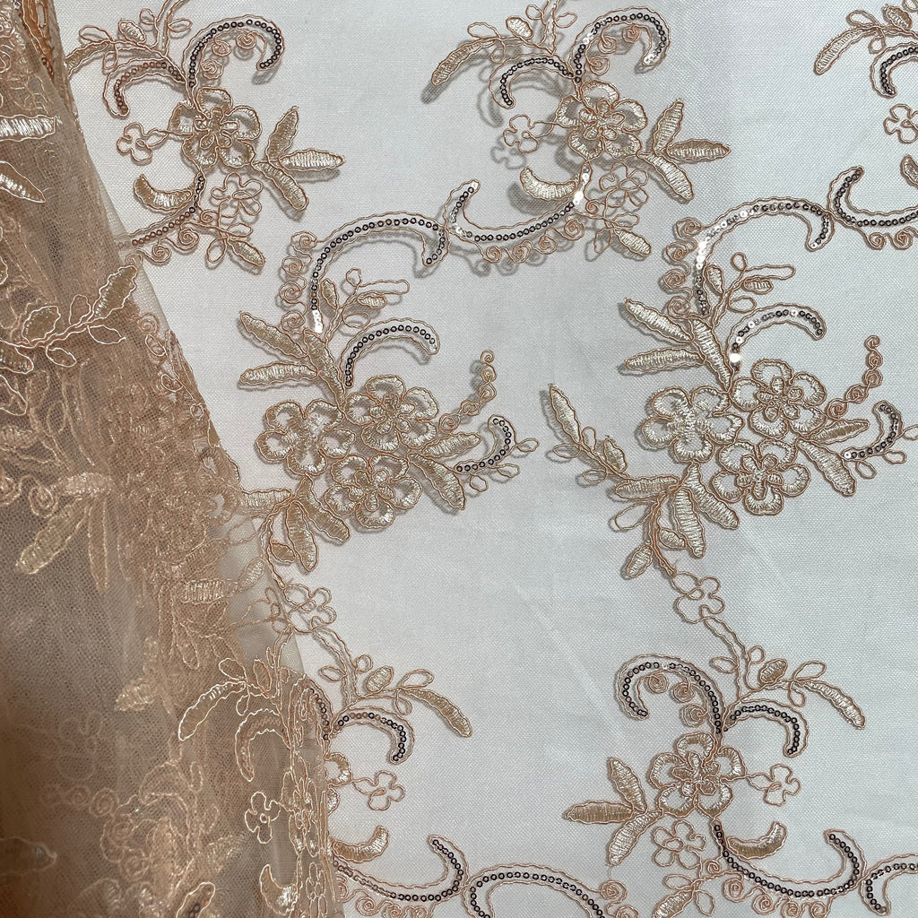 Enhance your special occasion look with our Sequined & Corded Lace Fabric. Finely embroidered with cording and adorned with sequins, this luxurious lace is available in 4 stunning colors. Perfect for bridal gowns, quinceanera dresses, dance costumes, and evening wear, it adds an elegant touch to any creation. The fabric is approximately 54" wide and ships within 24 business hours.