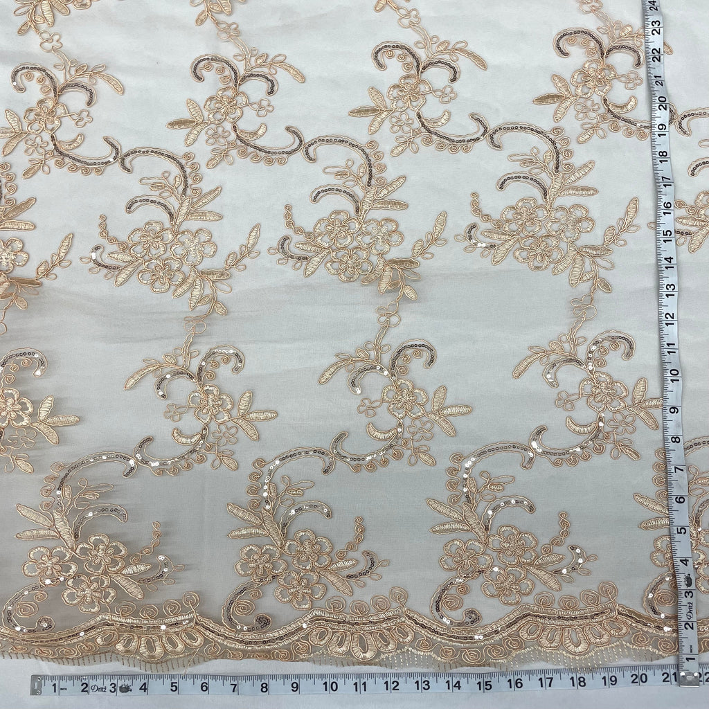 Sequined & Corded Lace Fabric Embroidered on 100% Polyester Net Mesh | Lace USA - GD-09