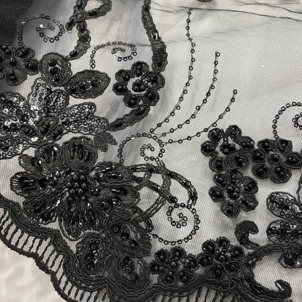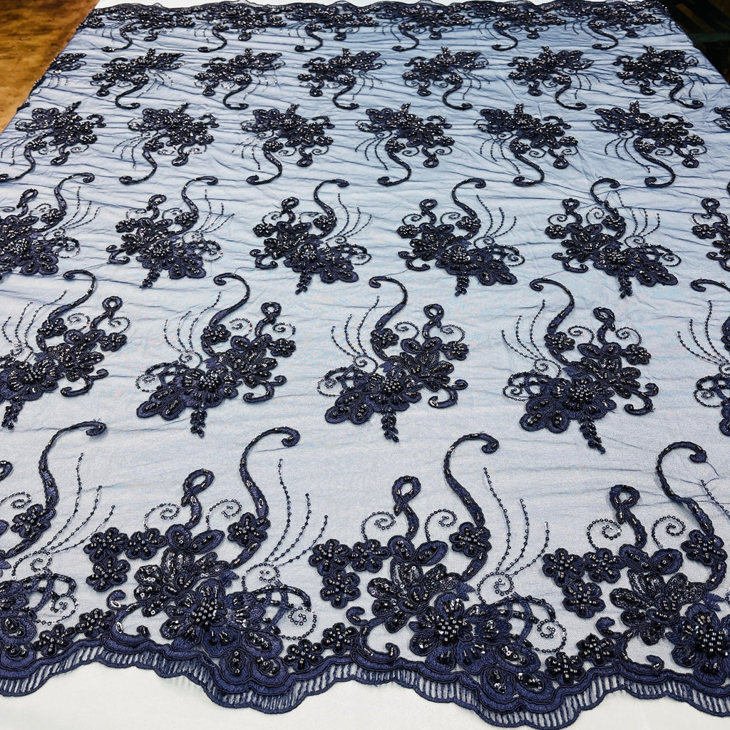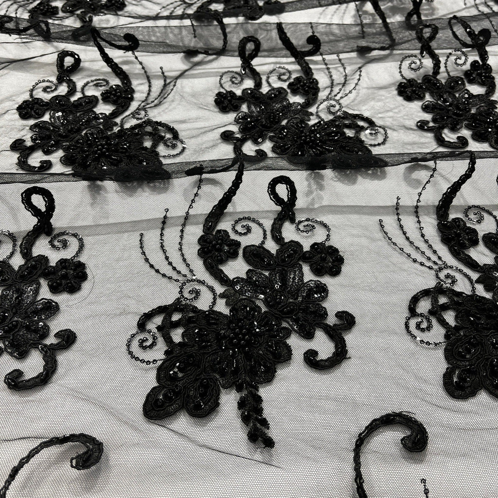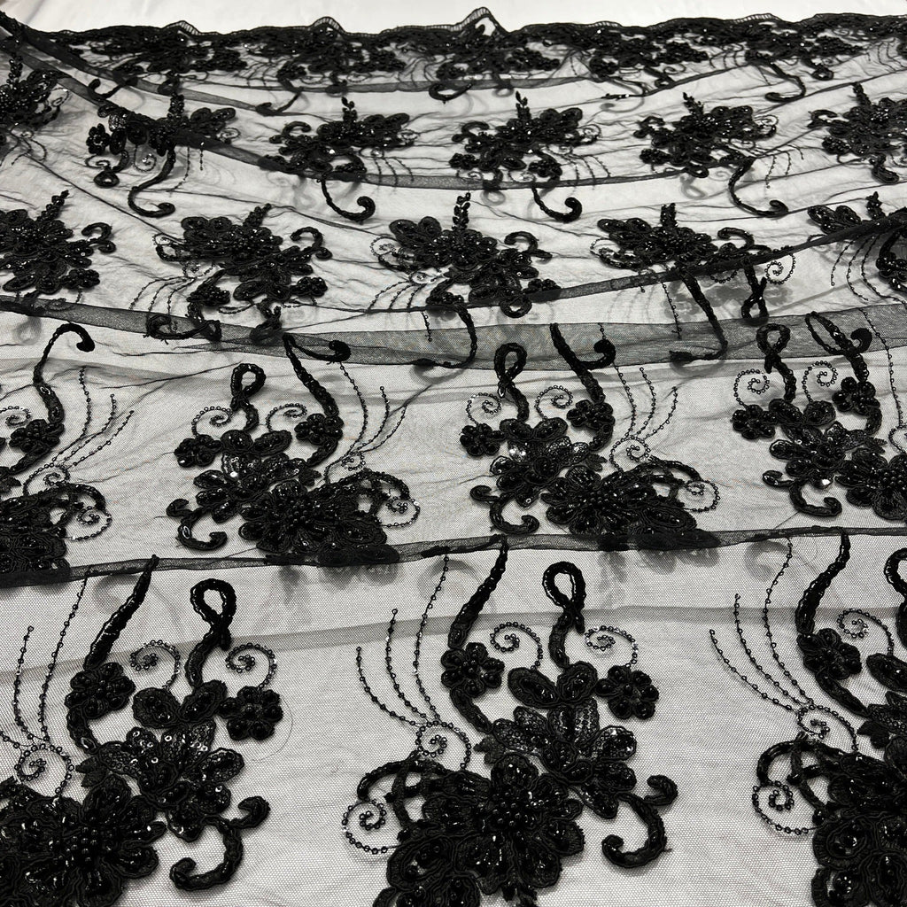 Beaded & Corded Lace Fabric Embroidered on 100% Polyester Net Mesh | Lace USA - GD-1807