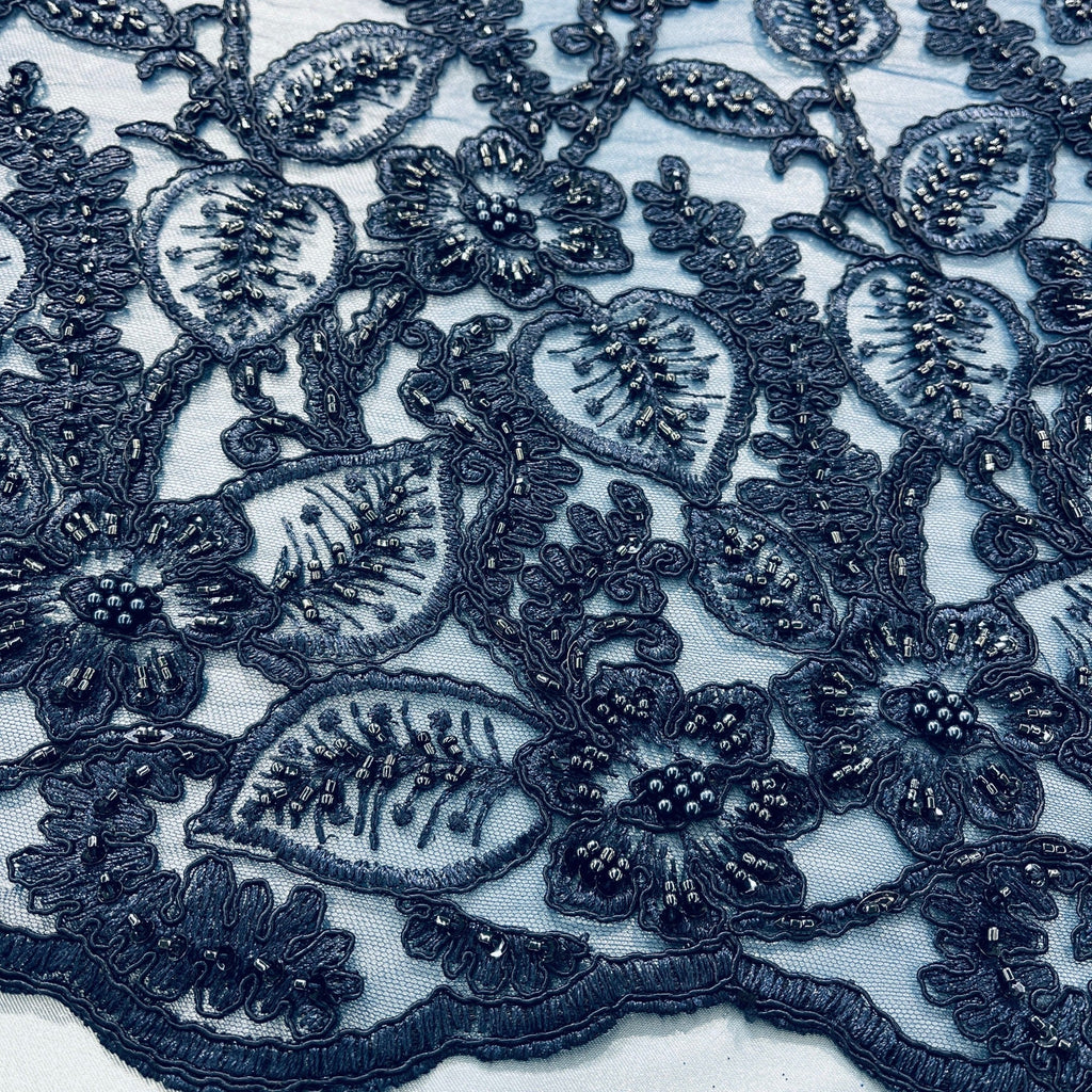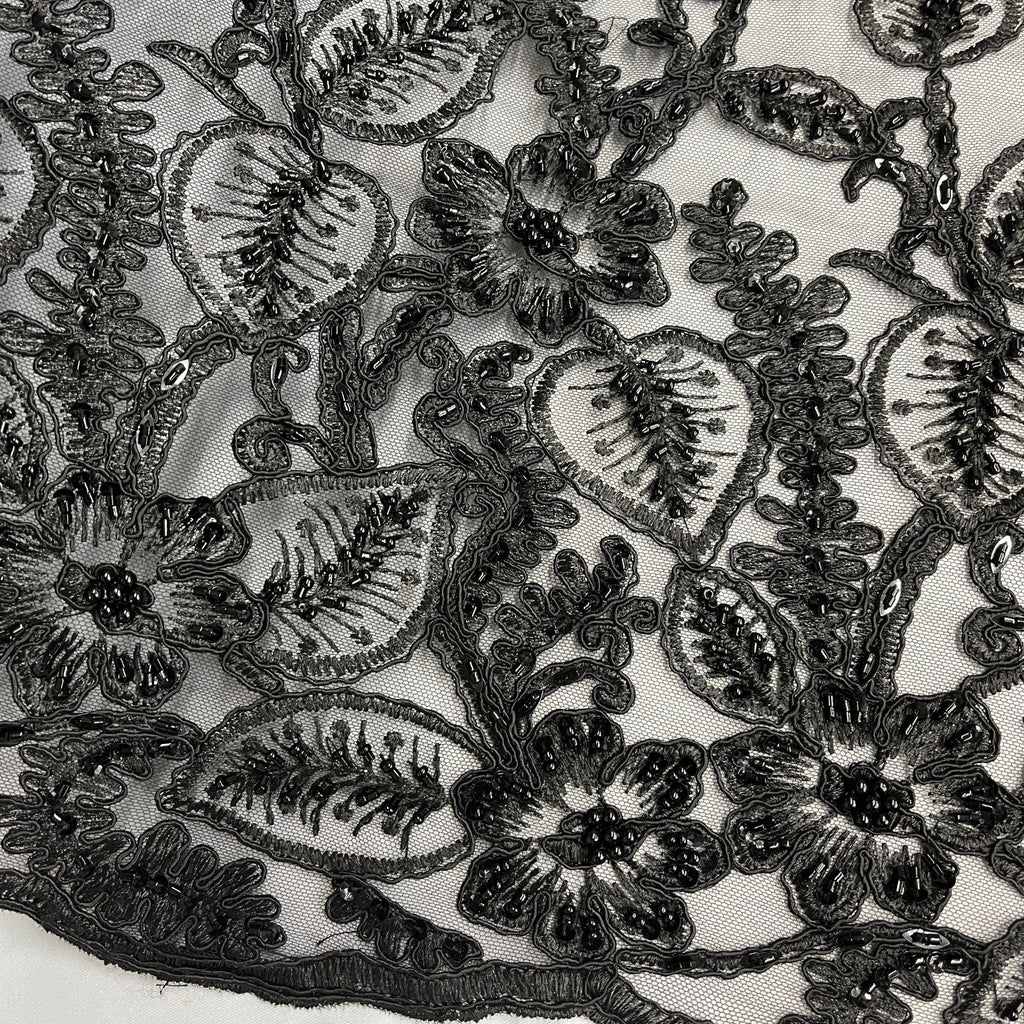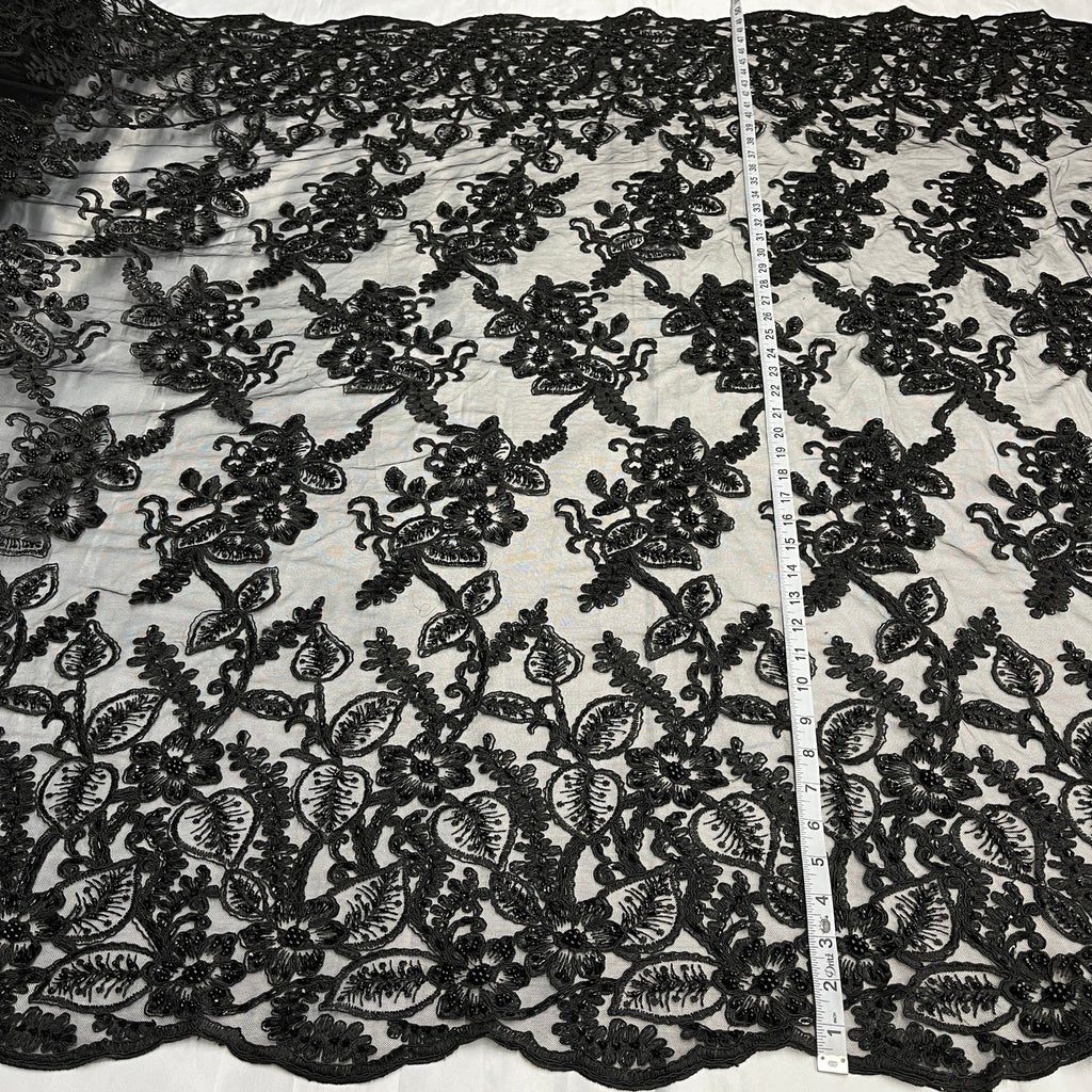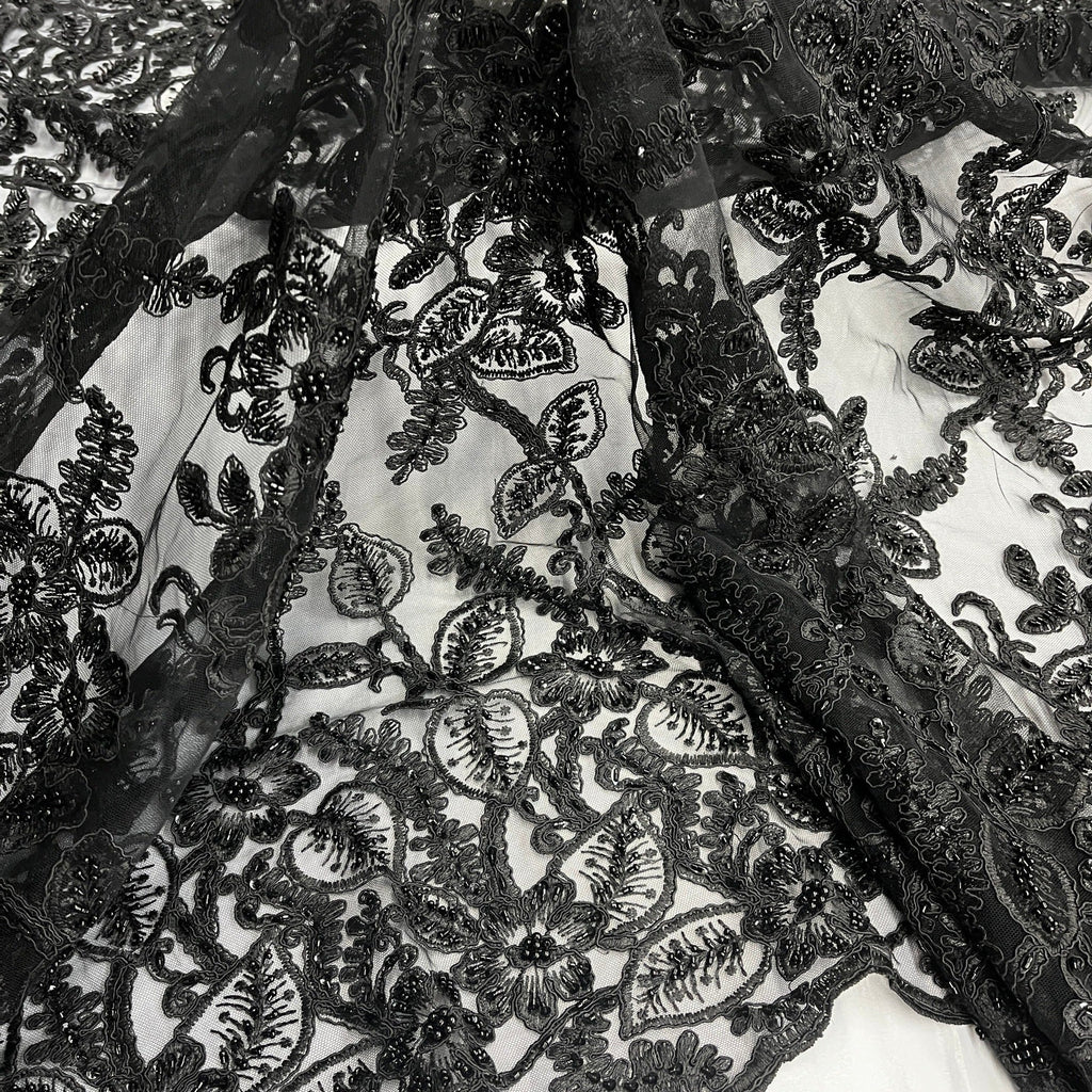 Beaded & Corded Lace Fabric Embroidered on 100% Polyester Net Mesh | Lace USA - GD-1823