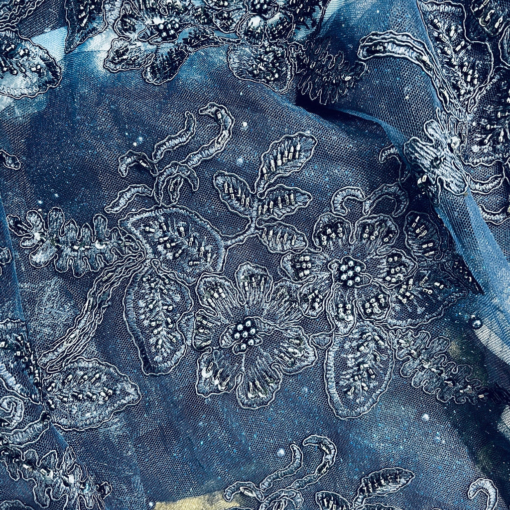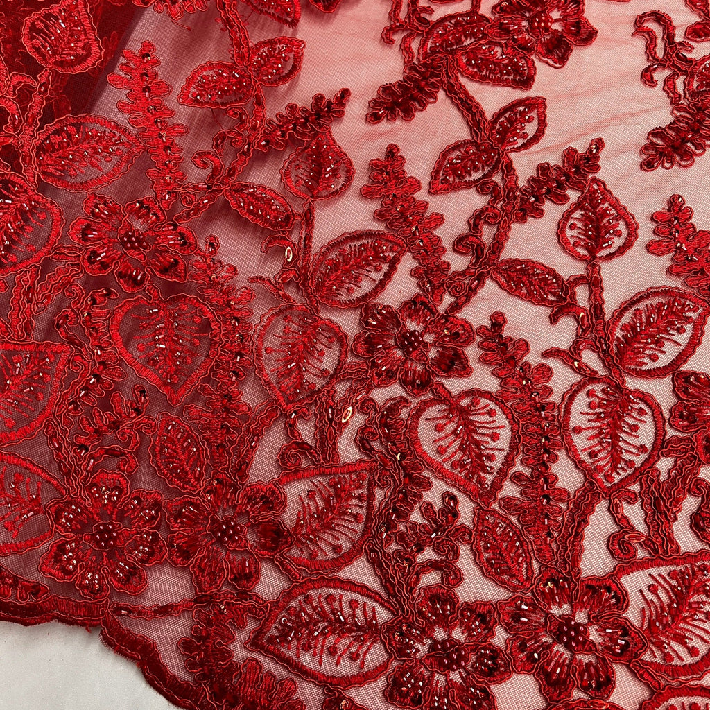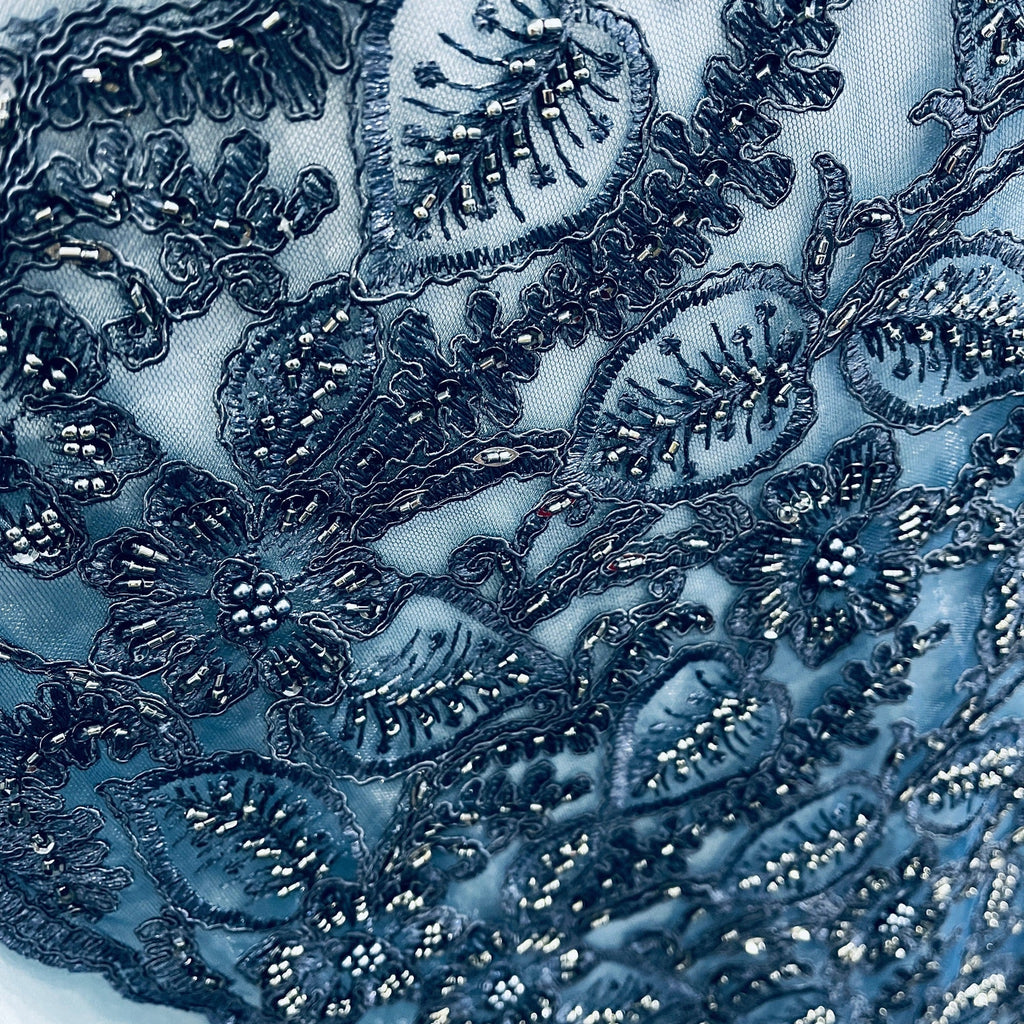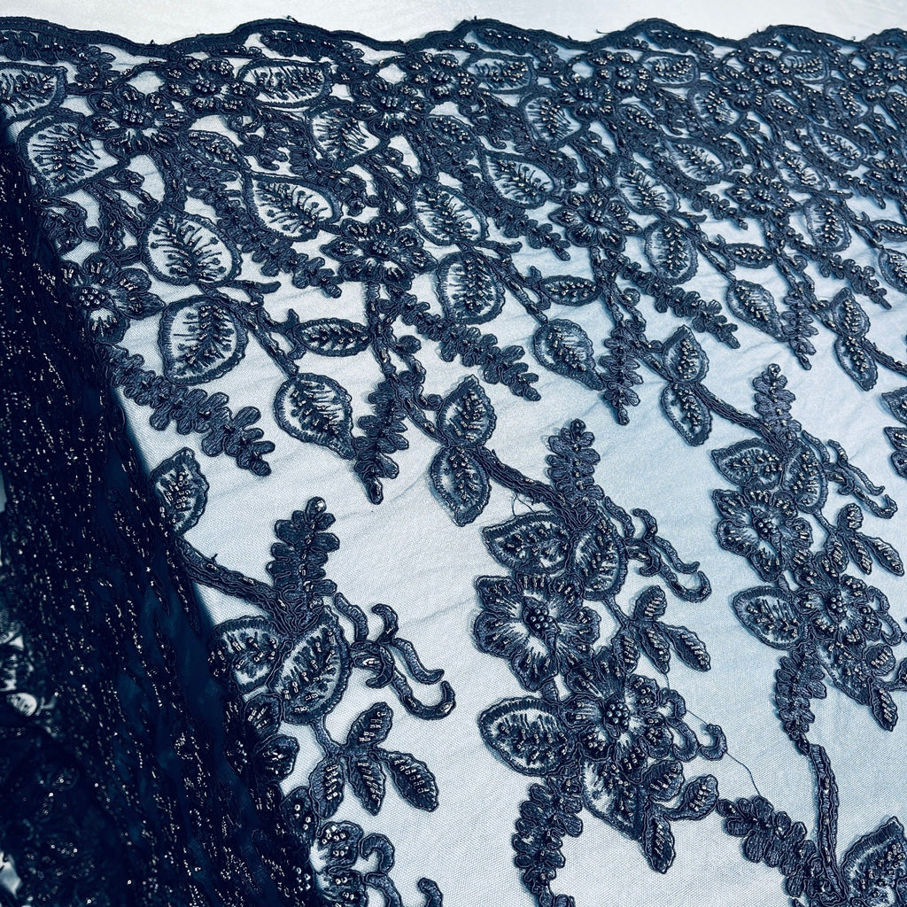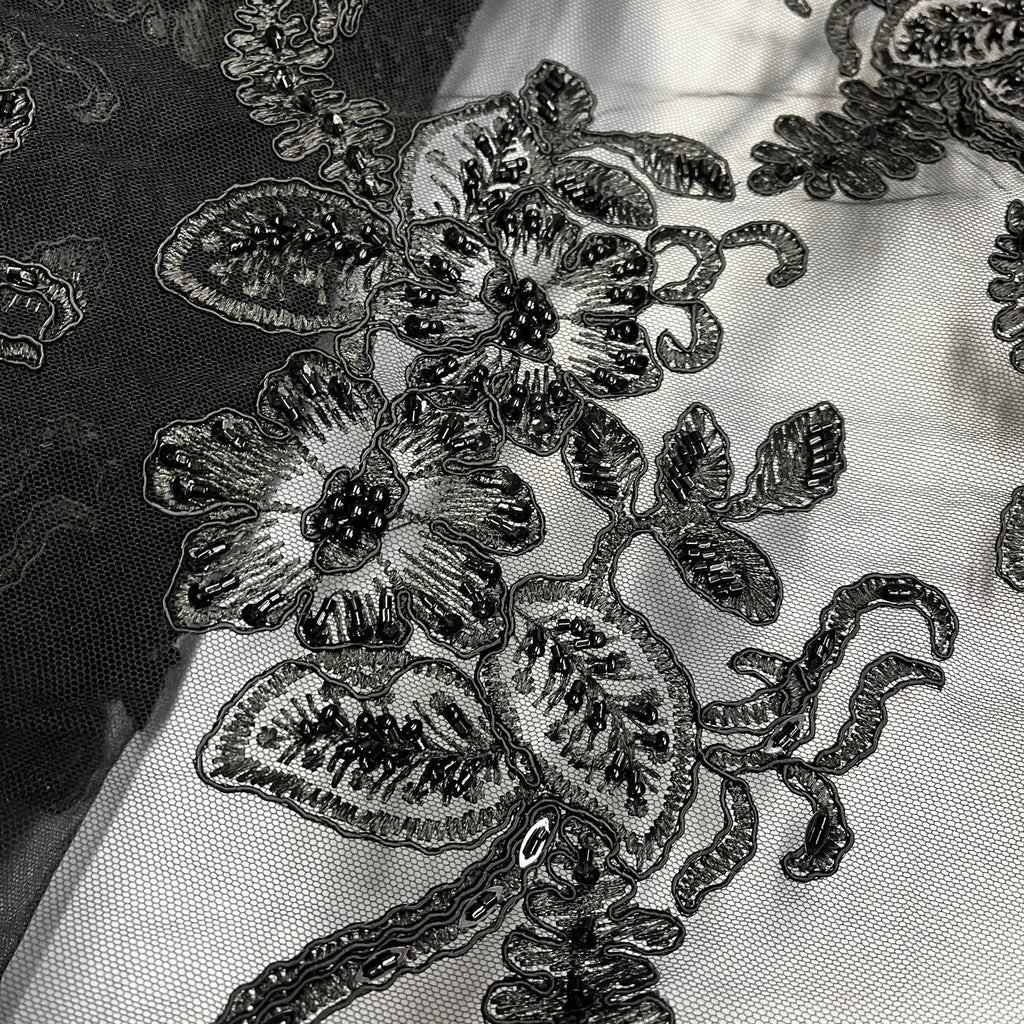 Beaded & Corded Lace Fabric Embroidered on 100% Polyester Net Mesh | Lace USA - GD-1823