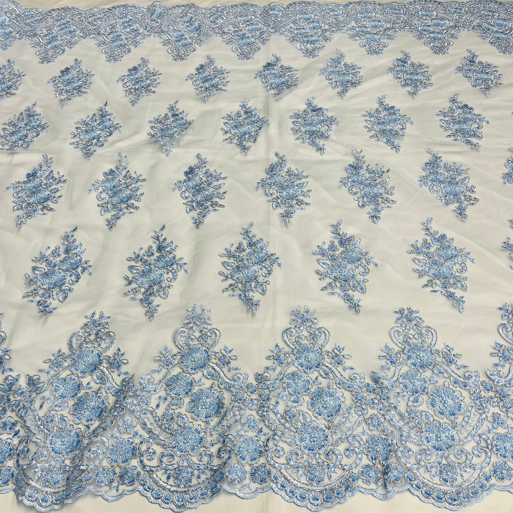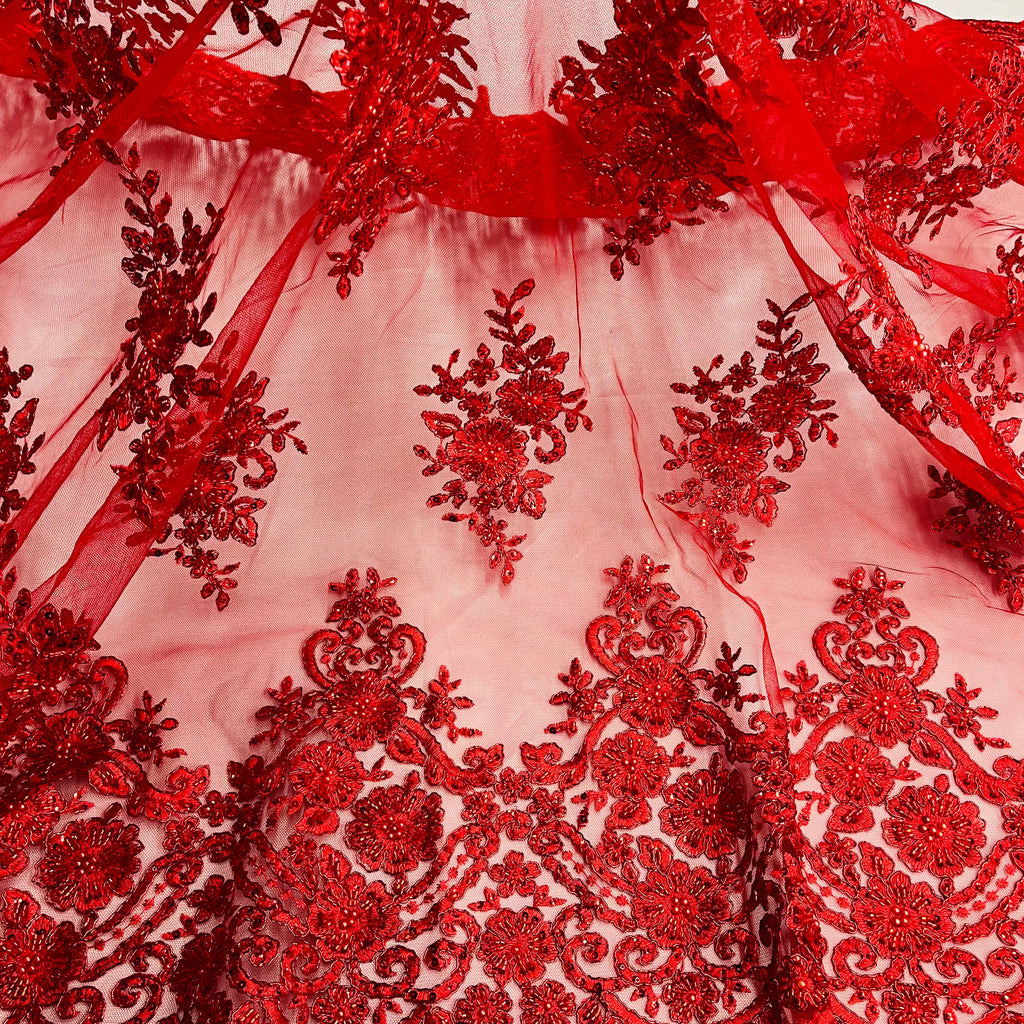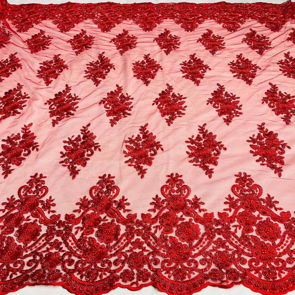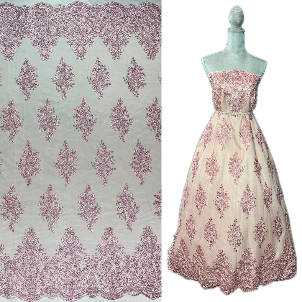 Make your special occasion outfit stand out from the crowd with this regal and exquisite Beaded & Corded lace fabric. This luxury French Lace fabric is intricately sewn together with beads and sequins to create the perfect combination of timeless elegance and delicate glamour. Perfect for any gowns, wedding dresses, quinceanera dresses, dance costumes, and special occasions, this fabric is made from 100% polyester net mesh and is approximately 54” wide. Available in 7 stunning colors, it’s the perfect way to add a touch of luxury to any look. Whether you’re looking to add a chic accent to a sleek evening dress, a dramatic flair to your dance costume, or an intricate texture to your wedding veil, this Beaded & Corded Lace fabric is the perfect way to make an unforgettable statement. With its beaded couture lace, corded evening dress lace, beaded quinceanera dress lace, corded dance costume lace, beaded embroidered lace, and decorative beaded lace, it’s sure to be the star of the show. Make your next special occasion outfit truly spectacular with this elegant and luxurious Beaded & Corded lace fabric!