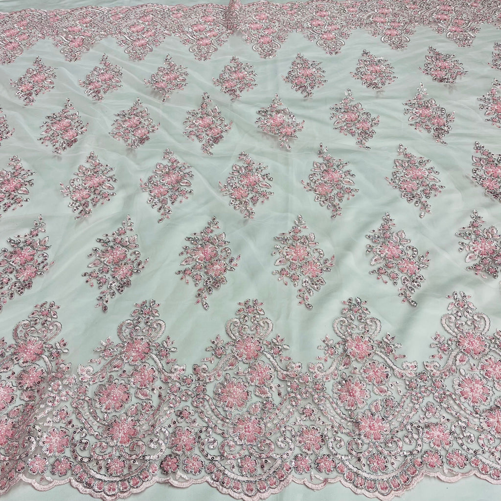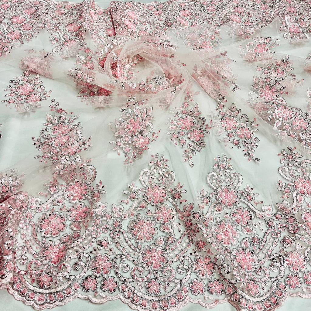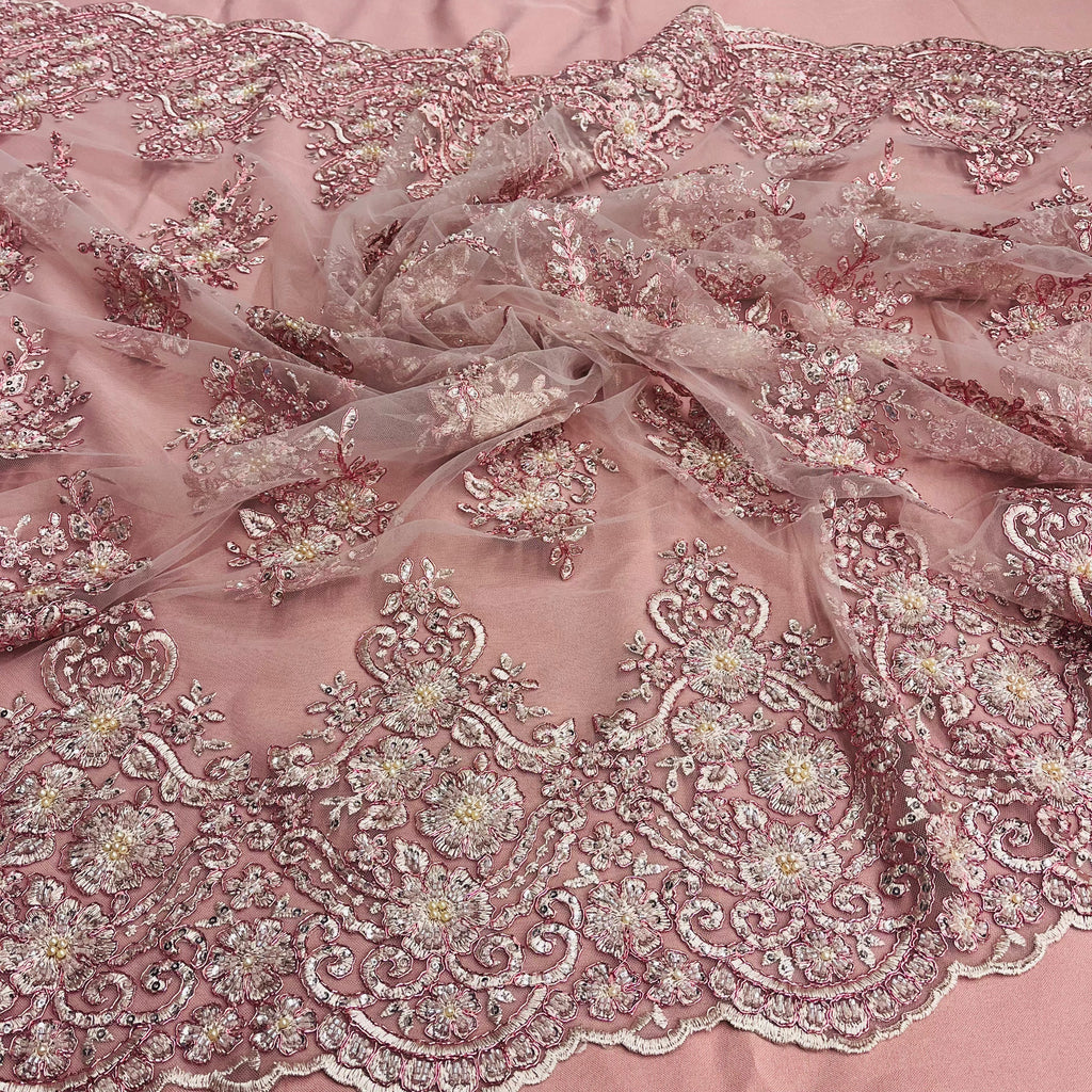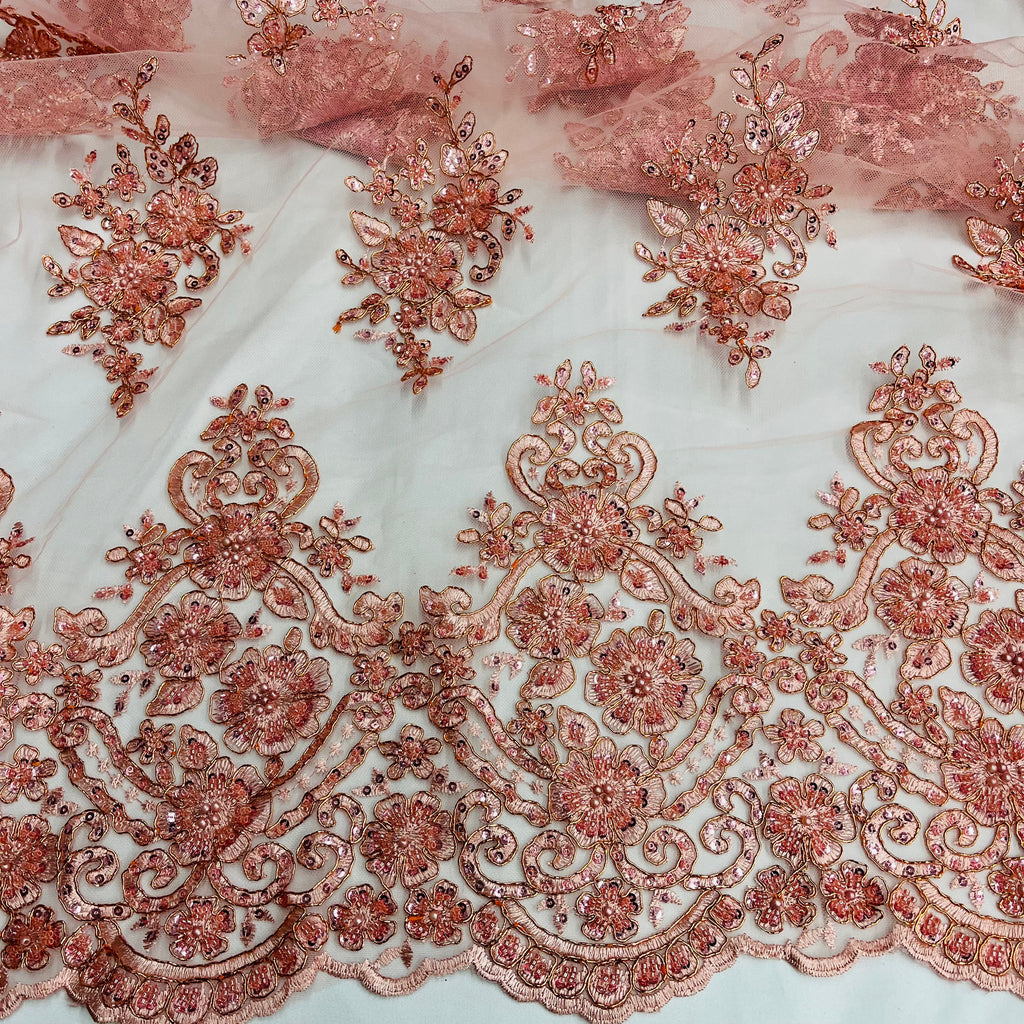 Make your special occasion outfit stand out from the crowd with this regal and exquisite Beaded & Corded lace fabric. This luxury French Lace fabric is intricately sewn together with beads and sequins to create the perfect combination of timeless elegance and delicate glamour. Perfect for any gowns, wedding dresses, quinceanera dresses, dance costumes, and special occasions, this fabric is made from 100% polyester net mesh and is approximately 54” wide. Available in 7 stunning colors, it’s the perfect way to add a touch of luxury to any look. Whether you’re looking to add a chic accent to a sleek evening dress, a dramatic flair to your dance costume, or an intricate texture to your wedding veil, this Beaded & Corded Lace fabric is the perfect way to make an unforgettable statement. With its beaded couture lace, corded evening dress lace, beaded quinceanera dress lace, corded dance costume lace, beaded embroidered lace, and decorative beaded lace, it’s sure to be the star of the show. Make your next special occasion outfit truly spectacular with this elegant and luxurious Beaded & Corded lace fabric!