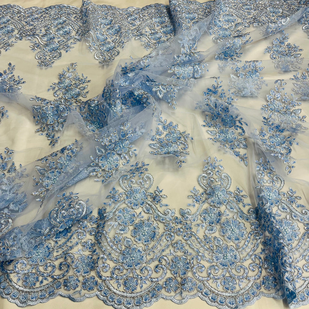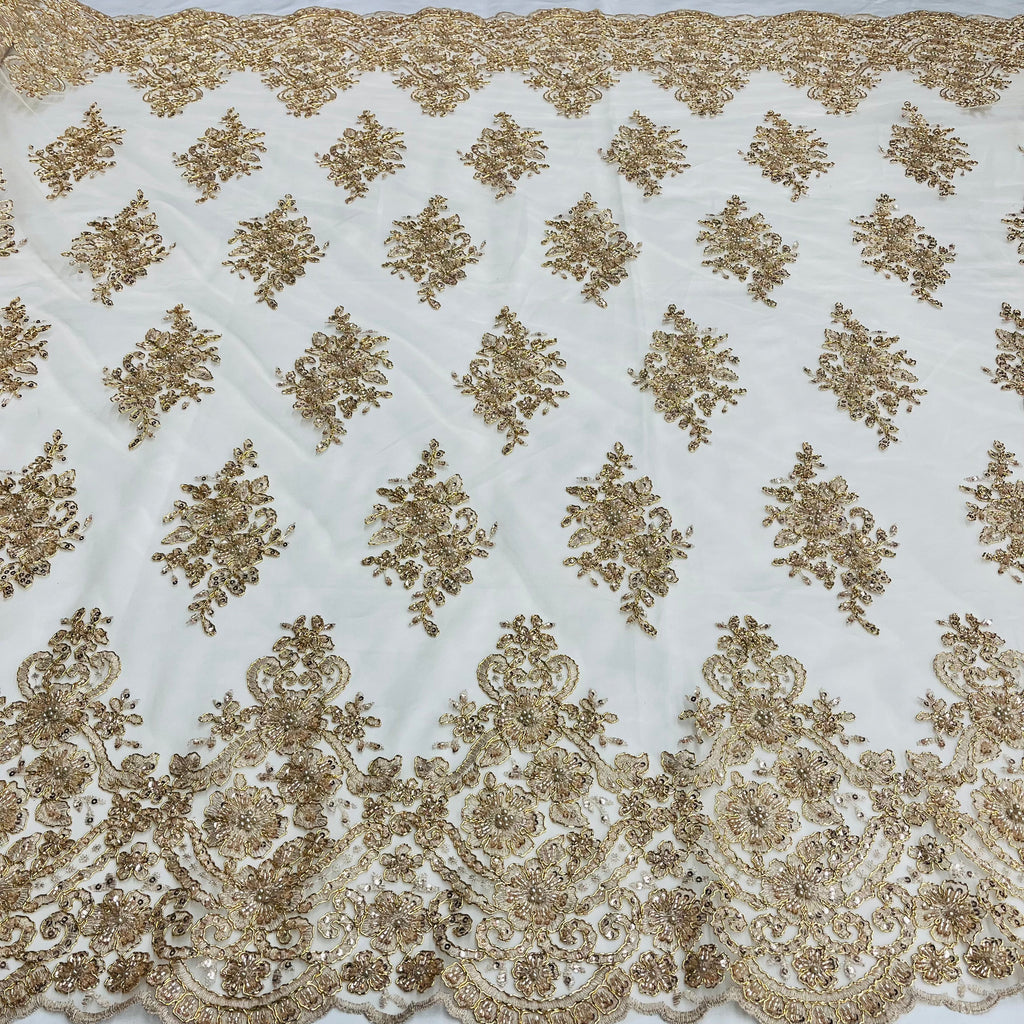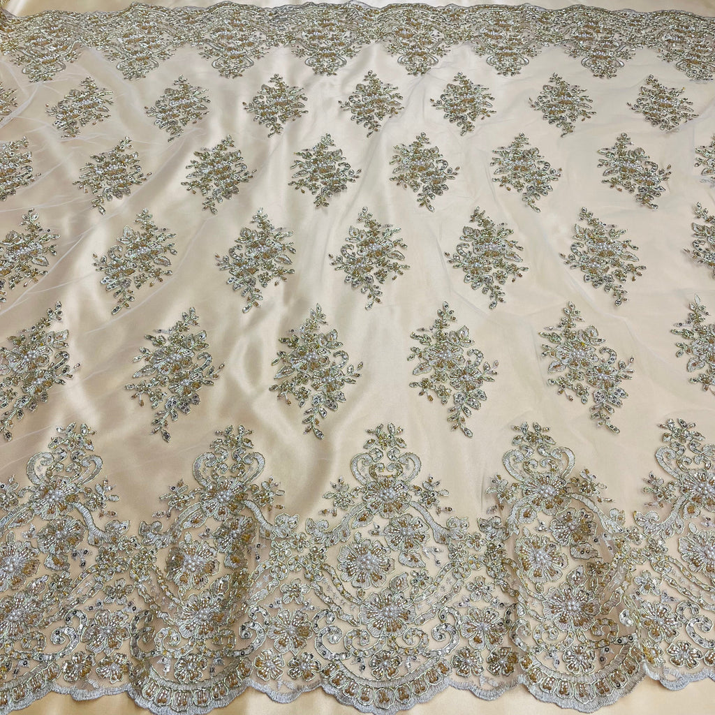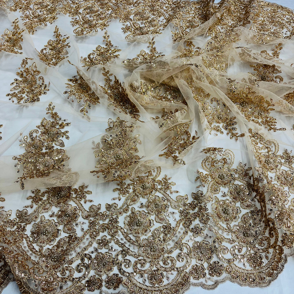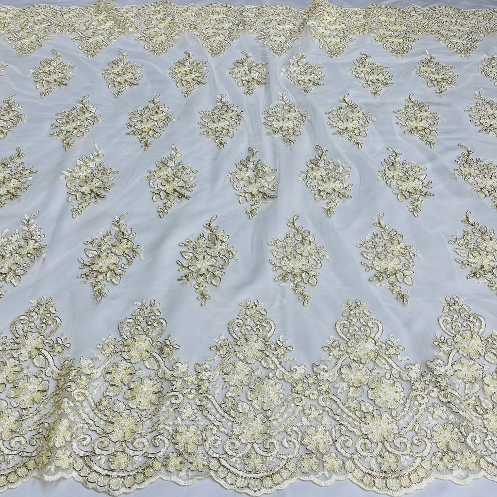 Beaded Corded Lace Fabric With Scallops Embroidered on 100% Poly Metallic | Lace USA - GD-1245