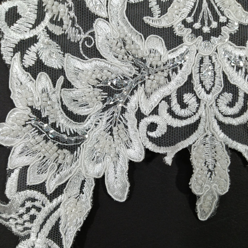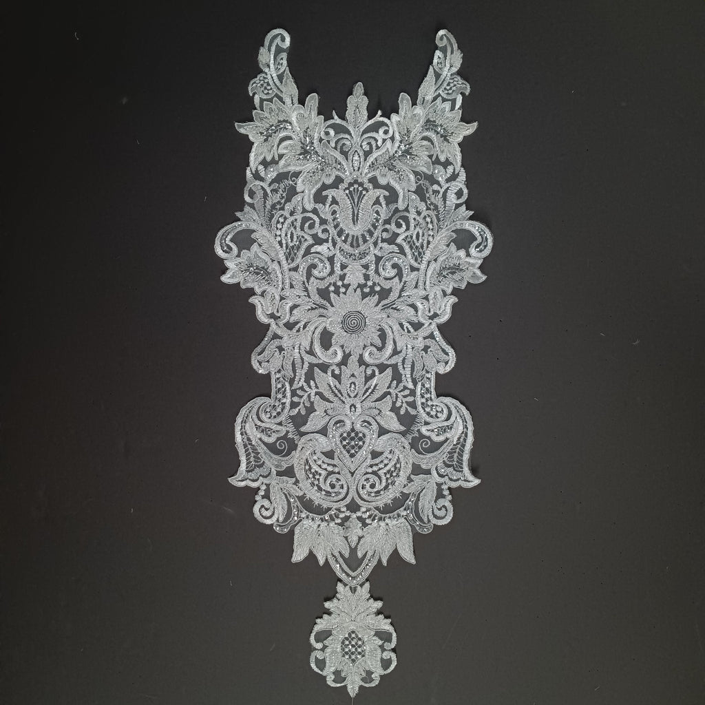 This handcrafted lace applique is a must-have for anyone creating custom bridal wear, couture gowns, or handmade costumes. Add timeless beauty and couture-level detail to your next project with this premium beaded lace medallion applique — perfect for designers, dressmakers, and DIY fashion creators looking for elegant wedding dress appliques, formal gown embellishments, or costume lace patches.
