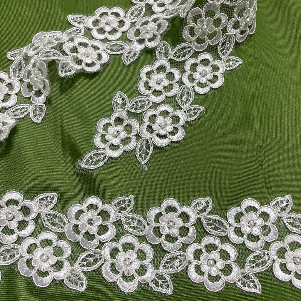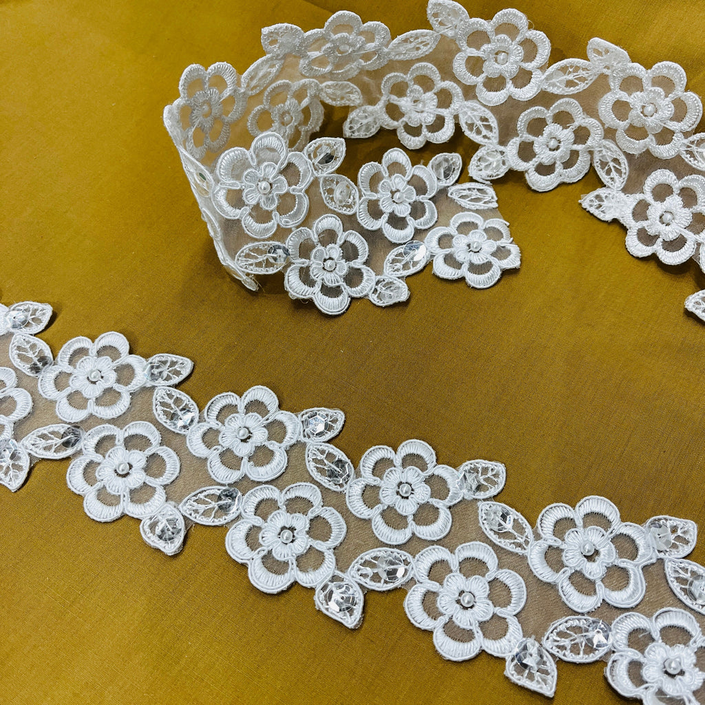 Beaded & Corded Lace Trimming Embroidered on 100% Polyester | Lace USA - KZ-38
