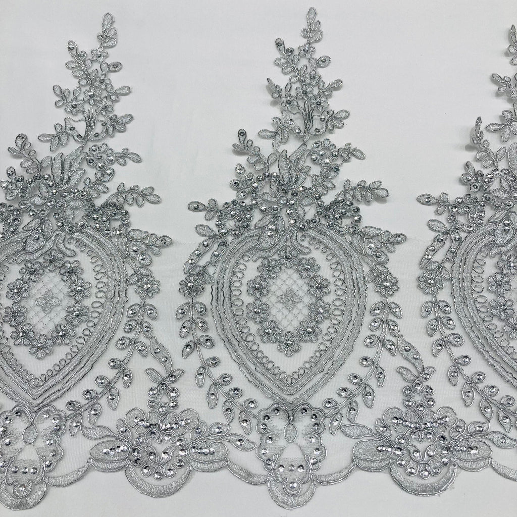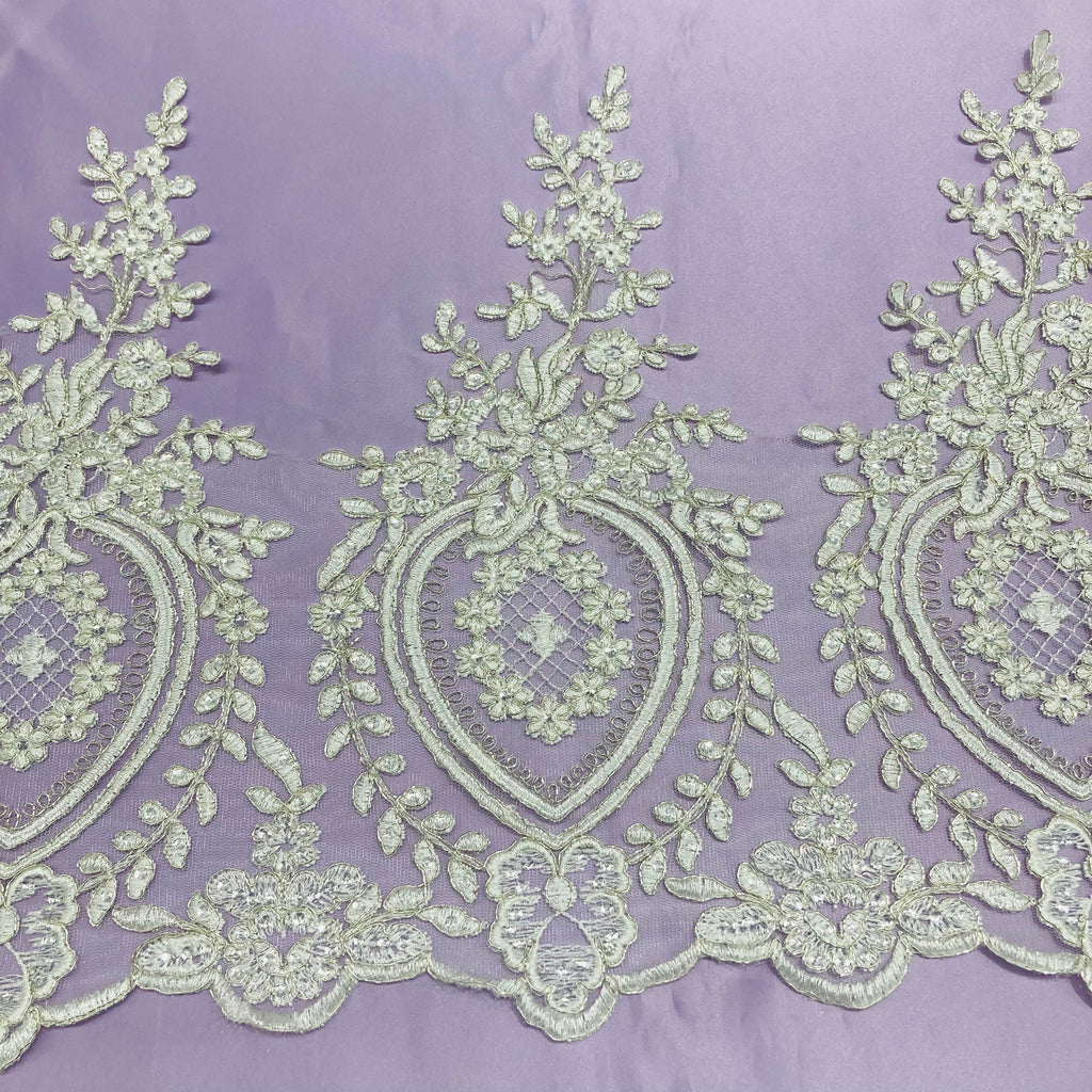 Beaded & Corded Lace Trimming Embroidered on 100% Polyester Net Mesh | Lace USA - 73016W-SB