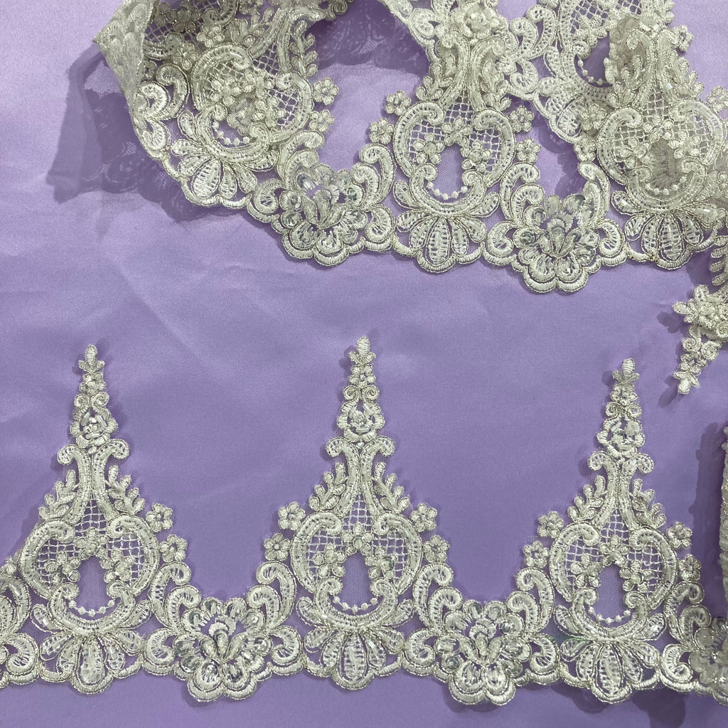 Add a touch of elegance to your wardrobe with the beautiful Beaded & Corded Lace Trimming Embroidered on 100% Polyester Net Mesh from Lace USA. This exquisite trim is perfect for wedding dresses, evening gowns, dance costumes, and more. Move gracefully in a one-of-a-kind outfit with Beaded Couture Lace Trim for your bridal gown, Corded Lace for your evening dress, Beaded Trim for your quinceanera dress, Corded Trim for your dance costume, and Beaded Embroidered & Corded Trim for any special occasion dress. This trim comes in three different colors and will instantly add a touch of elegance and luxury to your outfit. Make sure to pick up your Beaded & Corded lace trim, as well as Decorative Corded and Beaded lace-trims for an extra bit of sparkle for your special day. Lace USA makes sure that you find the perfect trim for any special occasion! Approximately 6" Wide / Ships Within 24 Business Hours Colors: This product comes in 3 different colors.