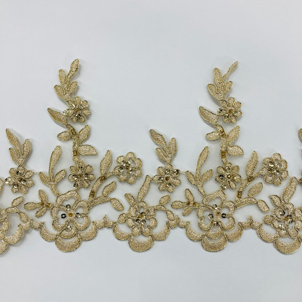 Beaded & Corded Lace Trimming Embroidered on 100% Polyester Net Mesh | Lace USA - 95940N-BP