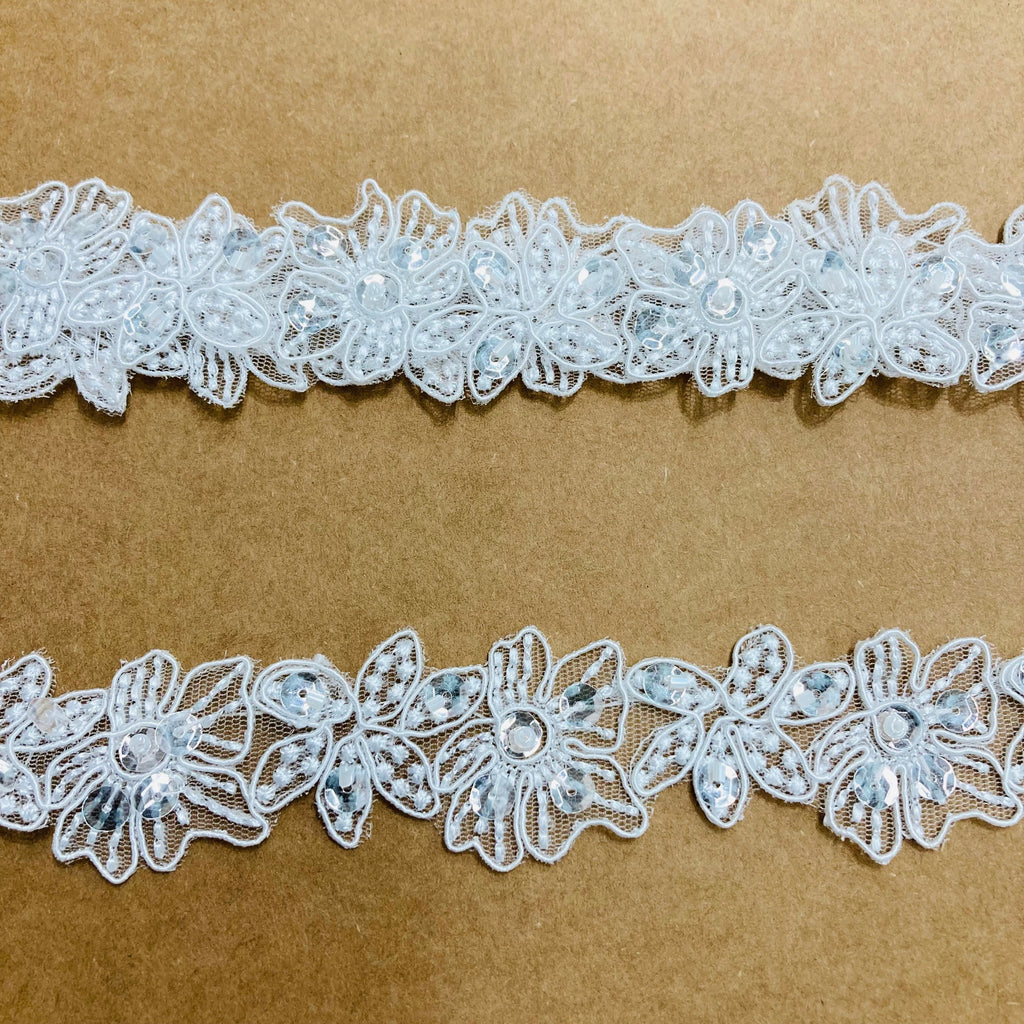 Beaded & Corded Lace Trimming Embroidered on 100% Polyester Net Mesh | Lace USA - 96765W-BP
