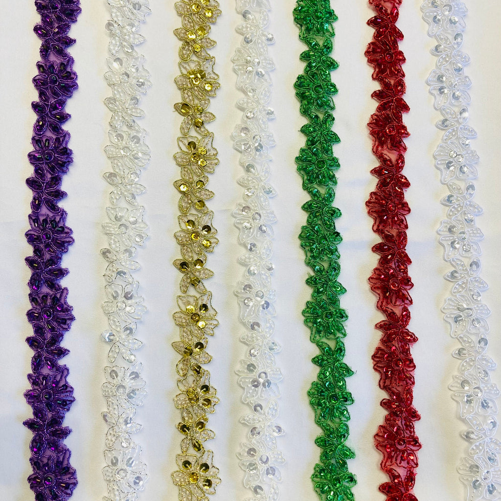 Welcome to Lace USA, where you can find exquisite Beaded & Corded Lace Trimming Embroidered on 100% Polyester Organza. Our products are handmade and feature high quality, durable, heavy weight fabrics that are perfect for creating beautiful wedding dresses, evening gowns, dance costumes, and more. Our products come in 7 different colors and are 1.5" wide with a minimum order of 1 yard. Orders process quickly, with orders shipping within 24 business hours of placing them. Our selection of Beaded & Corded Lace Trimming includes Corded Couture Lace Trim, Beaded Couture Lace Trim, Corded Bridal Lace Trim, Beaded Bridal Lace Trim, Corded Evening Dress Lace Trim, Beaded Evening Dress Trim, Corded Quinceanera Dress Trim, Beaded Trim for Quinceanera Dress, Corded Trim for Dance Costume, Beaded Trim for Dance Costume, Corded Embroidered Lace Trim, Beaded Embroidered & Corded Trim, Trim for Special Occasion Dresses, Beaded Trim for Special Occasion Dresses, Decorative Corded Trim, Decorative Beaded Lace Trims, Elegant Corded Lace Trims, and Elegant Beaded Lace Trimming.