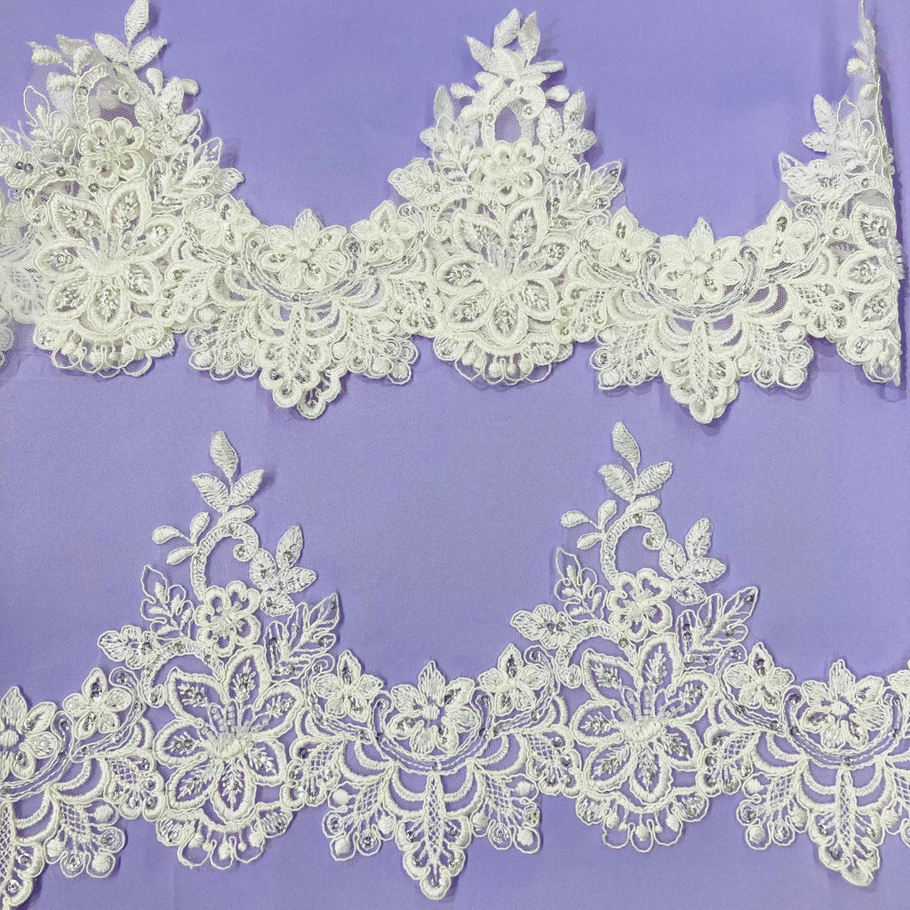 Beaded & Corded Lace Trimming Embroidered on 100% Polyester Net Mesh | Lace USA - 96939W/1-HB