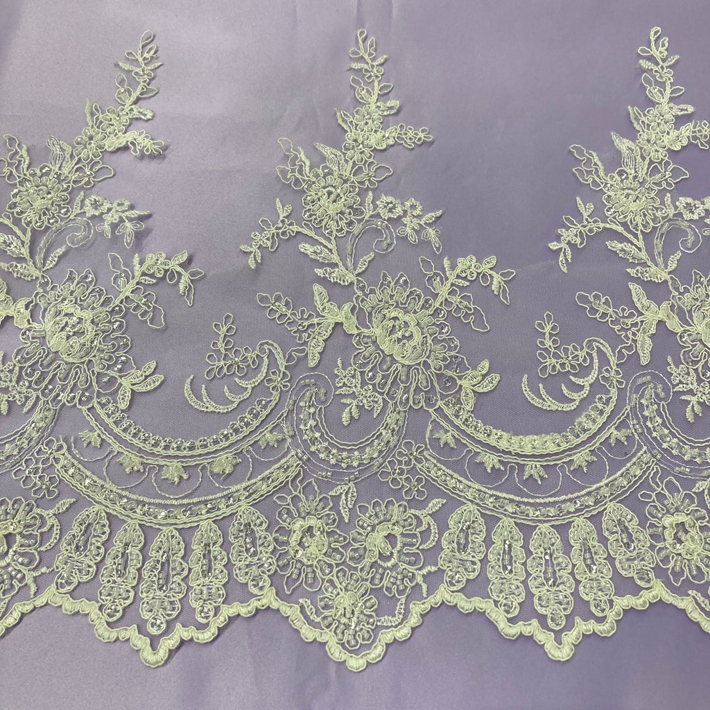 Beaded & Corded Lace Trimming Embroidered on 100% Polyester Net Mesh | Lace USA - 96986W/1-HB