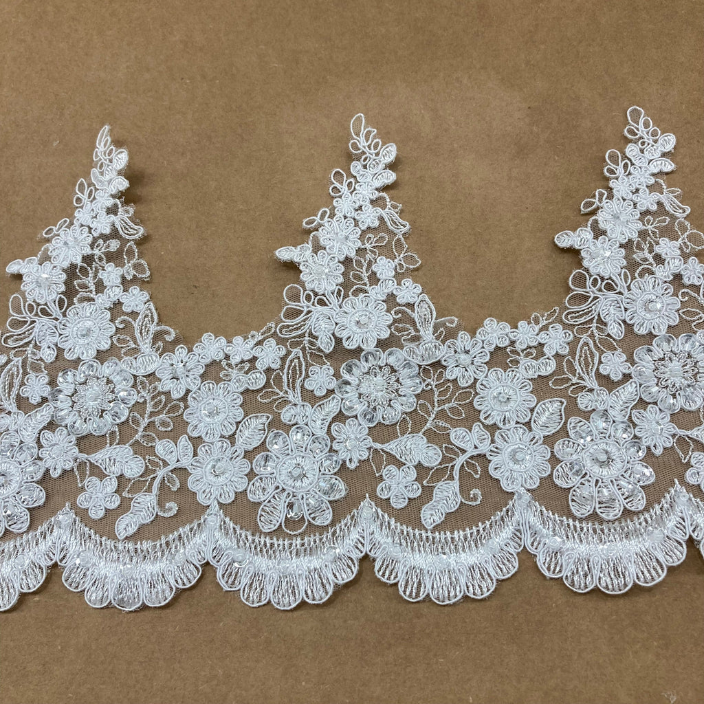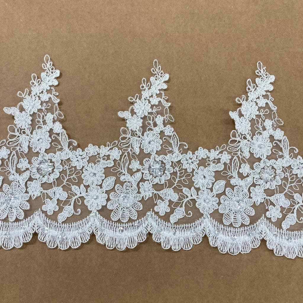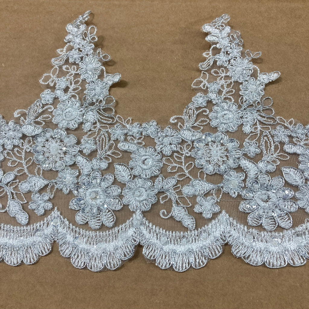Beaded & Corded Lace Trimming Embroidered on 100% Polyester Net Mesh | Lace USA - 97016W-BP