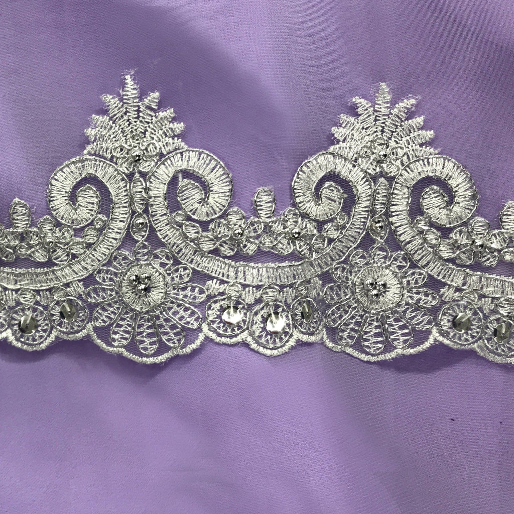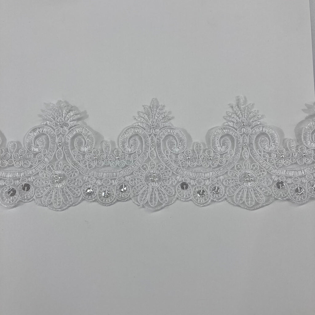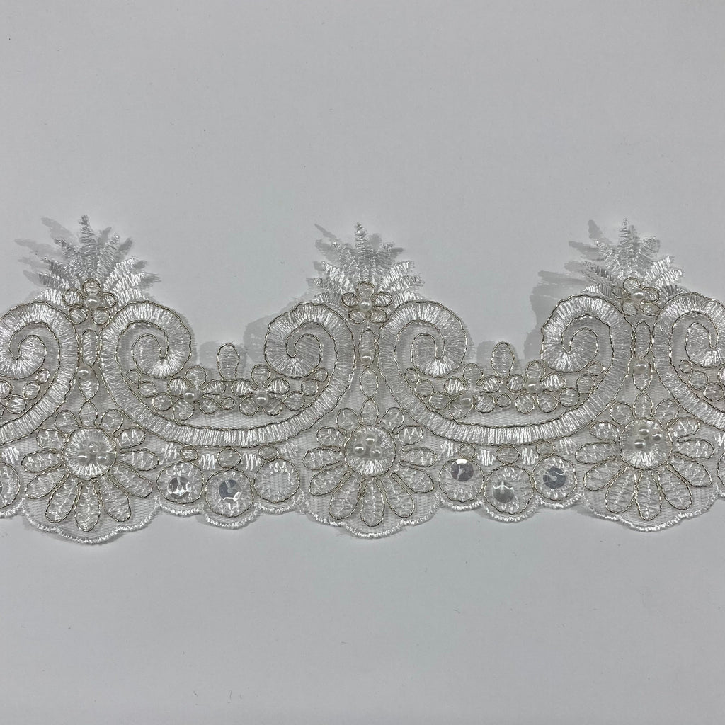 Beaded & Corded Lace Trimming Embroidered on 100% Polyester Net Mesh | Lace USA - 97120W-BP