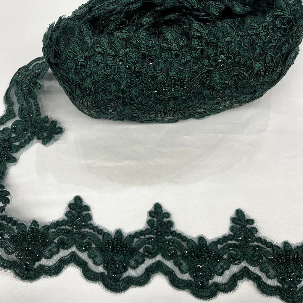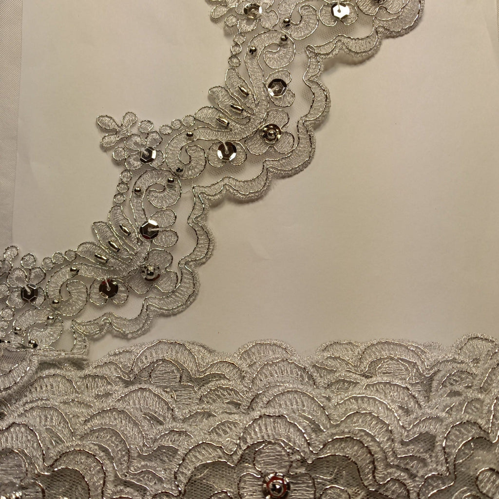 Beaded & Corded Lace Trimming Embroidered on 100% Polyester Net Mesh | Lace USA - KZ-34W-HB