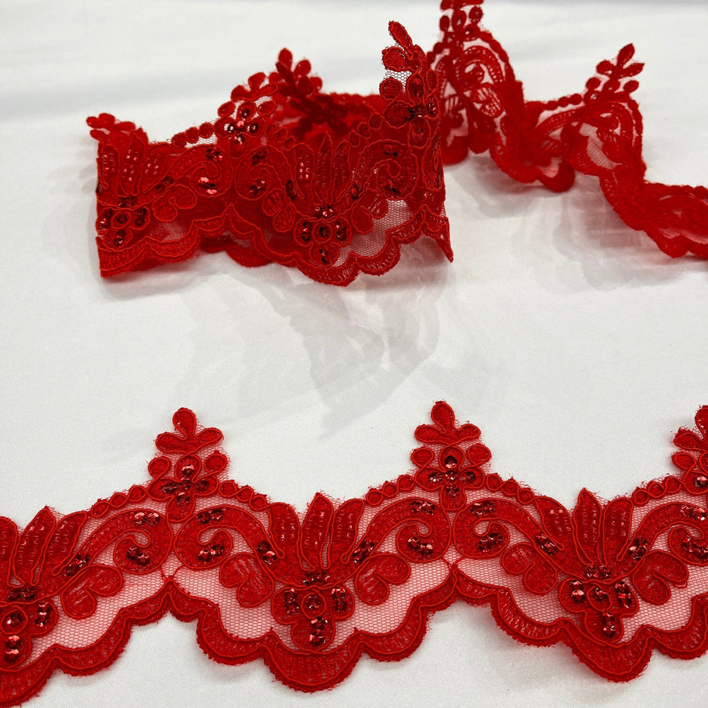 Transform your special occasion dress with this stunning Beaded & Corded Lace Trimming Embroidered on 100% Polyester Net Mesh from Lace USA. These beautiful trimmings are perfect for making that special gown or costume look truly unique. The trims are handmade, giving it an exquisitely luxurious appearance, and they’re available in 23 different colors to choose from. You can use this high quality trimming to give your bridal gown, evening dress, quinceanera dress, dance costume, or any special occasion dress an extra dash of shimmer and elegance. The lace is made of 100% polyester and measures approximately 3 inches in width, so you can be sure that you’ll get the perfect trim for your desired look. Add a unique finishing touch to your design by using these Couture Beaded & Corded lace trims, Decorative Beaded lace trims, and Elegant Beaded & Corded lace trims. With this beaded lace trim from Lace USA, you can make any special occasion gown stand out from the crowd.