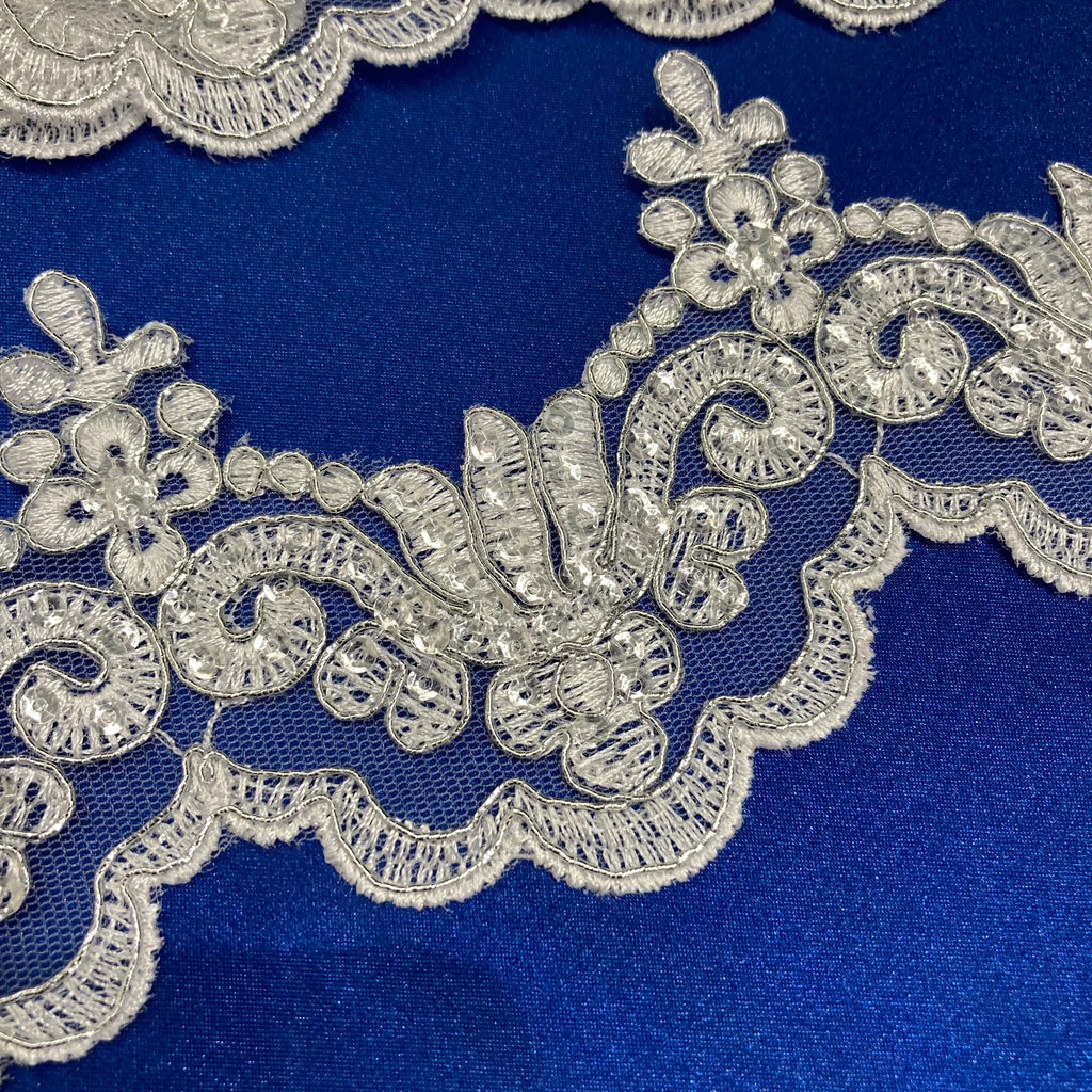 Look glamorous for special occasions in Lace USA's Beaded & Corded Lace Trimming Embroidered on 100% Polyester Net Mesh. This luxurious trim features beautiful beads and corded details fit for any evening gown, wedding dress, dance costume, or quinceanera dress. Whether you’re searching for a classic Beaded or Corded Lace Trim, Beaded and Corded Bridal Lace Trim, Beaded and Corded couture lace trims, Beaded and Corded Evening Dress lace trims, Beaded and Corded Quinceanera Dress Trims, Beaded and Corded Trim for Dance Costume, Beaded and Corded Embroidered lace trims, or Beaded and Corded Trim for Special Occasion Dresses, Lace USA has the unique and decorative trims to complete you look. The elegant beaded and corded lace trims come in 3 colors and are sure to customize any dress to make your look stand out. Start creating and embellish your dresses with Lace USA’s Beaded & Corded Lace Trimming Embroidered on 100% Polyester Net Mesh! Approximately 3" Wide / Ships Within 24 Business Hours.