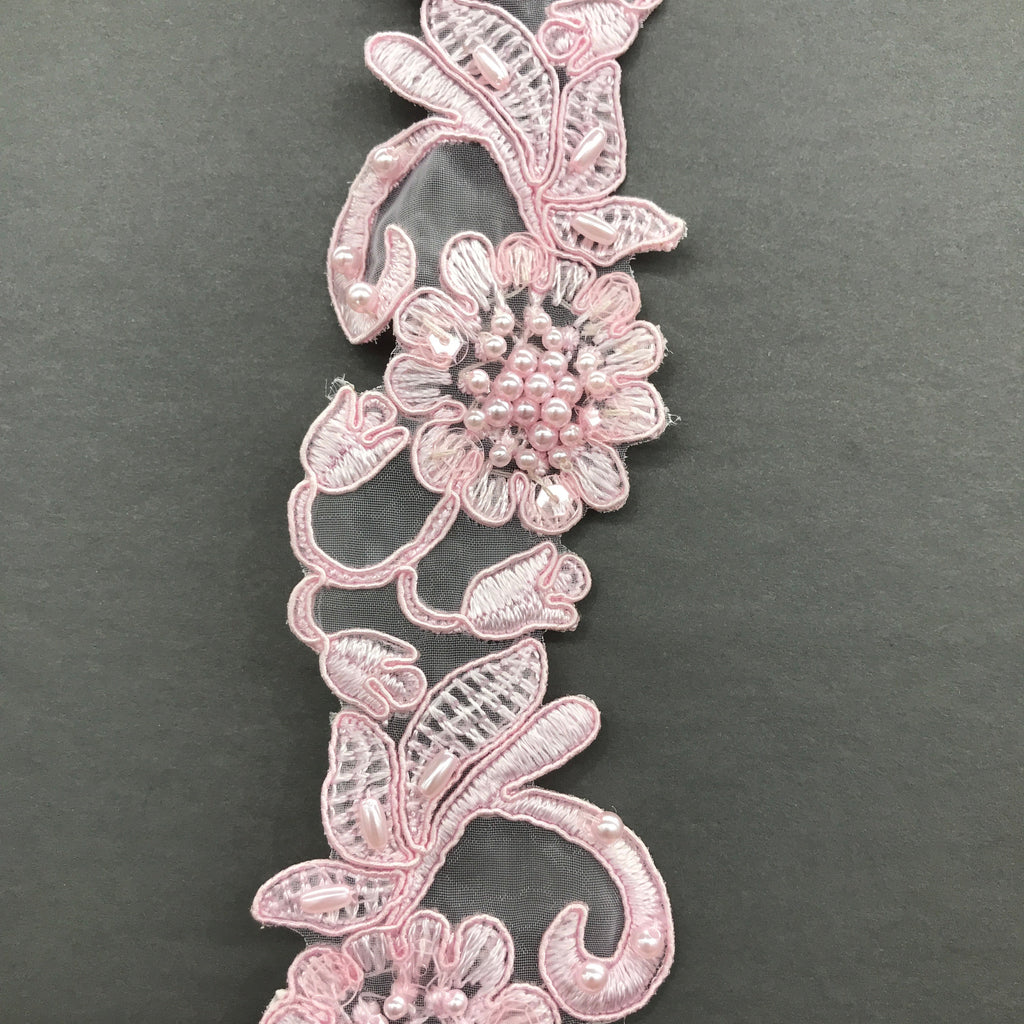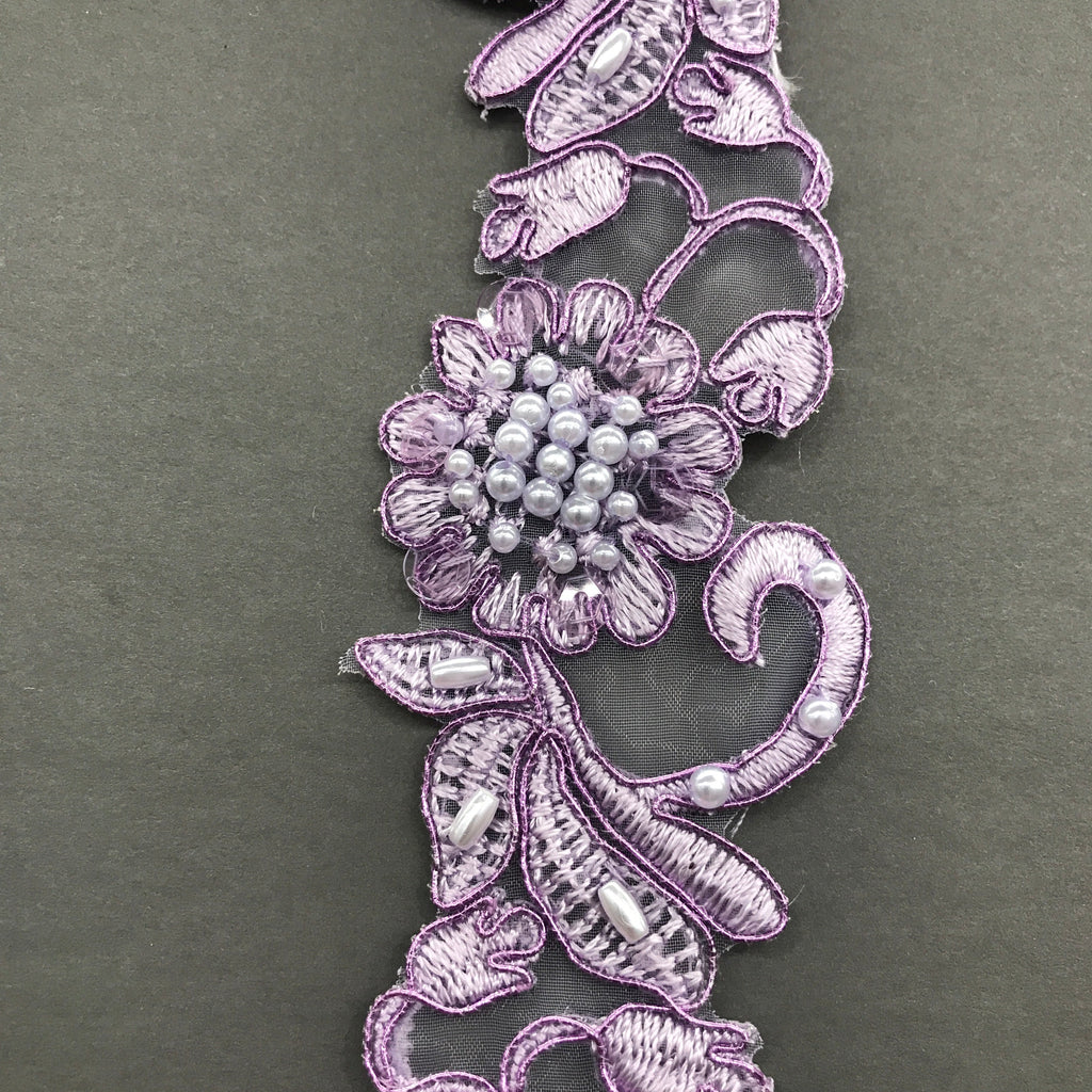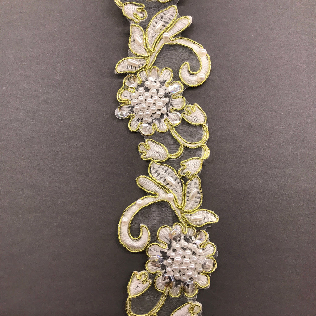 Beaded & Corded Lace Trimming Embroidered on 100% Polyester Organza | Lace USA - 95114N-BP