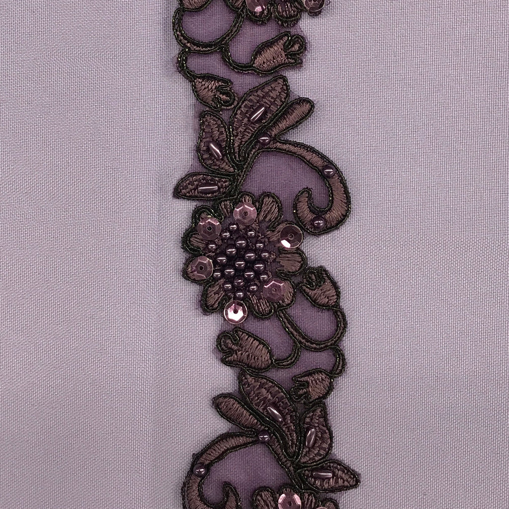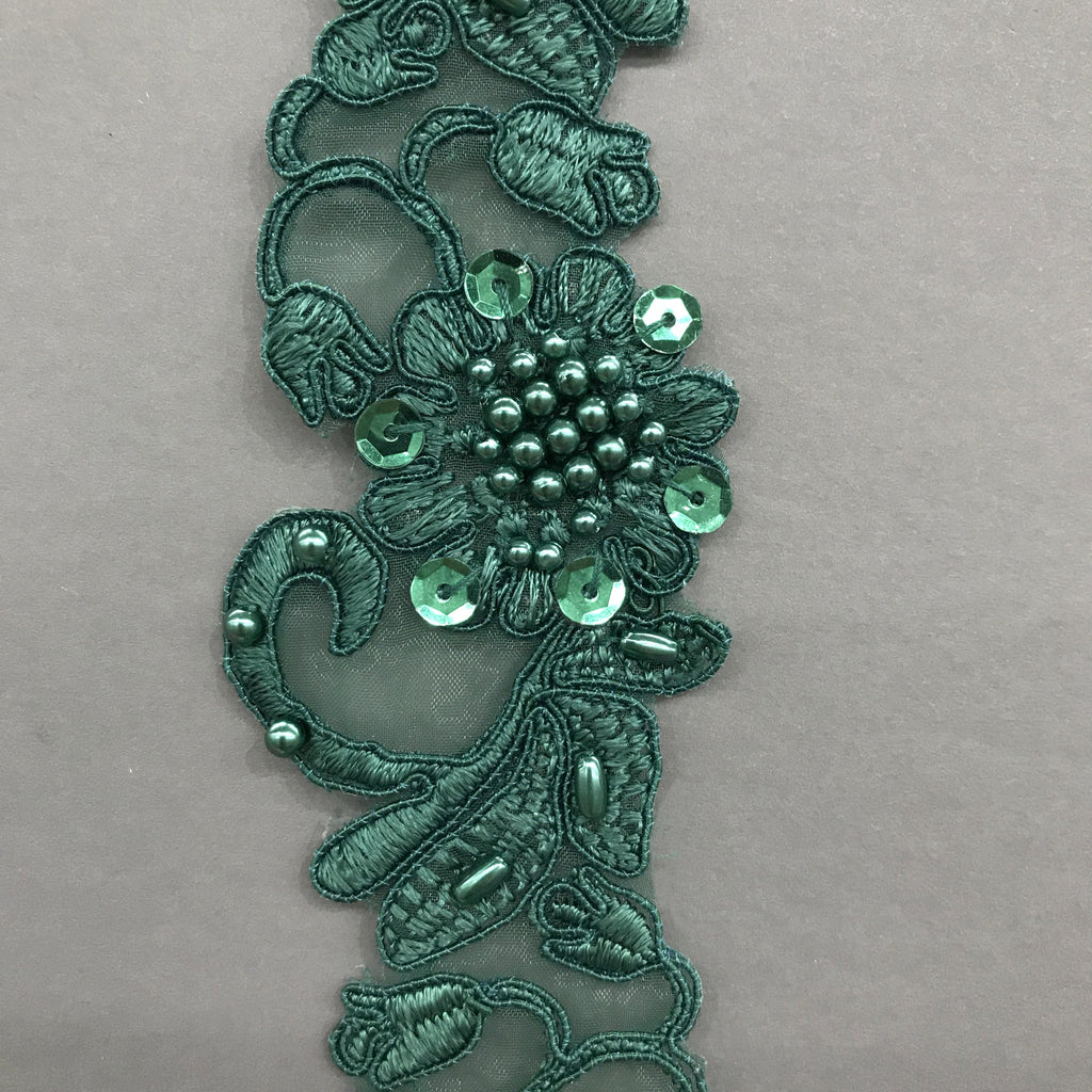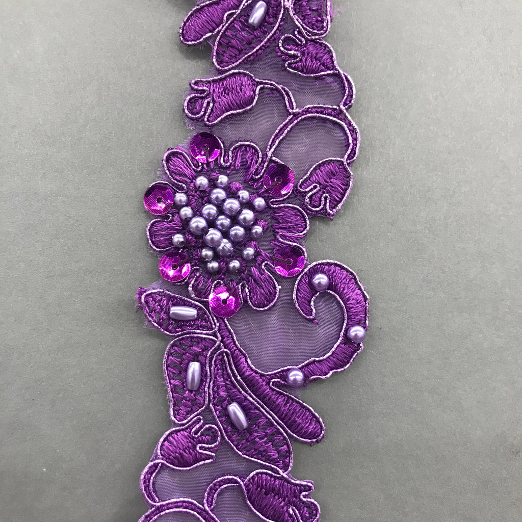 Beaded & Corded Lace Trimming Embroidered on 100% Polyester Organza | Lace USA - 95114N-BP