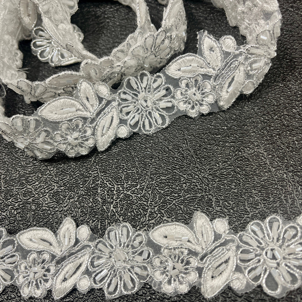 Beaded & Corded Lace Trimming Embroidered on 100% Polyester Organza | Lace USA - 95676N-BP