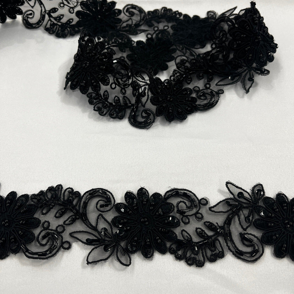 Beaded & Corded Lace Trimming Embroidered on 100% Polyester Organza | Lace USA - 96275N-BP