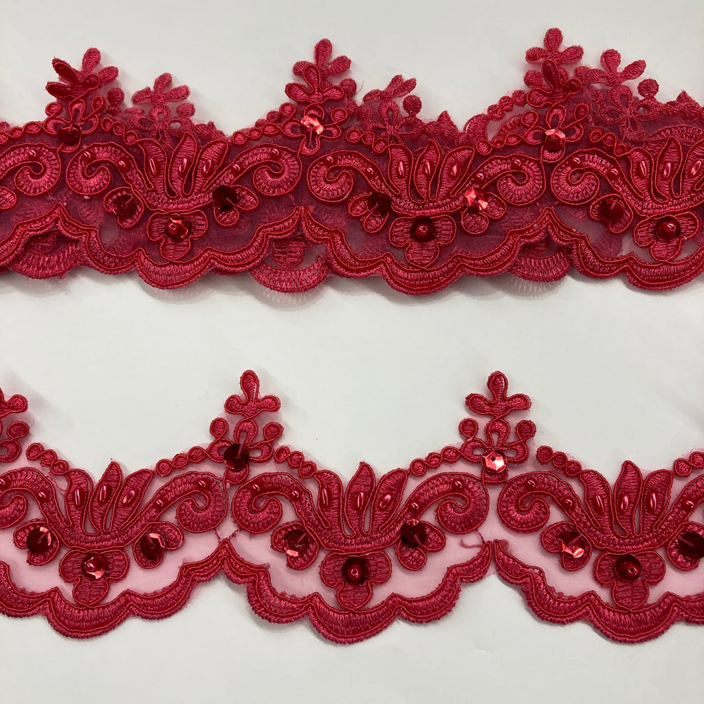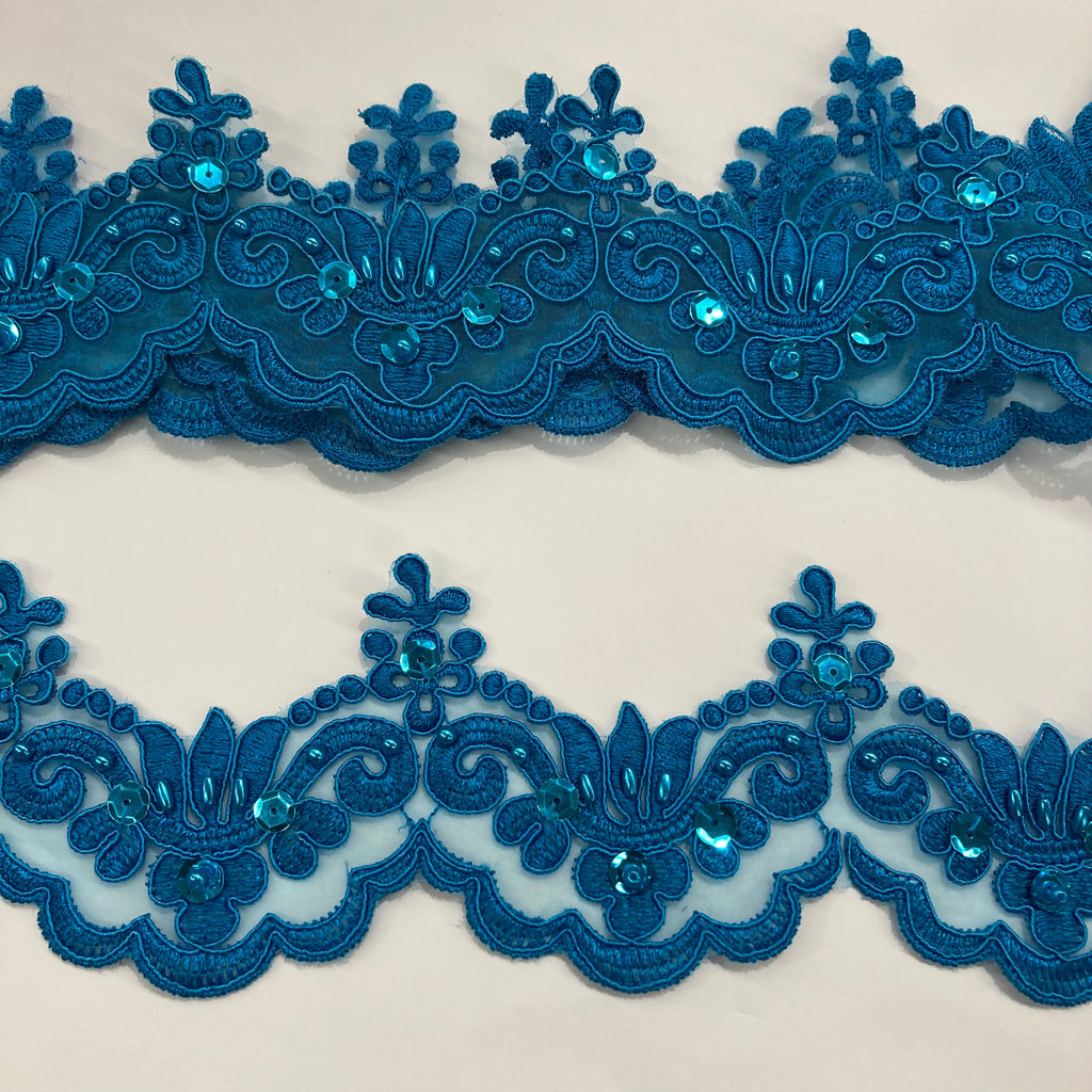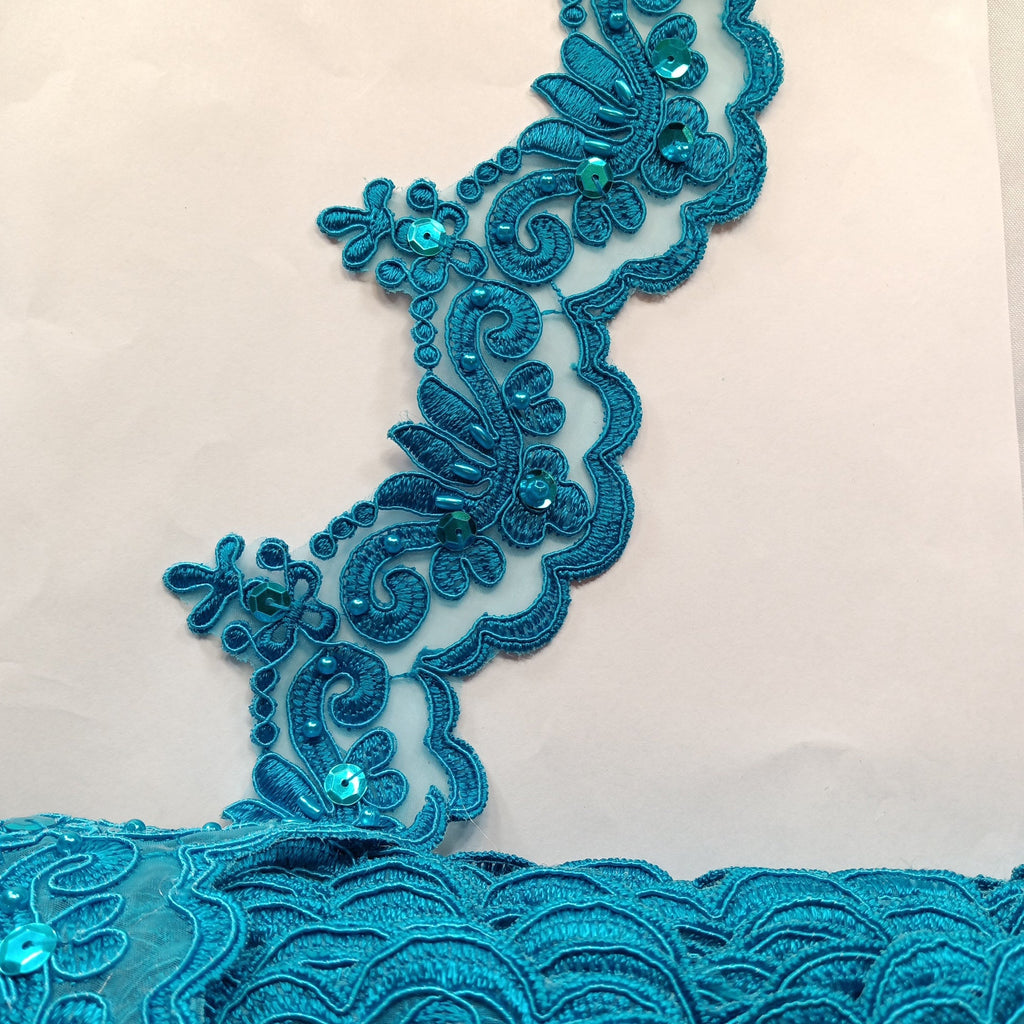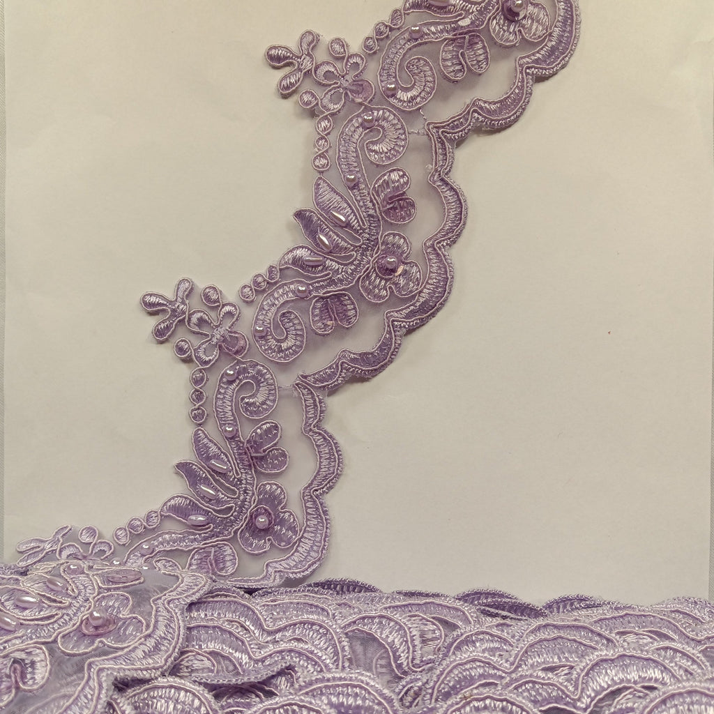 Introducing Lace USA's Beaded & Corded Lace Trim, a luxurious and timeless embroidered lace trim that is perfect for making any special occasion garment truly special. The sophisticated and ornate design features beads and corded trims on 100% polyester organza, and with a variety of 15 colors to choose from such as Alencon lace, floral, mesh, net, and tulle, you'll be sure your piece stands out! Bring couture finishes to bridal looks, quinceanera dresses, and evening gowns with our Beaded & Corded Lace Trimming. The intricate design is perfect for adding an elegant touch, and the beaded trim for quinceanera dresses gives it a touch of sparkle. Furthermore, the corded trim for dance costumes perfect for keeping them looking timeless whatever the style. Whether you need classic and embroidered corded trim for special occasion dresses or beaded trim for special occasion dresses, our Beaded & Corded Lace Trims come in numerous varieties to suit your needs. Whether you're looking for decorative corded trims or decorative beaded trims, you can trust Lace USA to provide a selection of elegant corded or beaded lace trims. Approximately 3" Wide / Ships Within 24 Business Hours.