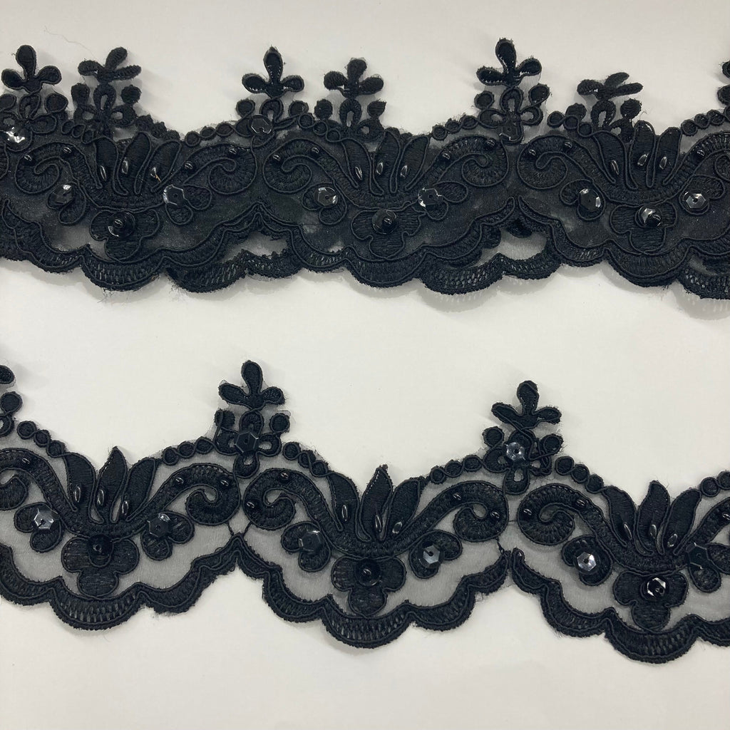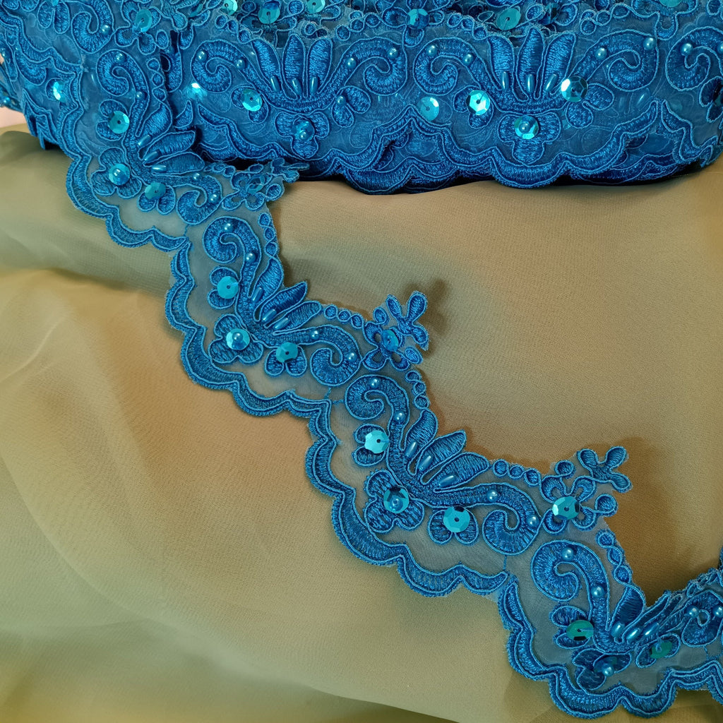 Beaded & Corded Lace Trimming Embroidered on 100% Polyester Organza | Lace USA - KZ-34