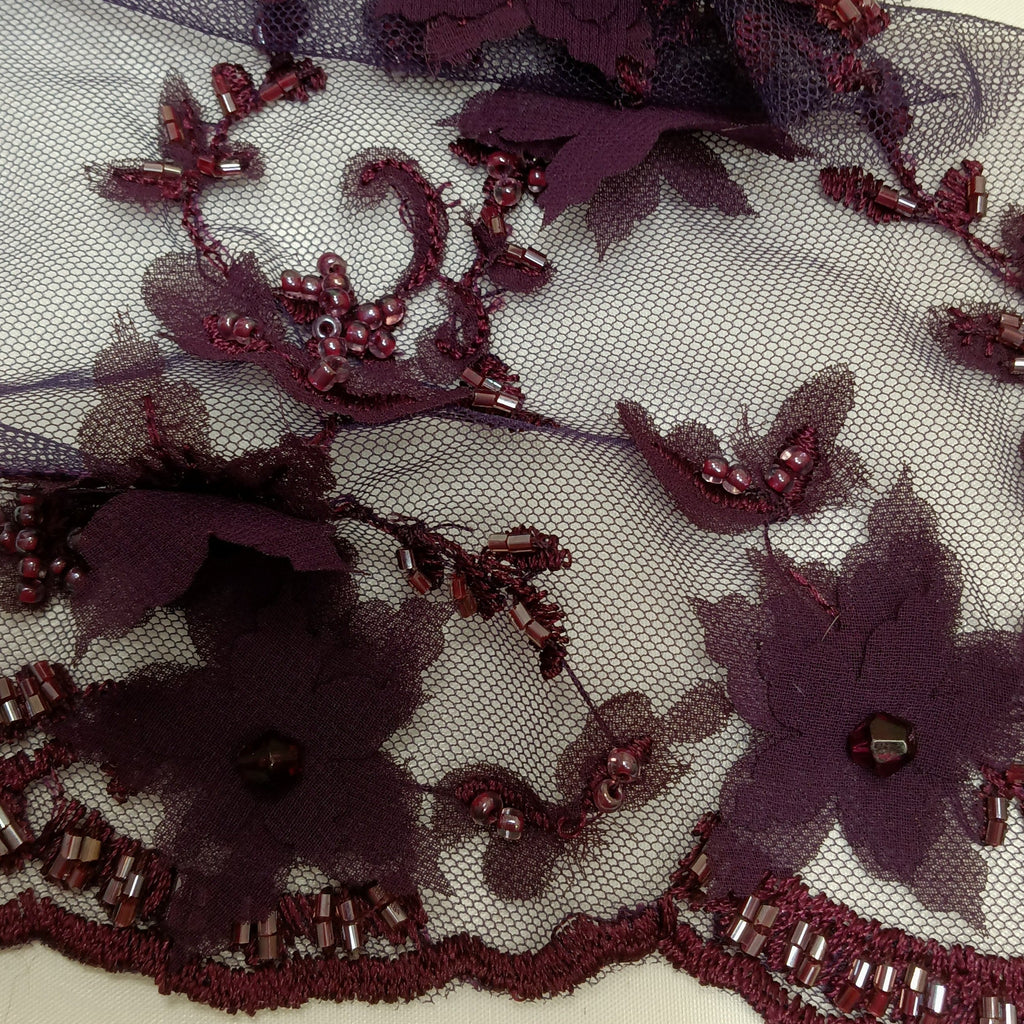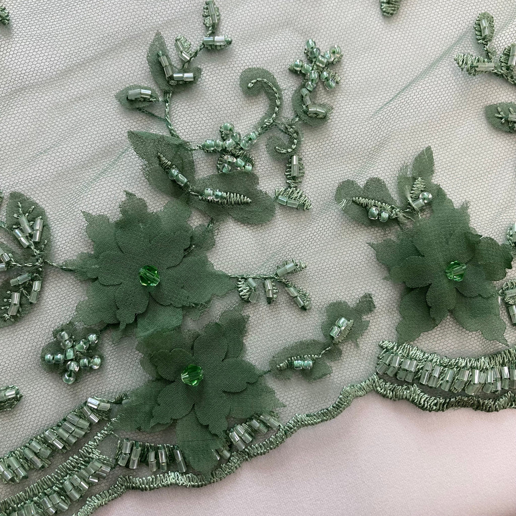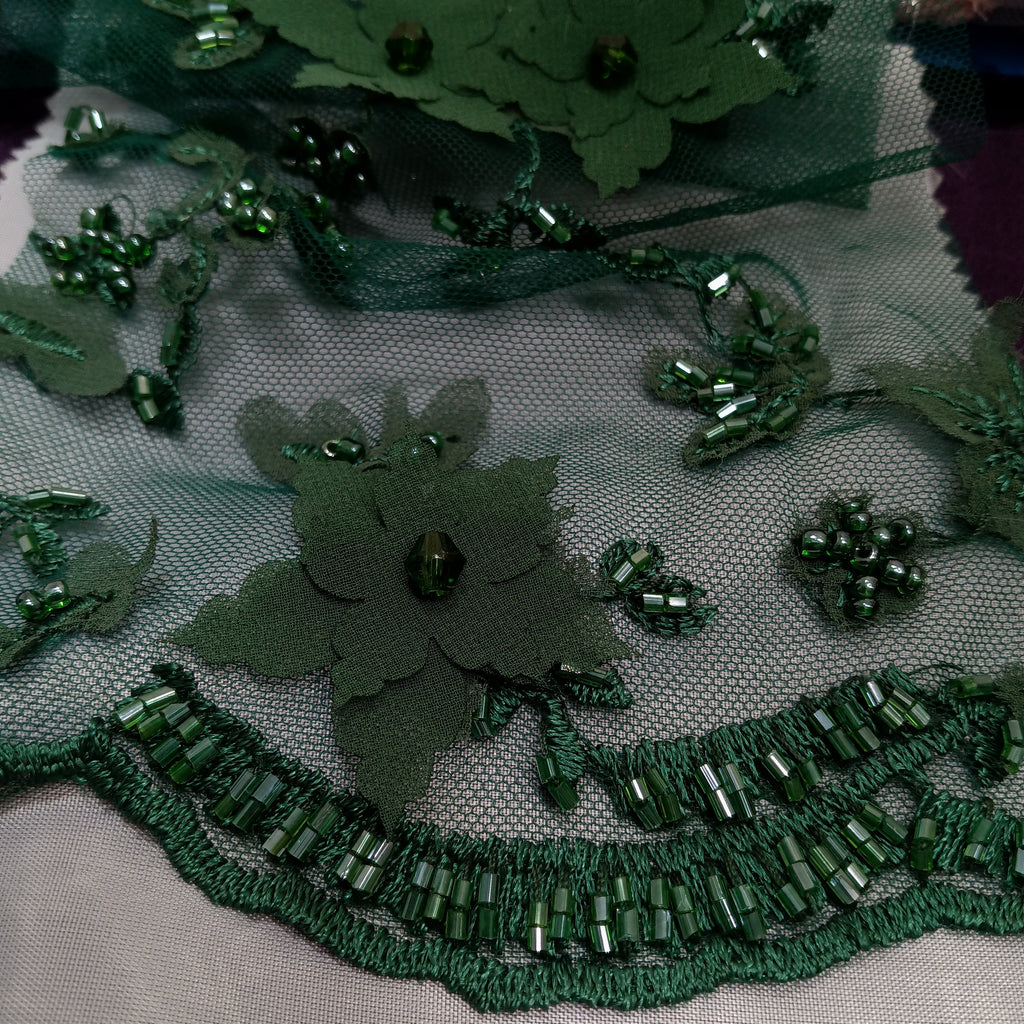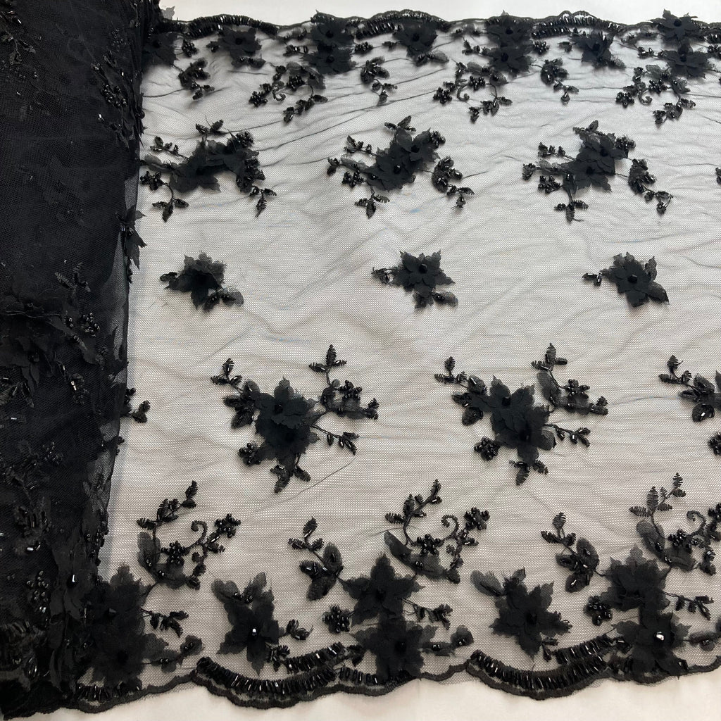 Beaded Double Sided 3D Floral Lace Trimming Embroidered on 100% Polyester Net Mesh | Lace USA - GD-732