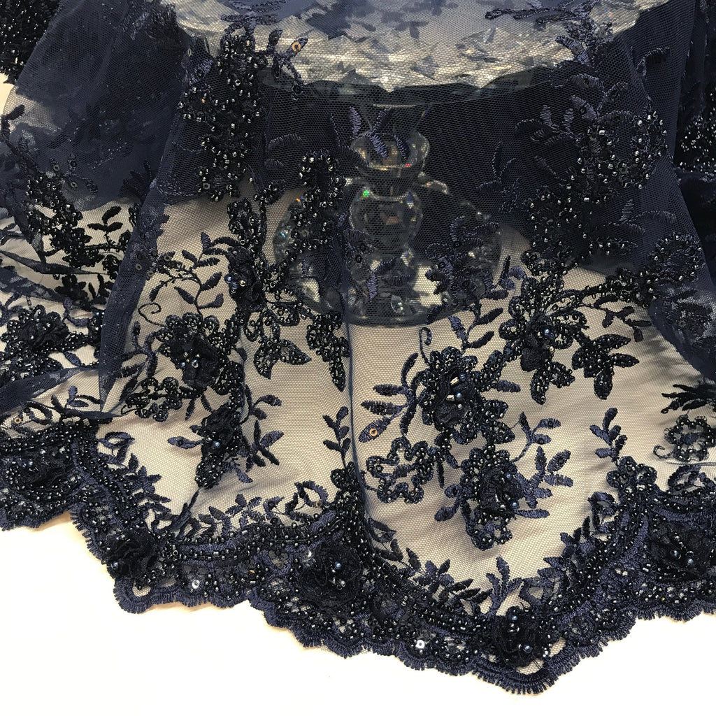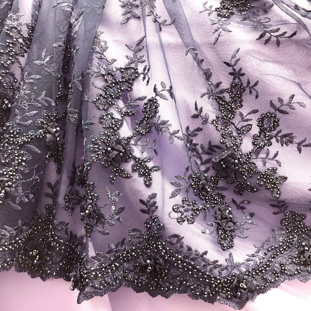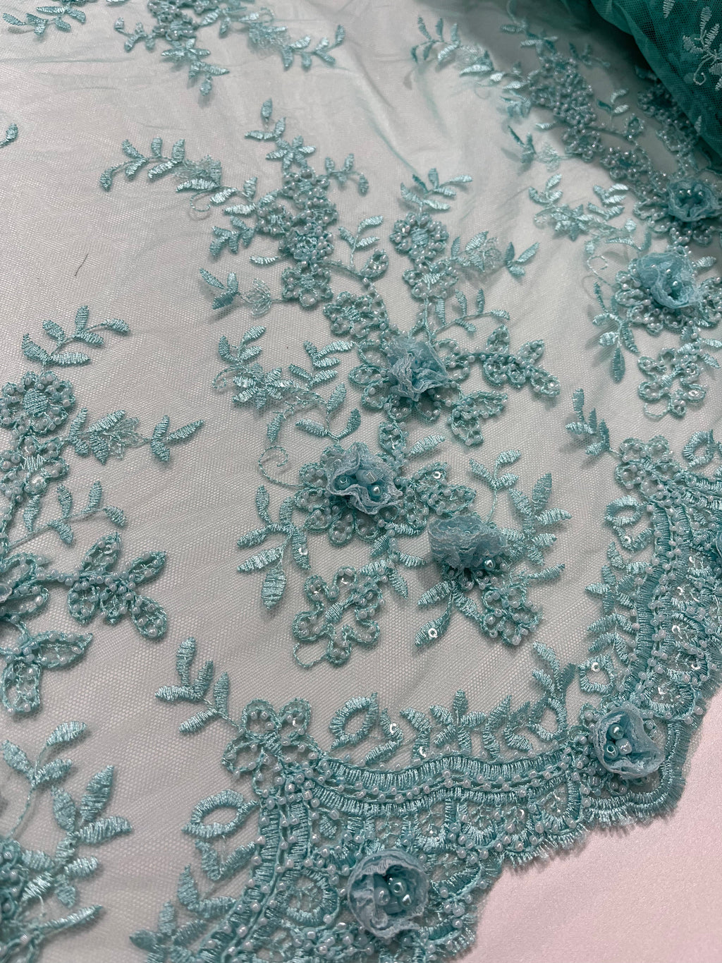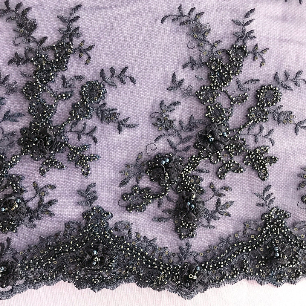 Handmade, high quality Beaded Double Sided 3D Floral Lace Trimming Embroidered on 100% Polyester Net Mesh. Beautiful on wedding dresses, evening gowns, dance costumes, and more.