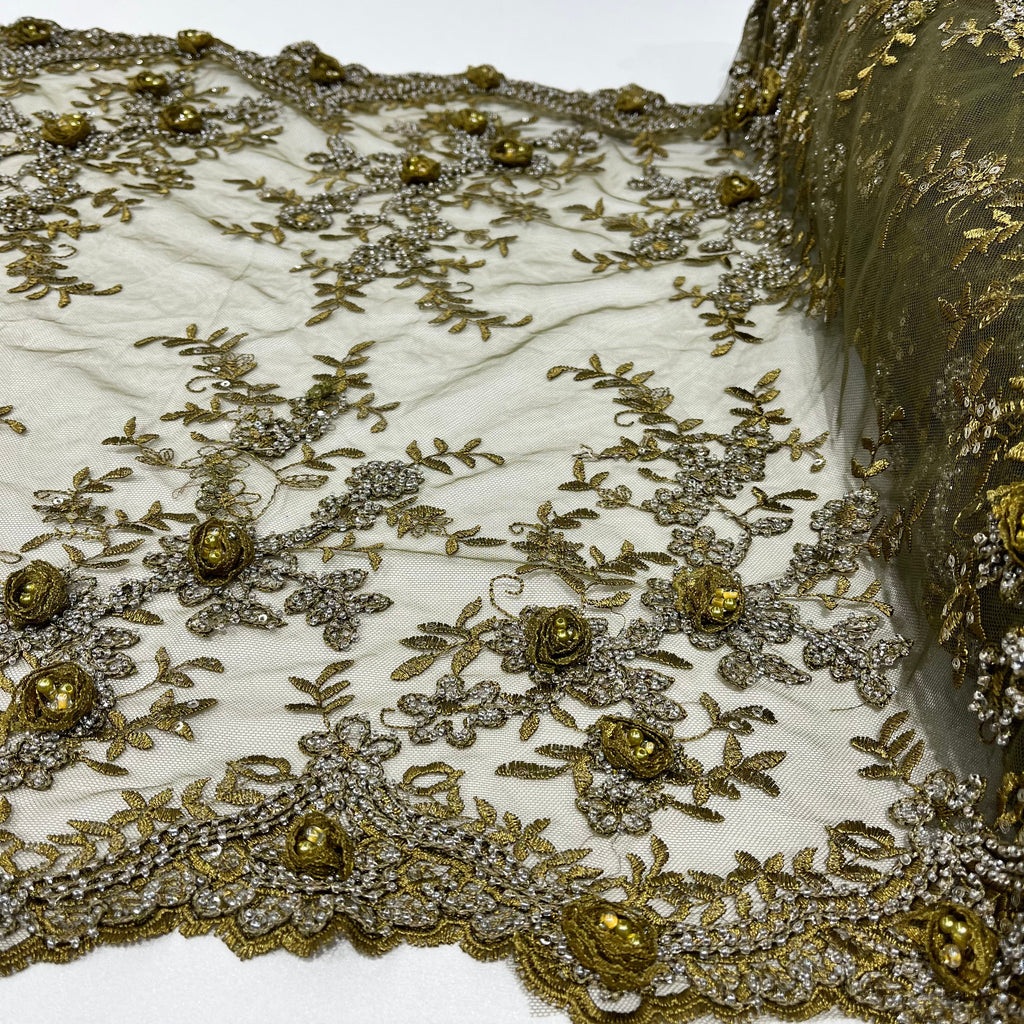 Beaded Double Sided 3D Floral Lace Trimming Embroidered on 100% Polyester Net Mesh | Lace USA - GD-733