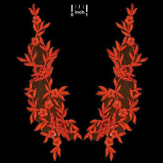 Handmade, high quality Beaded Floral Lace Applique Embroidered on 100% Polyester Organza. Beautiful on wedding dresses, evening gowns, dance costumes, and more.