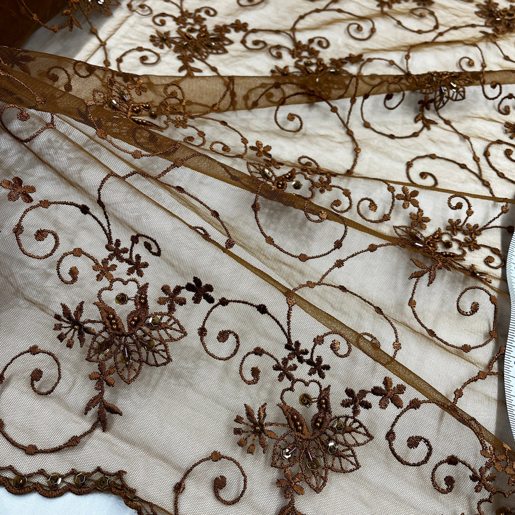 Introducing Beaded Lace Fabric Embroidered on 100% Polyester Net Mesh from Lace USA! This beautiful fabric is perfect for adding detail to wedding dresses, evening gowns, and dance costumes. The shimmering design features beading, pearls, sequins, and tulle embroidered together on a light and airy mesh fabric. With a minimum order of one yard, you can easily add a custom touch to your garment. And the best part is, this luxurious fabric comes in 4 beautiful colors! Don't wait to make your project unforgettable, purchase your own Beaded Lace Fabric Embroidered on 100% Polyester Net Mesh today and make a statement! Size: Approximately 52" wide.