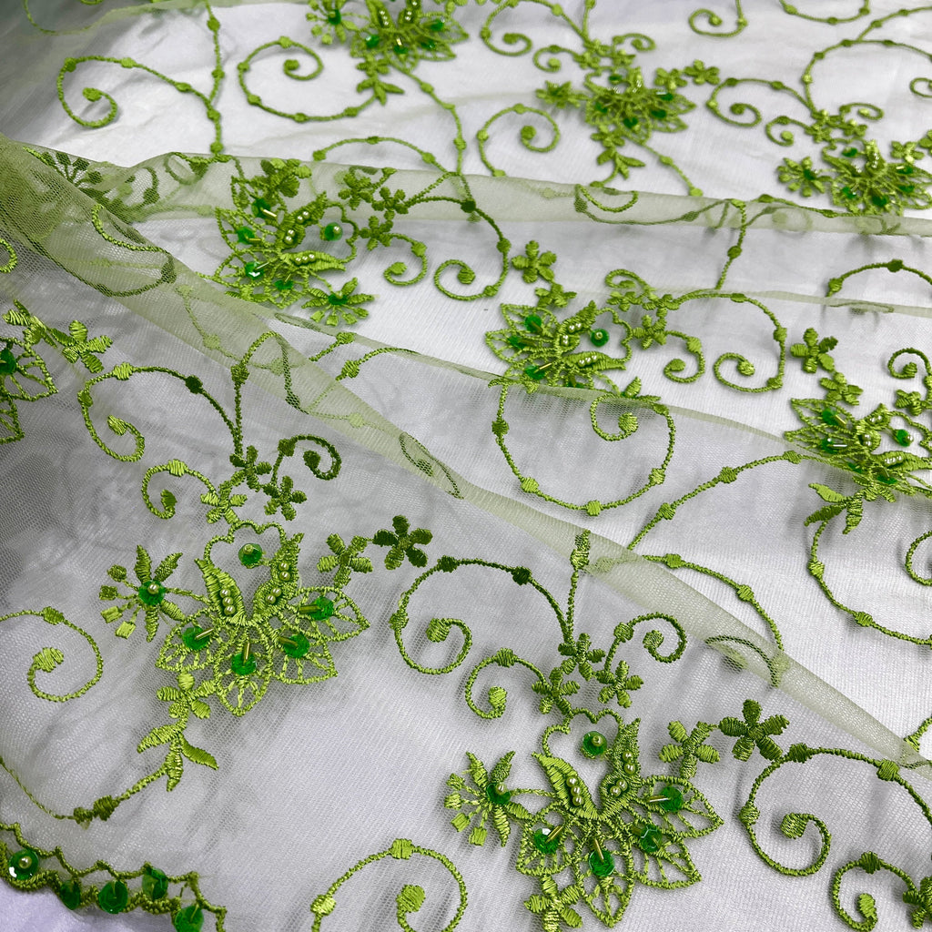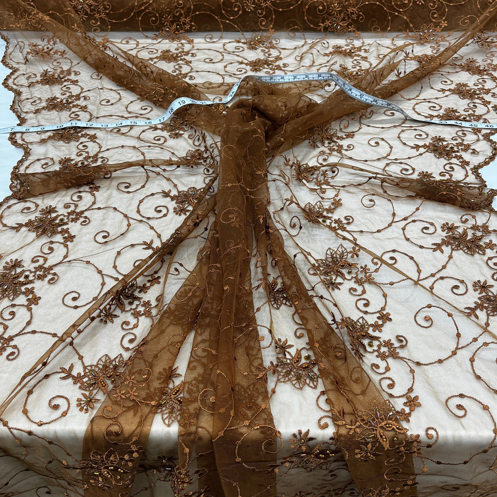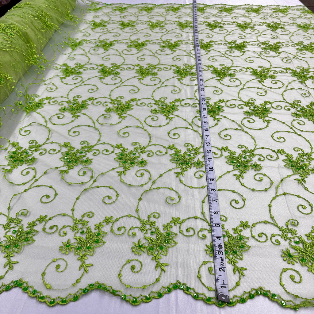 Beaded Lace Fabric Embroidered on 100% Polyester Net Mesh | Lace USA - 31094W-BP