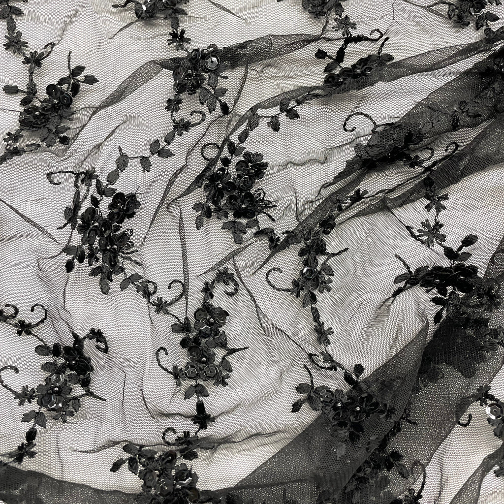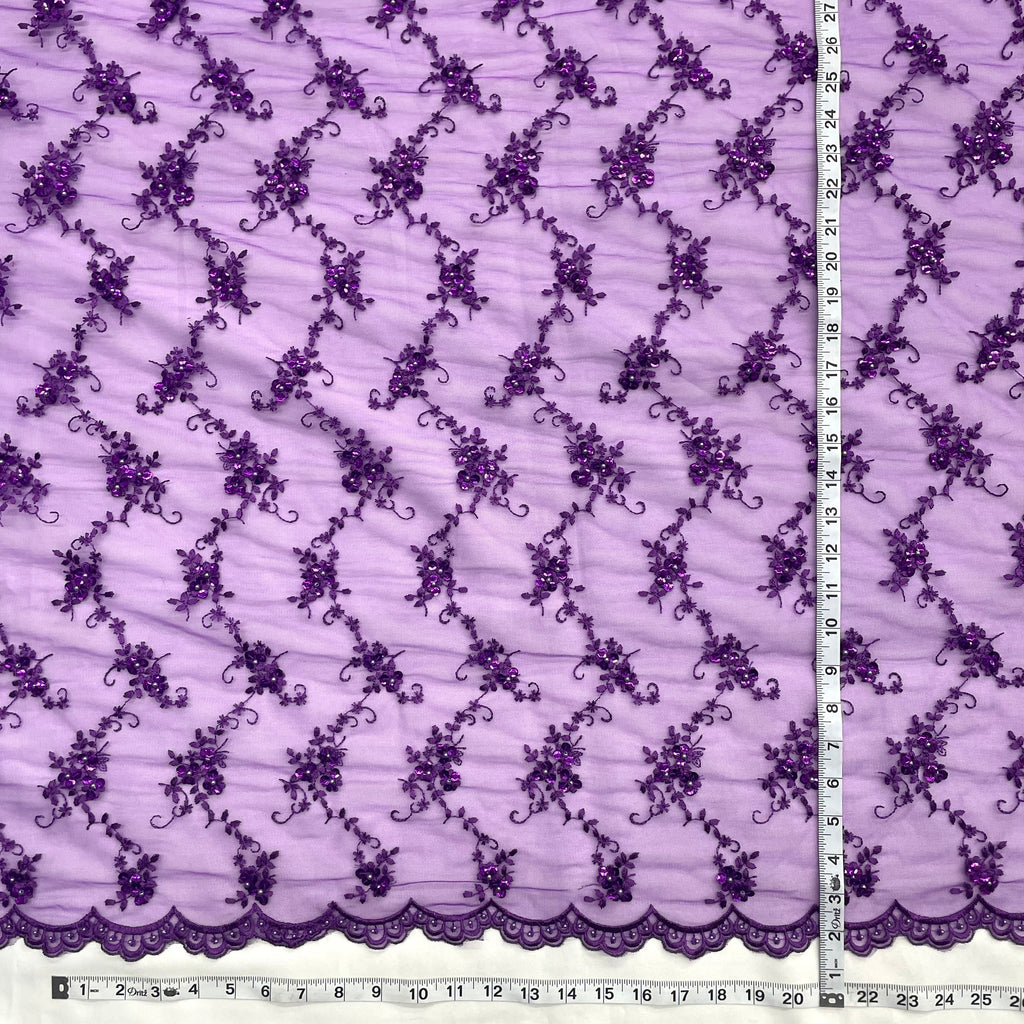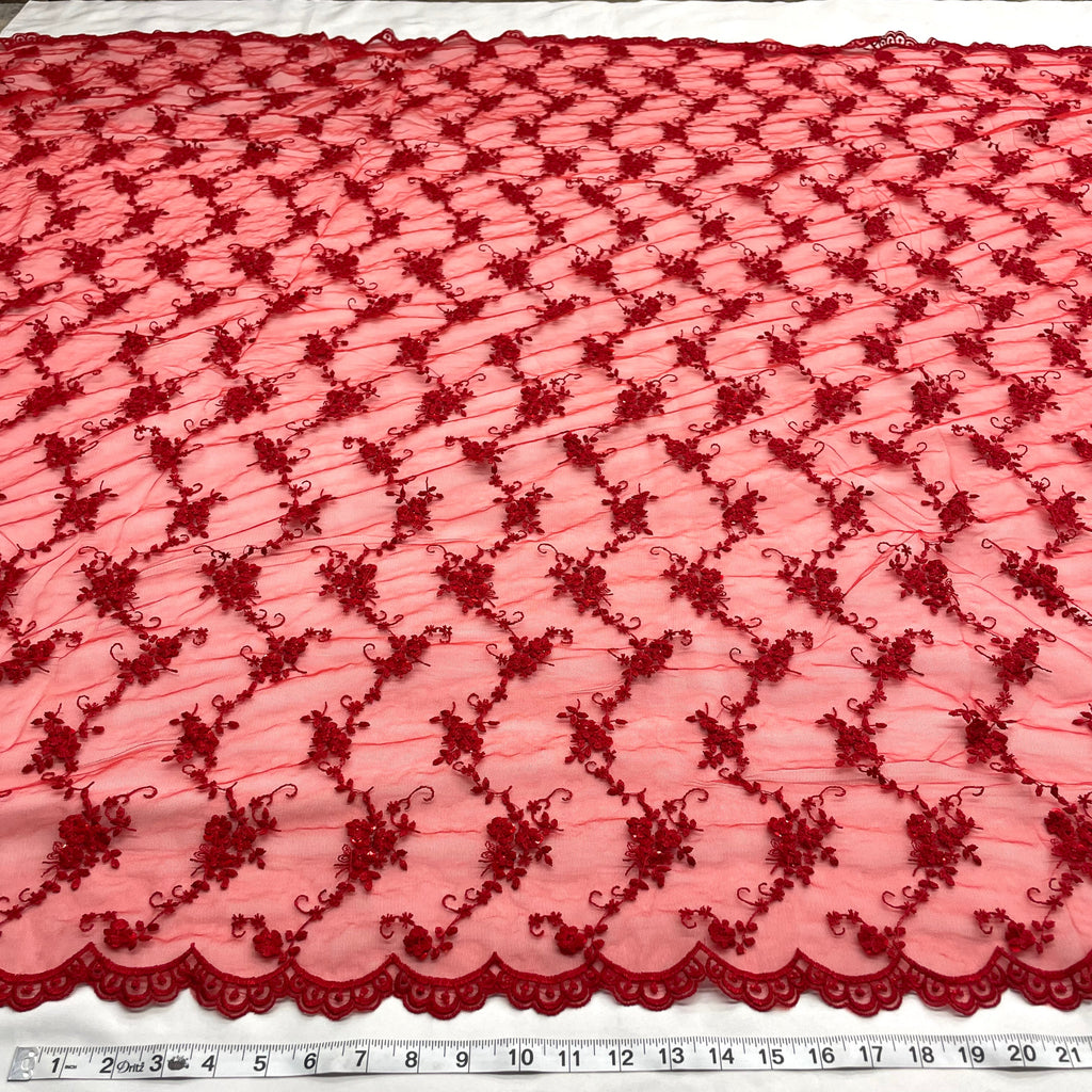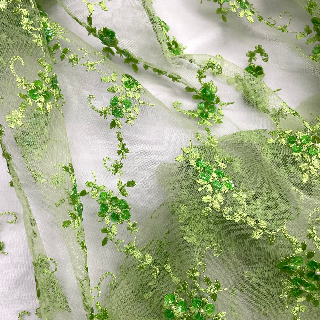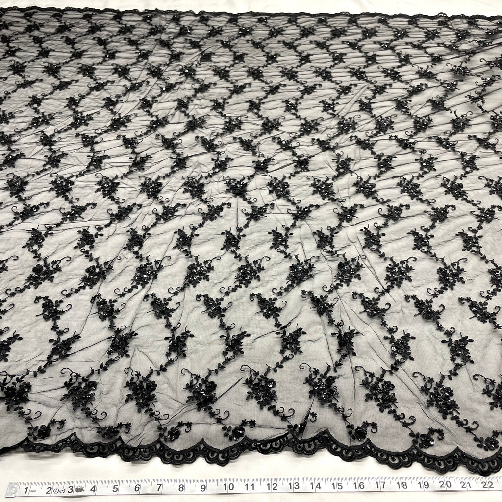 Beaded Lace Fabric Embroidered on 100% Polyester Net Mesh | Lace USA - 31360W-BP