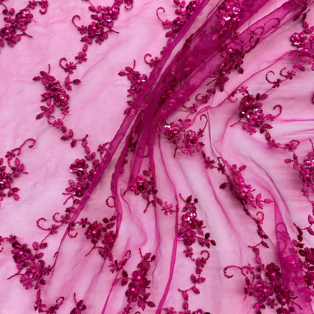 Introducing Lace USA’s Beaded Lace Fabric Embroidered on 100% Polyester Net Mesh –luxurious lace fabric perfect for enhancing any special occasion dress. From couture lace to bridal and evening dress lace, quinceanera dress lace, dance costume lace, and even formal dress lace, this embellished lace fabric is elegant and exquisite. The luxurious lace fabric is handmade with beaded, sequin and pearl detailing, making it the perfect choice for wedding dress lace and luxury quinceanera dress lace. Unique and decorative, this lace fabric can be used in a variety of high-end applications such as dance costumes, formal dresses, and more. Available in 5 unique colors, the lace fabric is 100% polyester and measures approximately 52” wide. Order your beautiful lace fabric today and Lace USA will have your order fulfilled within 24 business hours.