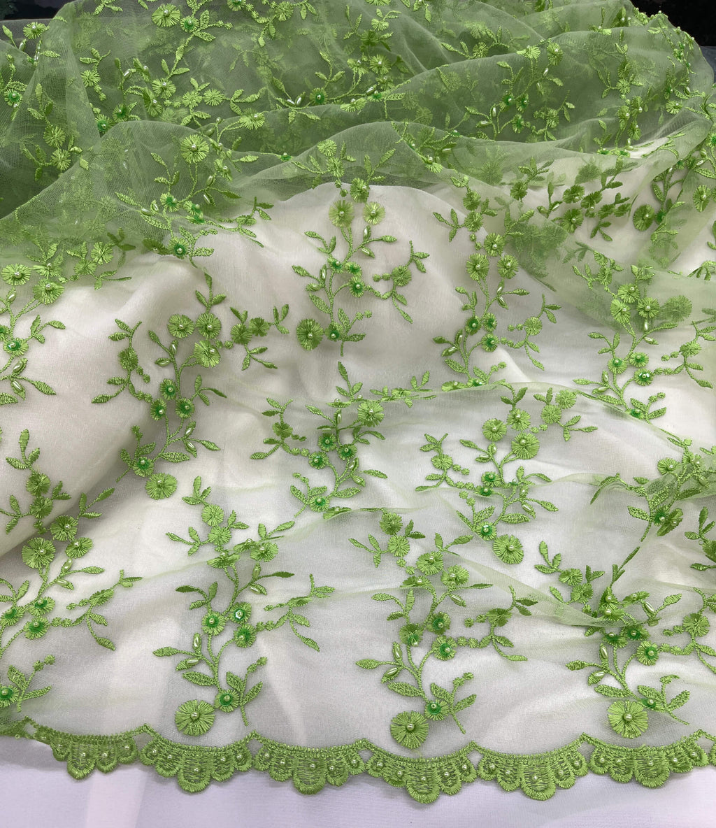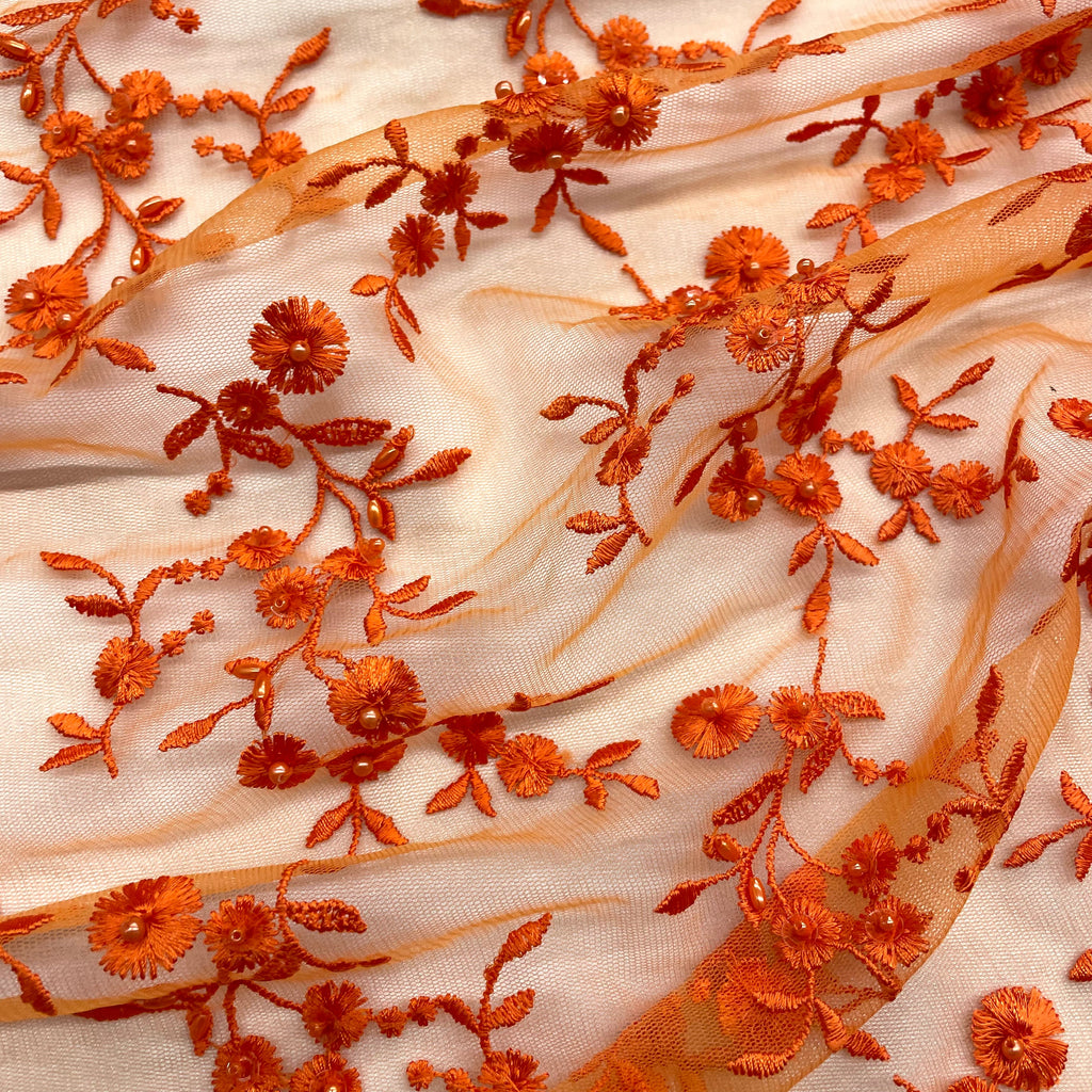 Beaded Lace Fabric Embroidered on 100% Polyester Net Mesh | Lace USA - 40103W-BP