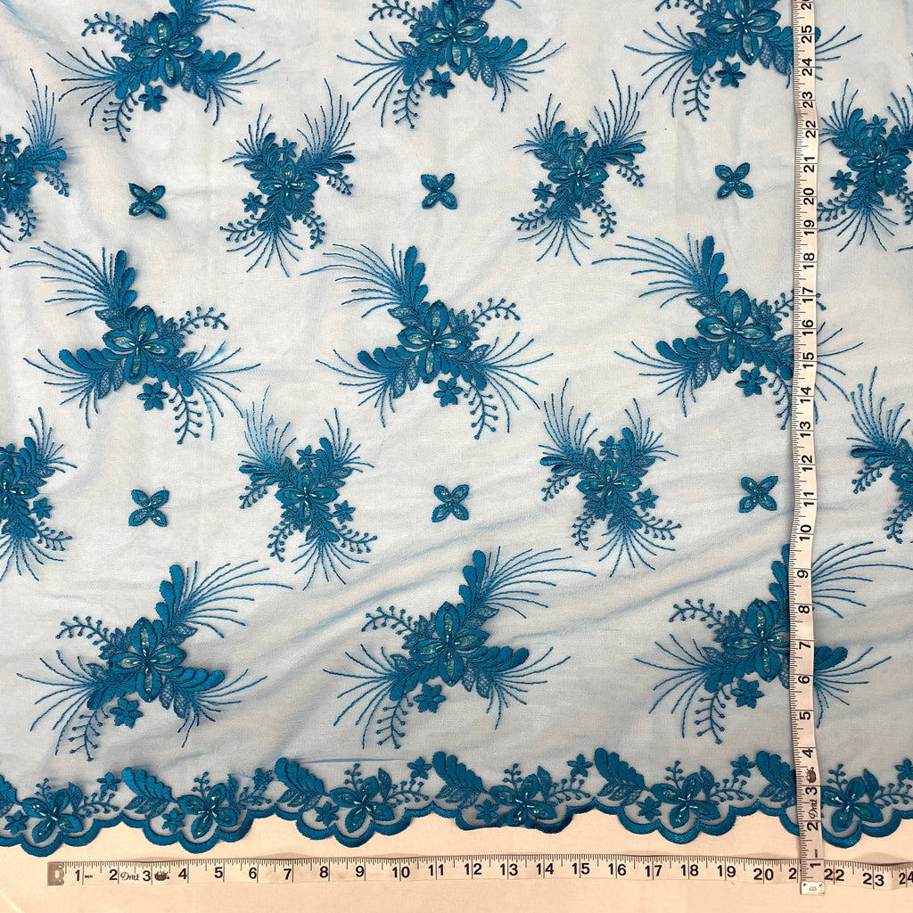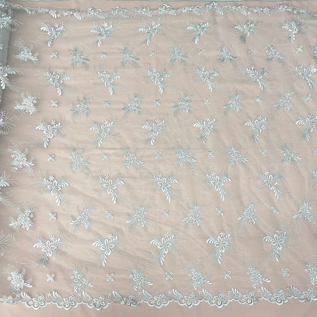 Beaded Lace Fabric Embroidered on 100% Polyester Net Mesh | Lace USA - 41078W-BP