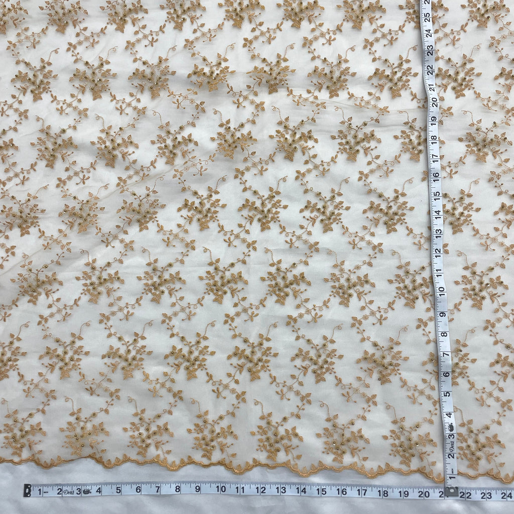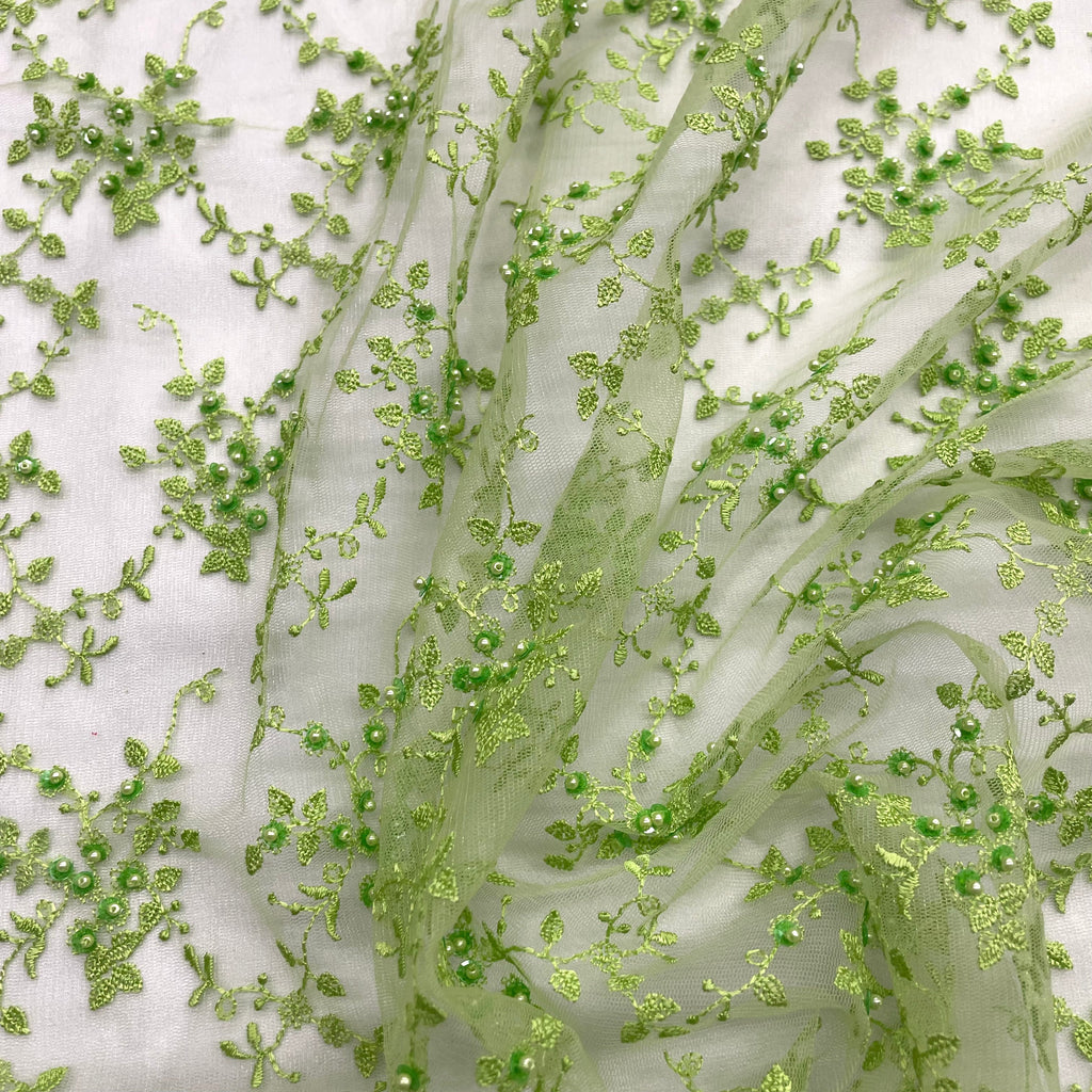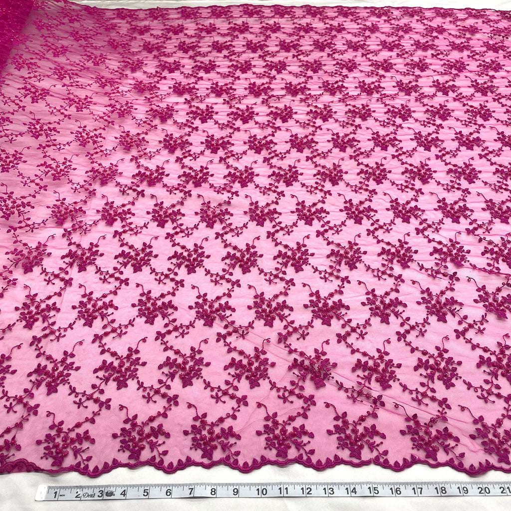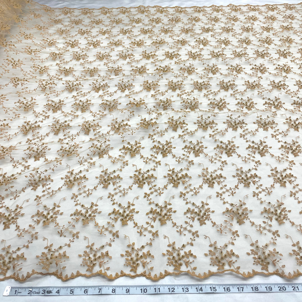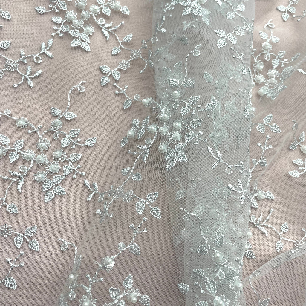 Beaded Lace Fabric Embroidered on 100% Polyester Net Mesh | Lace USA - 41608W-BP