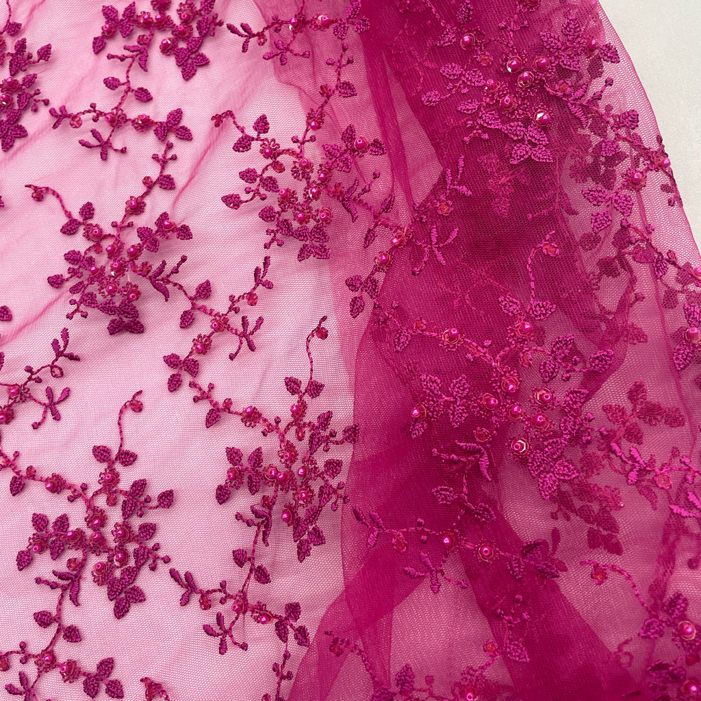 Add breathtaking style to your special occasion with this exquisite Beaded Lace Fabric Embroidered on 100% Polyester Net Mesh from Lace USA! Delicately crafted with hand-embroidered detailing and an eye-catching array of beading, this lace fabric is designed to bring opulence and sophistication to your look. Perfect for weddings, evening dresses, Quinceanera, and formal dances, this lace offers a timeless elegance that will leave a lasting impression. To top it off, this fabric is available in five different colors, making it perfect for any season. Whether you're in search for a couture lace for your bridal, evening dress, or a stunningly decorative lace for your dance costume, this fabric will be sure to make your dream look a reality. Shop today to experience the luxury and elegance of Lace USA! Size: Approximately 53" wide / Ships within 24 business hours Colors.