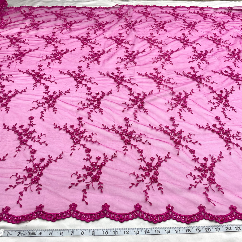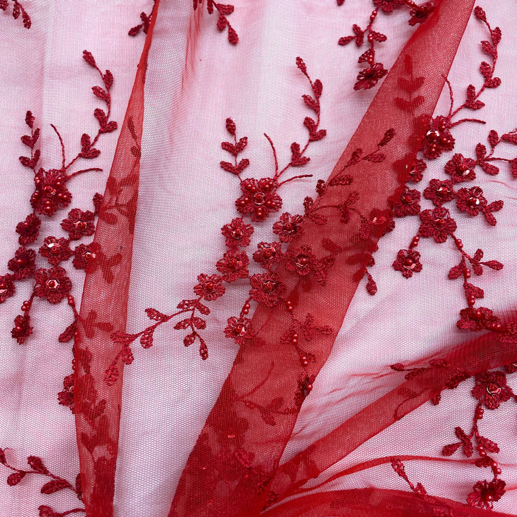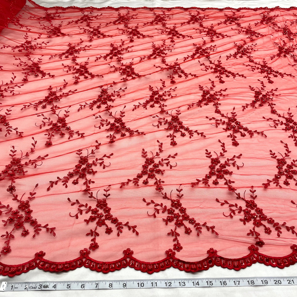 Introducing Lace USA's Beaded Lace Fabric Embroidered on 100% Polyester Net Mesh - a perfect addition to any formal or special occasion ensemble and a must-have for fashionable brides and stylists. This intricate fabric is a timeless staple for every wardrobe; it features beautiful beads and pearls accenting the delicately woven design made of 100% Polyester net mesh, making it a unique couture lace perfect for a variety of uses, such as wedding dresses, evening gowns, dance costumes, and quinceanera dresses. This fabric comes in 3 different colors and ships within 24 business hours. Bring your most elegant and luxurious styles to life with Lace USA's exquisite beaded lace fabric, crafted from the highest quality materials, including luxurious and elegant lace, high-end lace fabric, and existing accent beads and pearls. From traditional formal events to artistic dance showcases, this delicate fabric will provide you with the perfect elegant and embellished touch for any design creation. Use it to create high-end garments with an elegant style, added embellishments, and tasteful accenting. This high quality fabric is the perfect choice for creating masterpieces that are suitable for every special occasion; add it to your wedding dress, evening gown, or quinceanera dress to add an exquisite touch of sophistication that is sure to stand out among the rest. Elevate your ensembles to the next level with Lace Size: Approximately 54" wide.