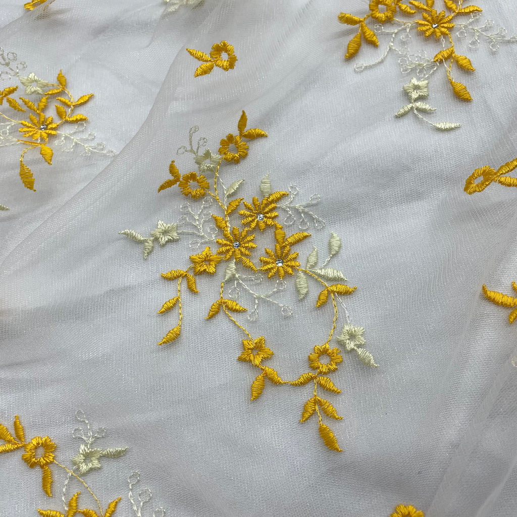 Beaded Lace Fabric Embroidered on 100% Polyester Net Mesh | Lace USA - 42091W-RS
