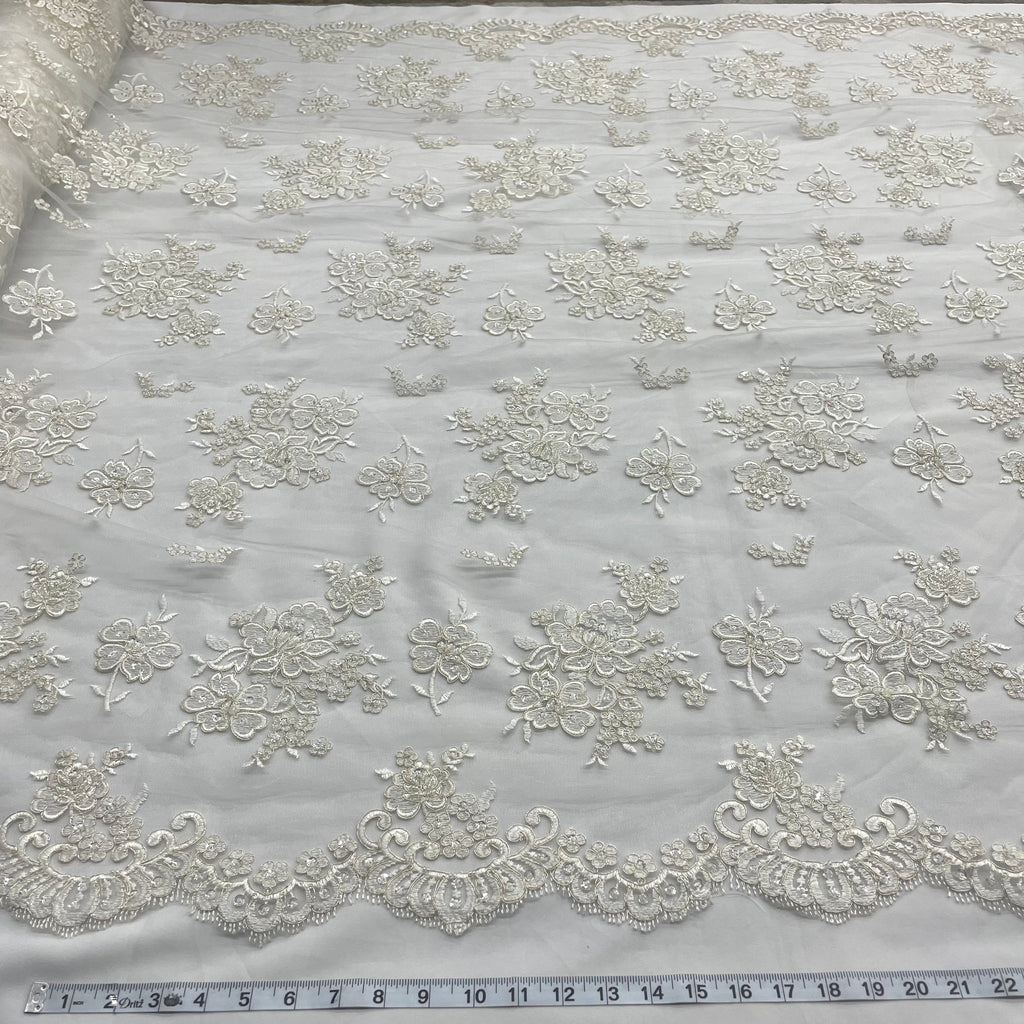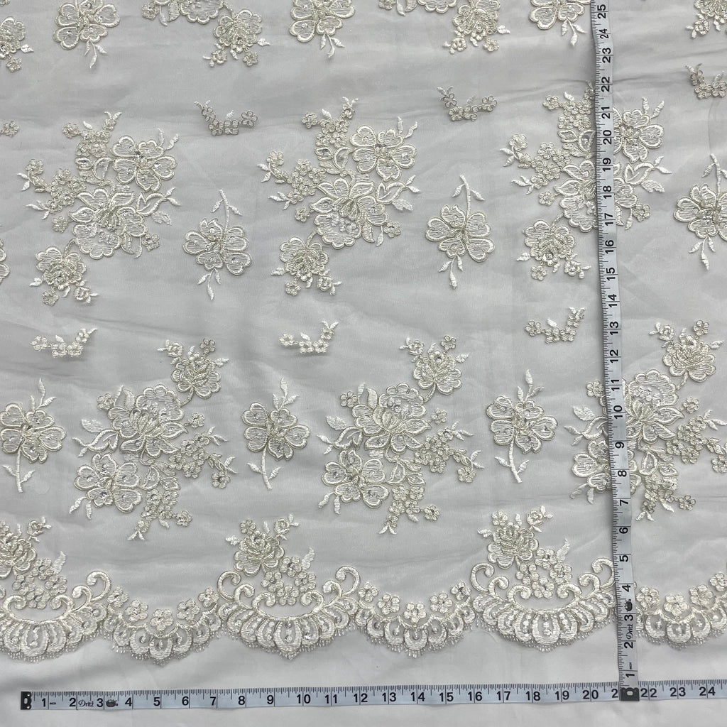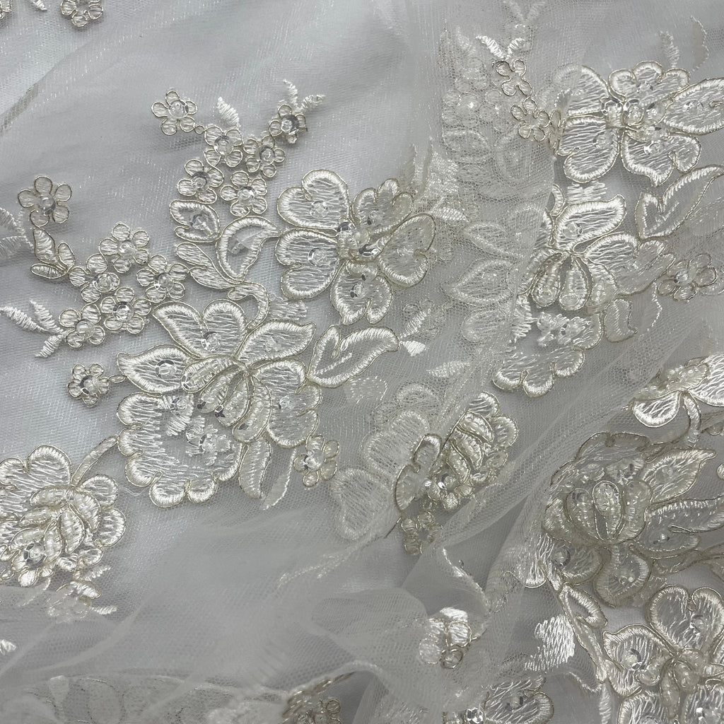 Beaded Lace Fabric Embroidered on 100% Polyester Net Mesh | Lace USA - 97076WA-BP