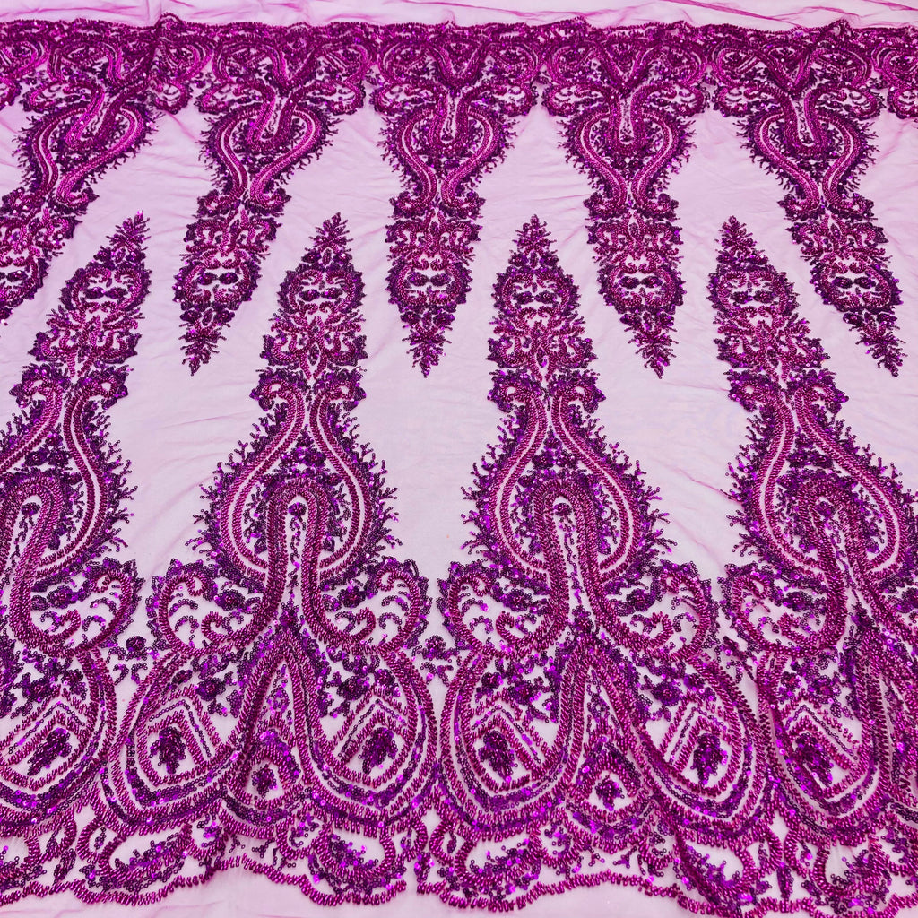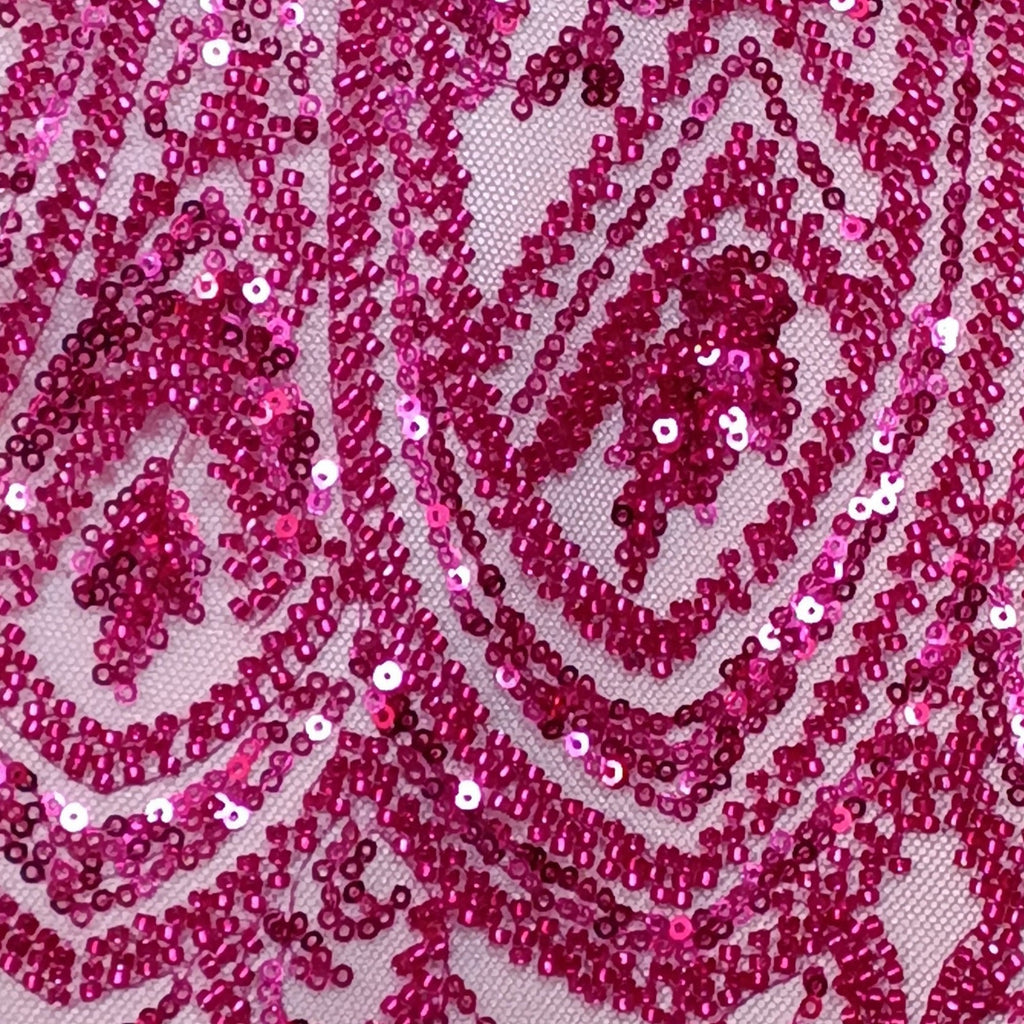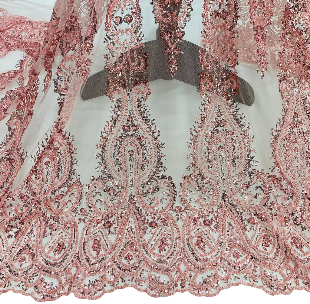 Make a statement for your special occasions with Lace USA's elegant lace fabric! Our Beaded Lace Fabric Embroidered on 100% Polyester Net Mesh is perfect for creating lasting memories with your couture lace wedding dress or formal dress. Our lace fabric is sure to add a touch of luxury to any quinceanera dress, evening dress, or dance costume. From beaded to embroidered, adding a high-end lace to whatever you create will make it a show stopper. Our decorative lace is handmade and embellished with pearls and sequins of 3 available colors. Put effortless elegance into all of your special occasion designs with Lace USA's luxury lace fabric! Approximately 51" wide / Ships within 24 business hours.
