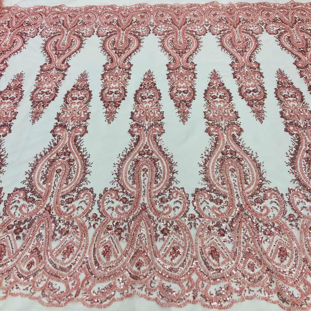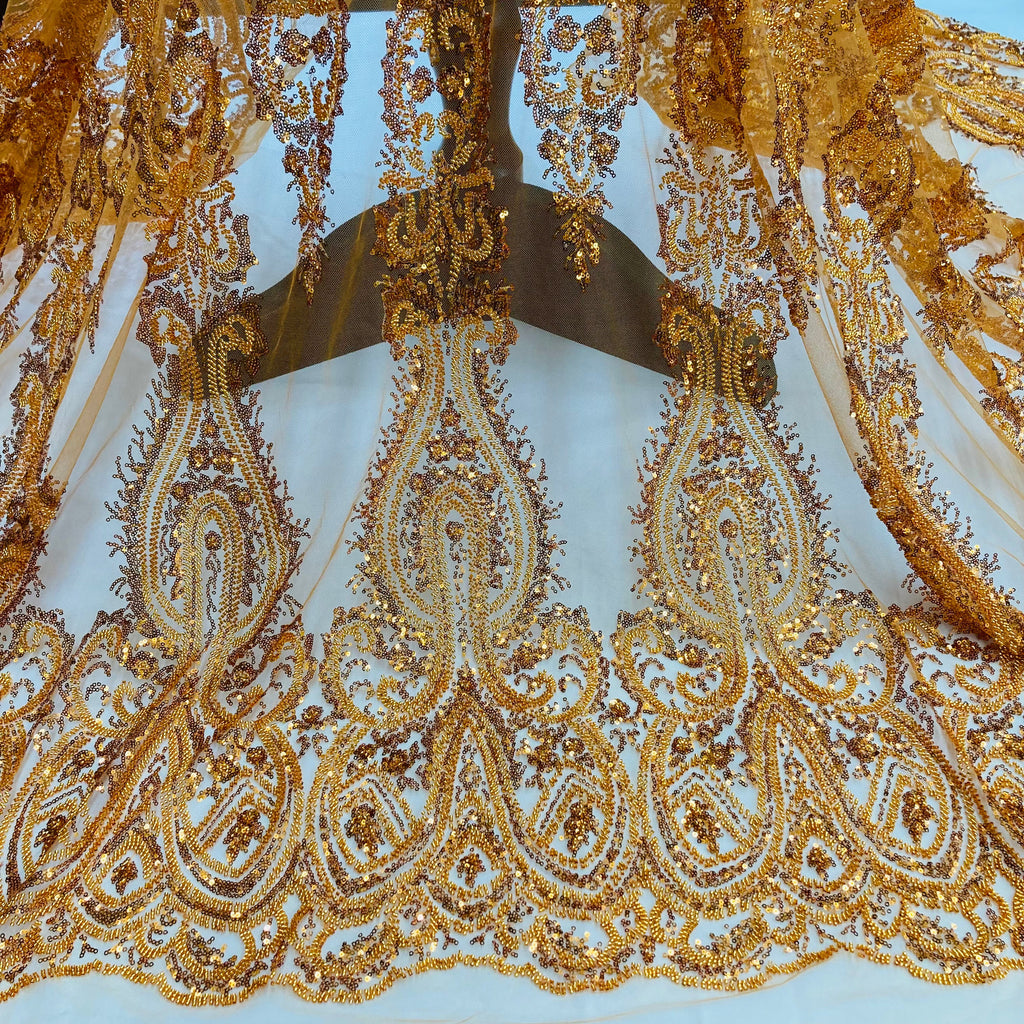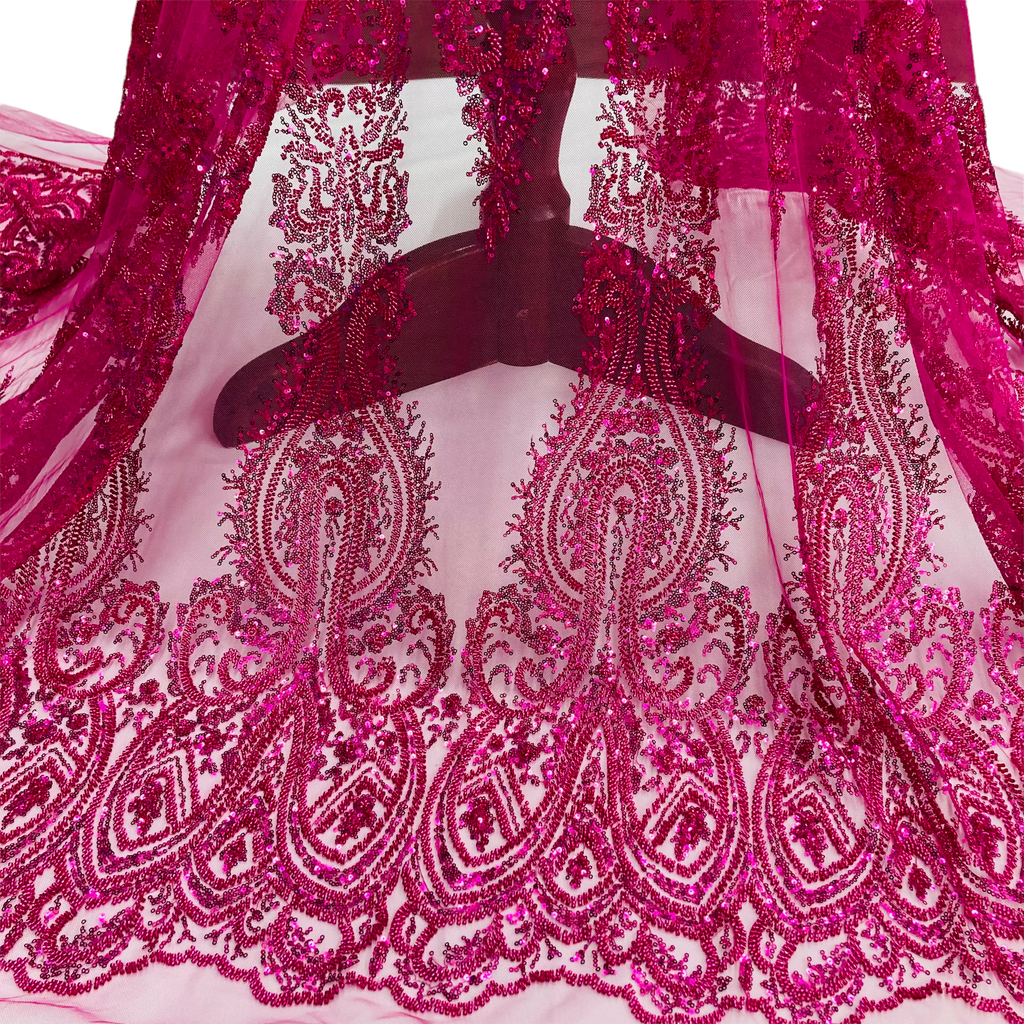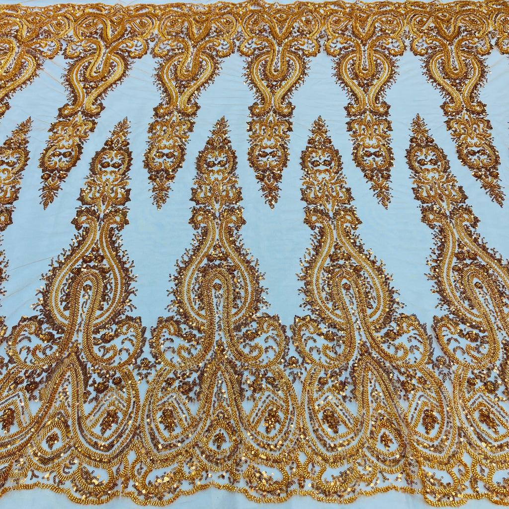 Beaded Lace Fabric Embroidered on 100% Polyester Net Mesh | Lace USA - GD-1022