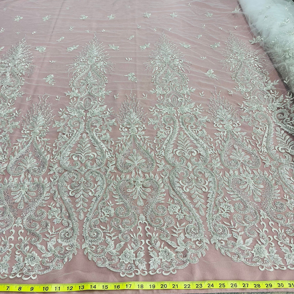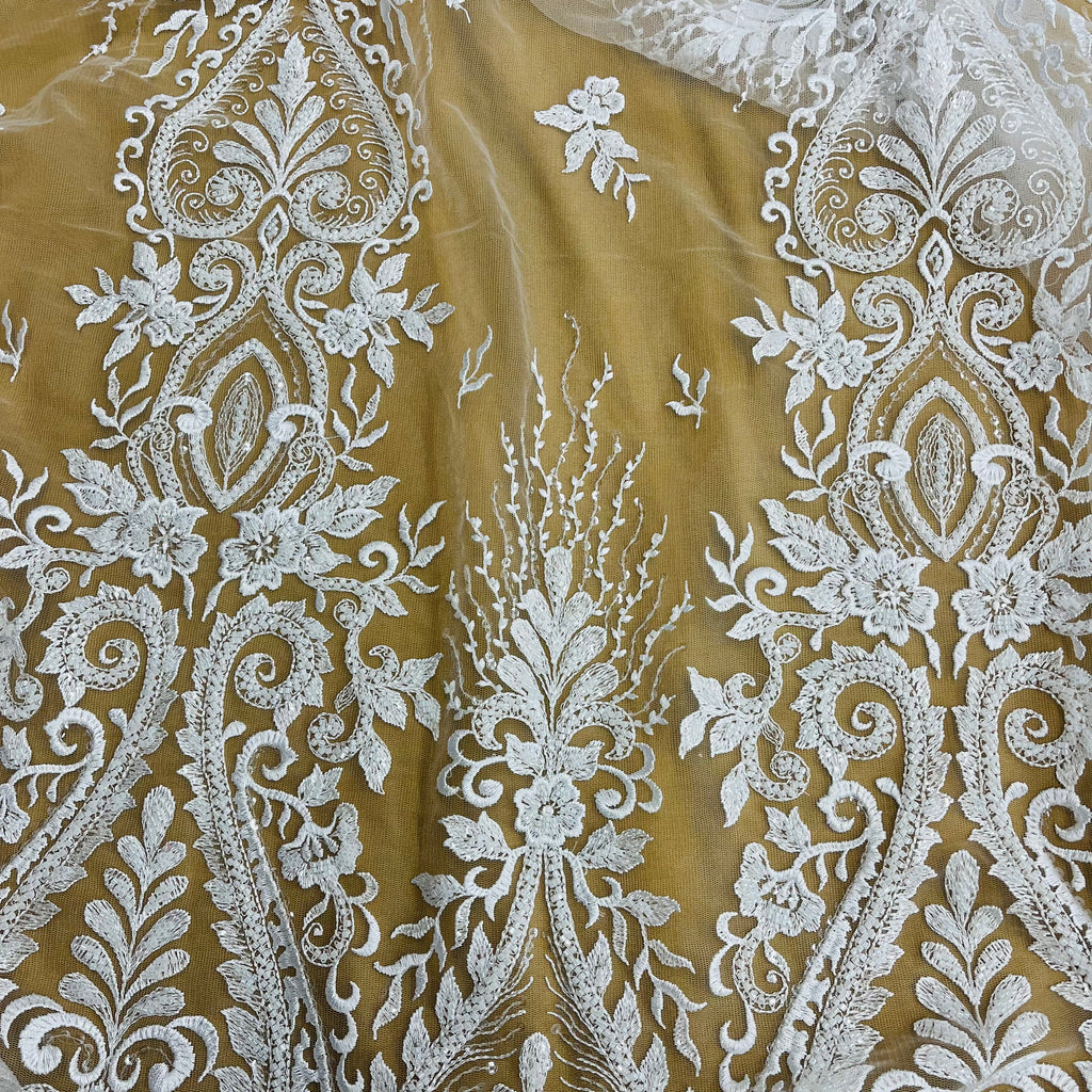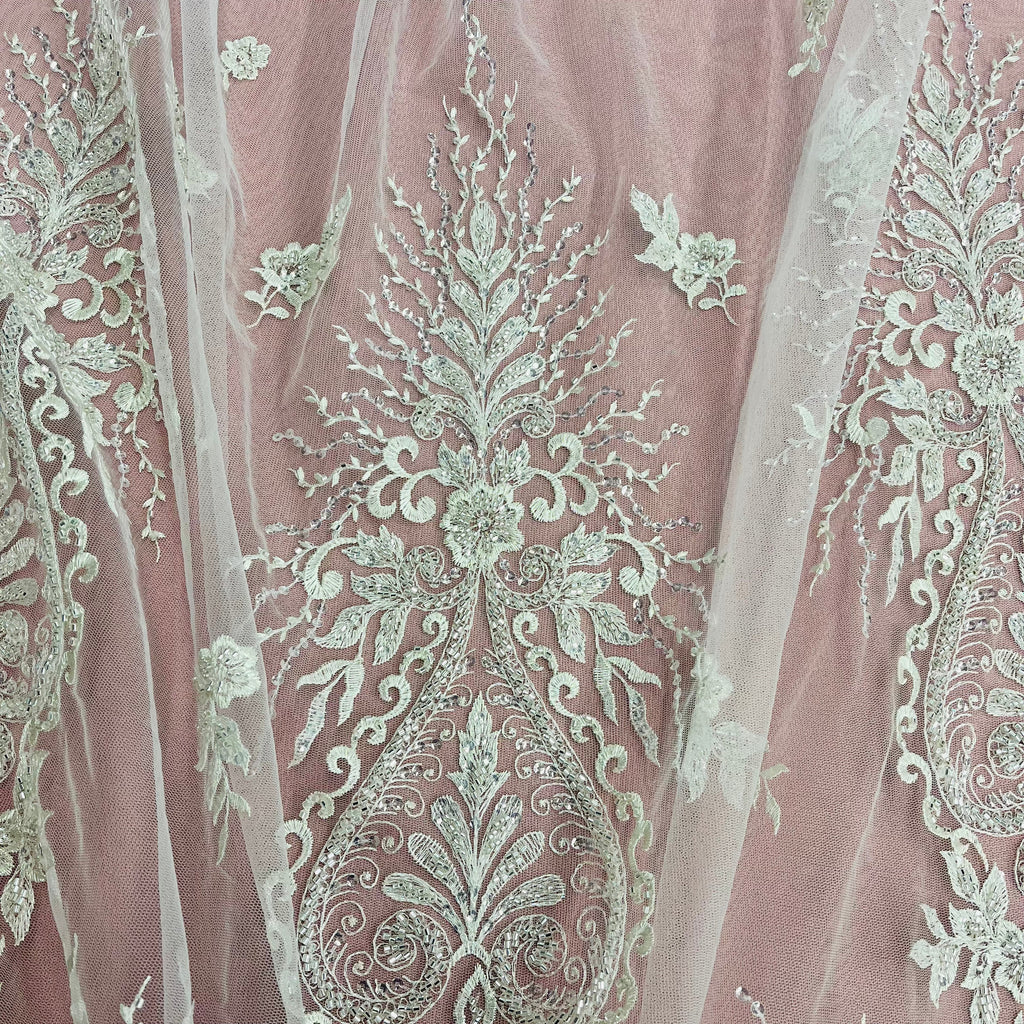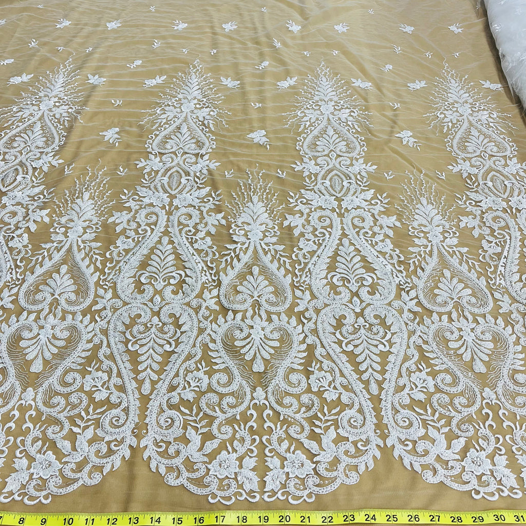 Beaded Lace Fabric Embroidered on 100% Polyester Net Mesh | Lace USA - GD-12152