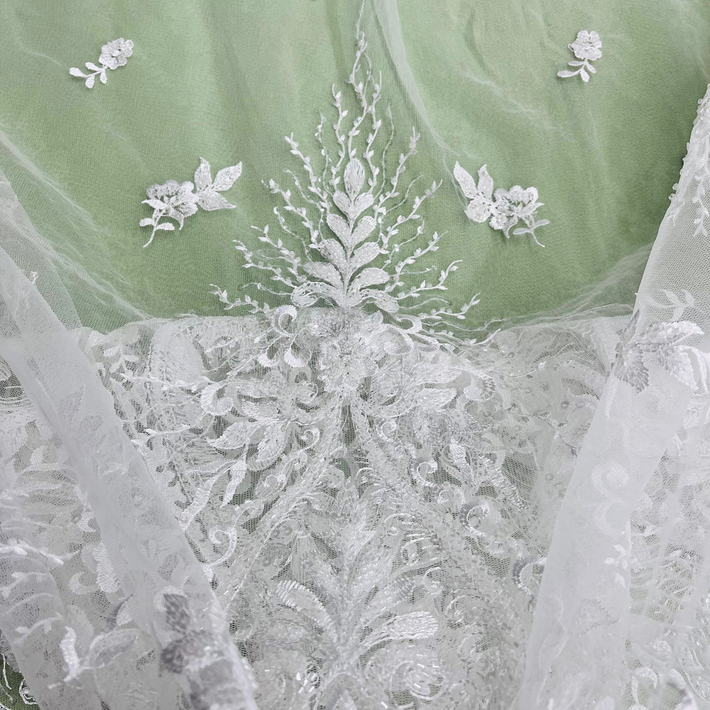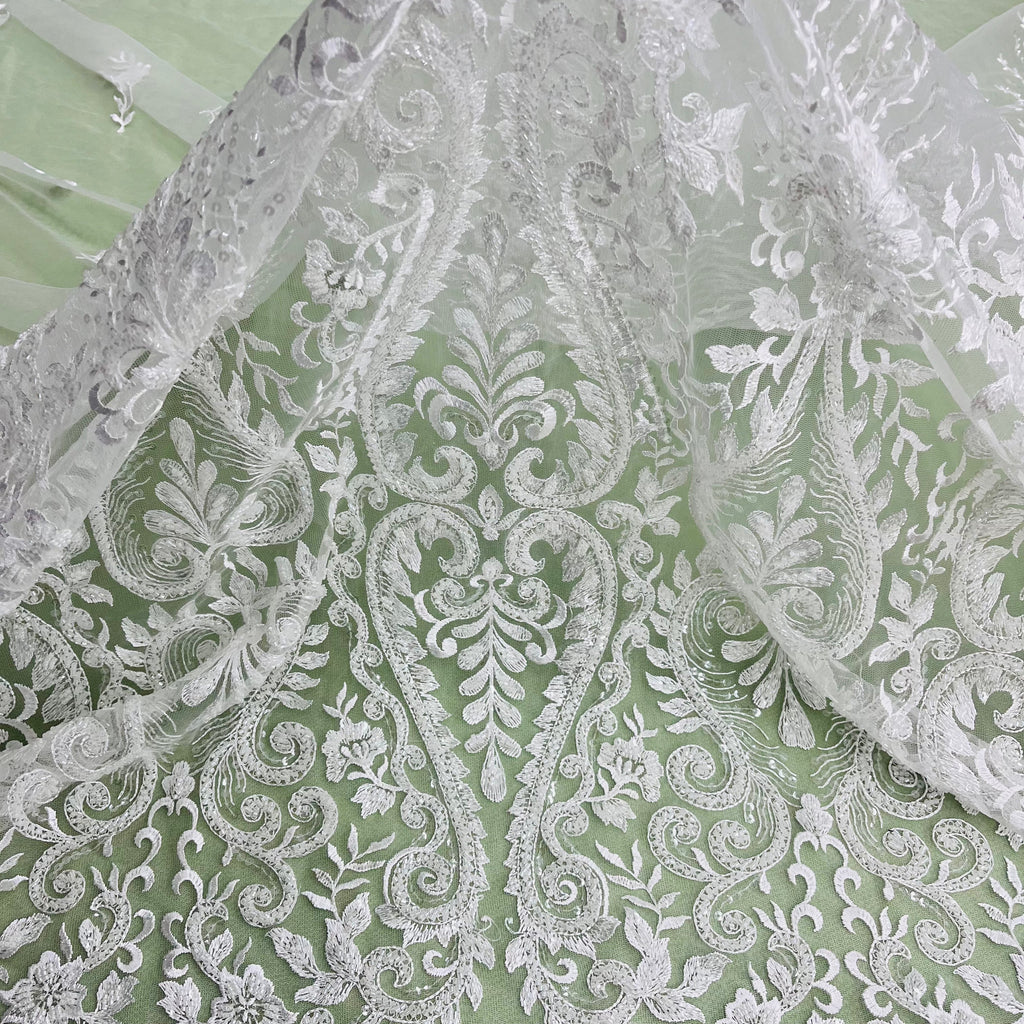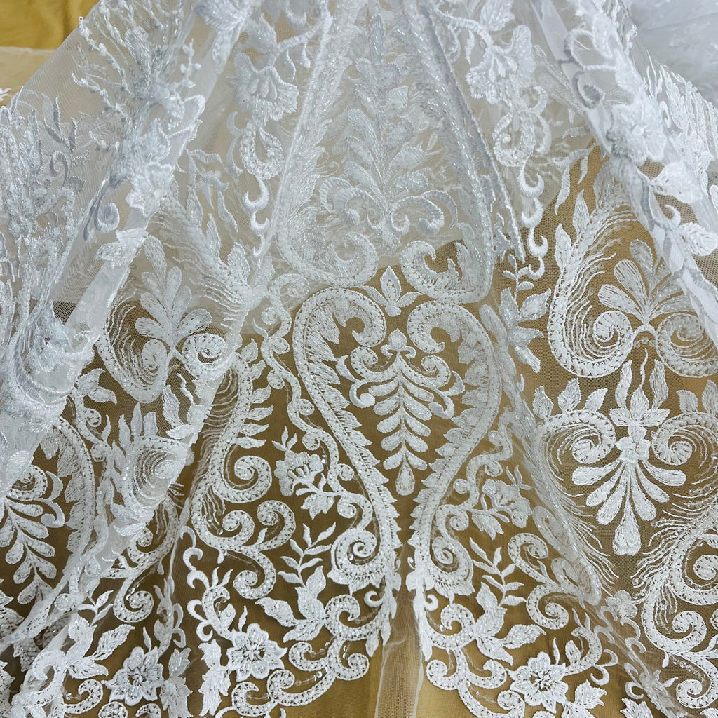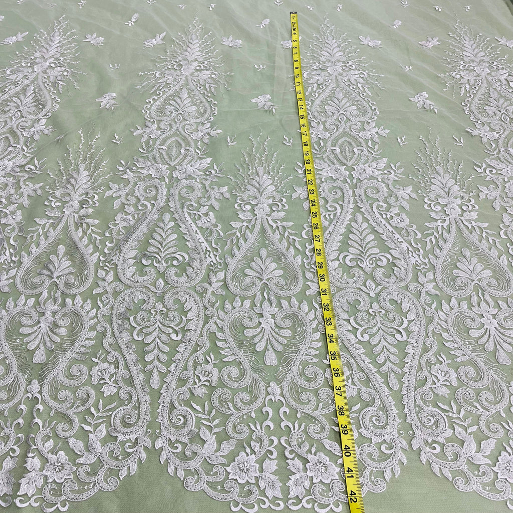 Beaded Lace Fabric Embroidered on 100% Polyester Net Mesh | Lace USA - GD-12152