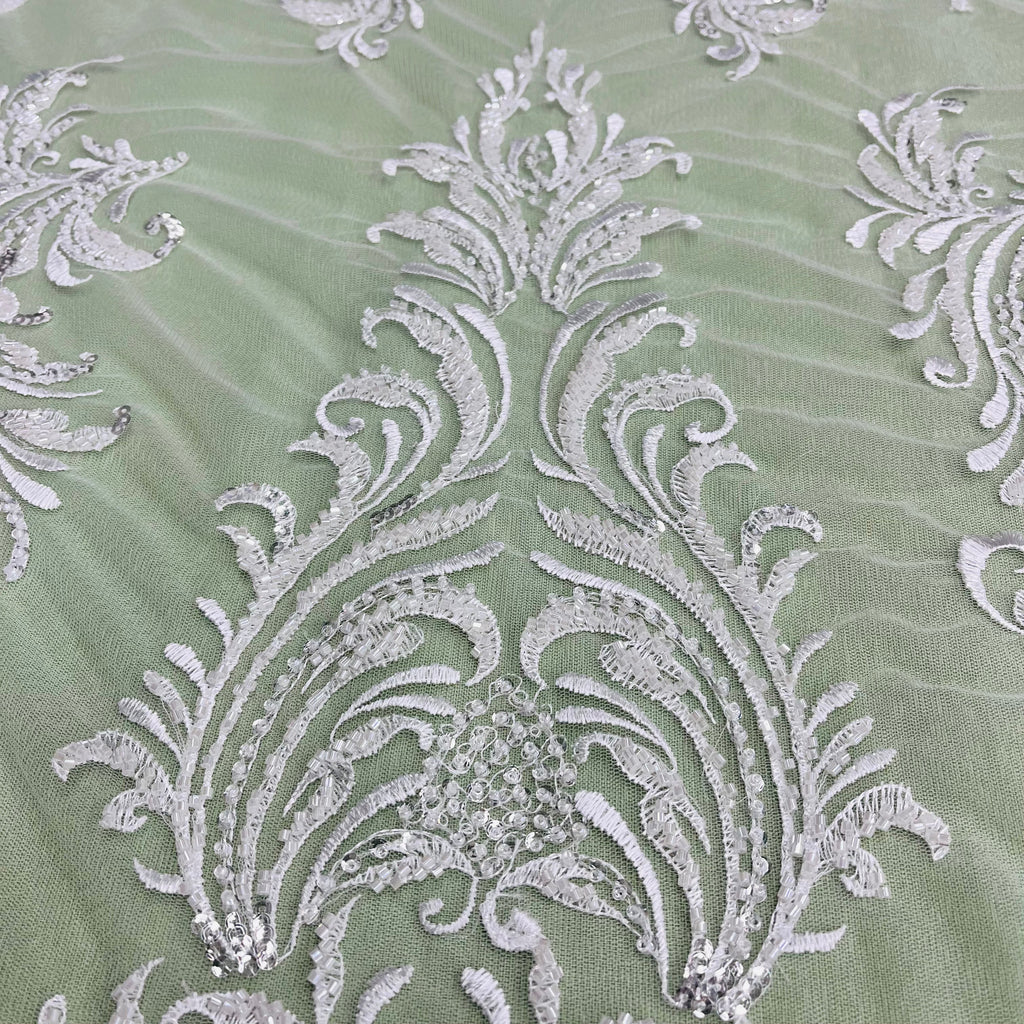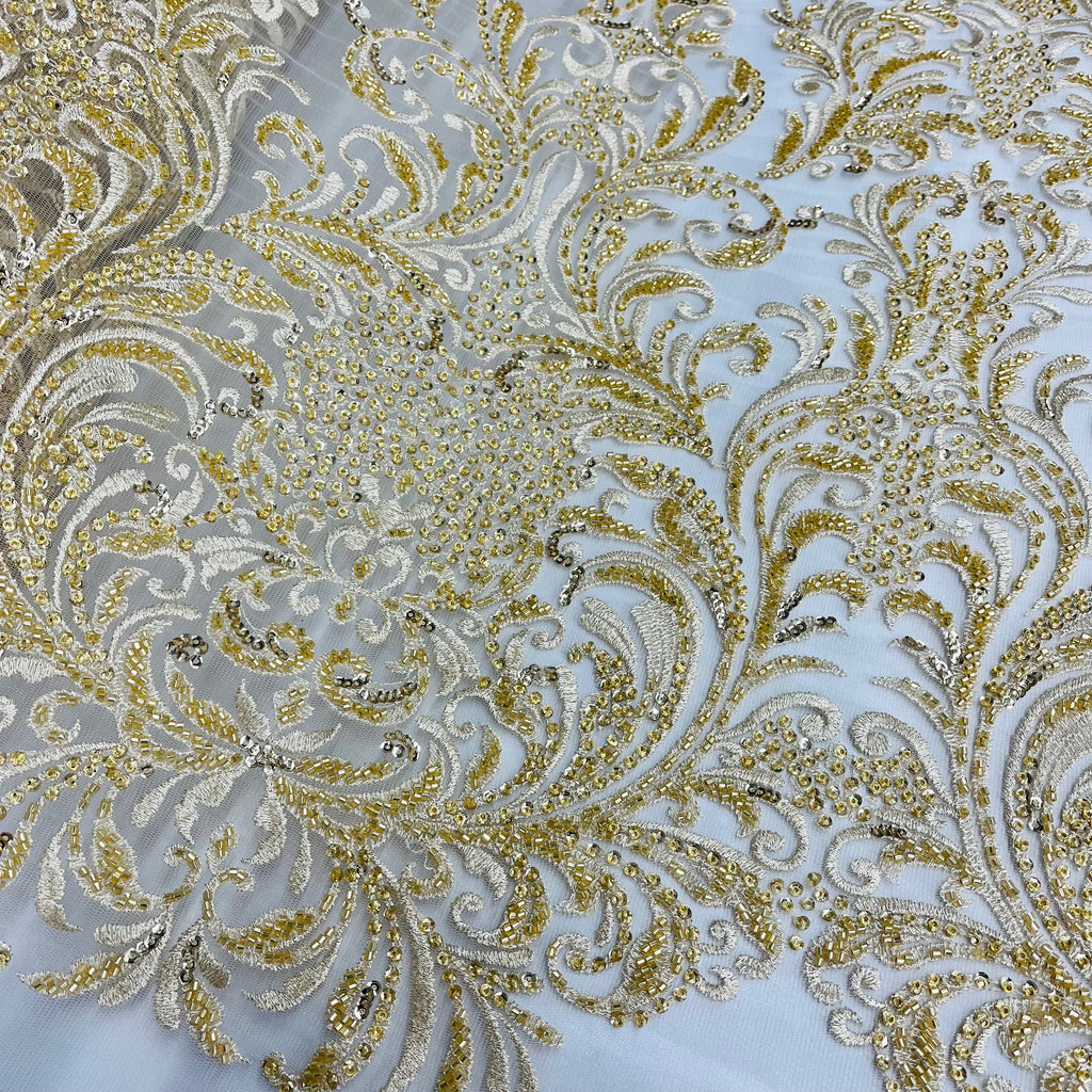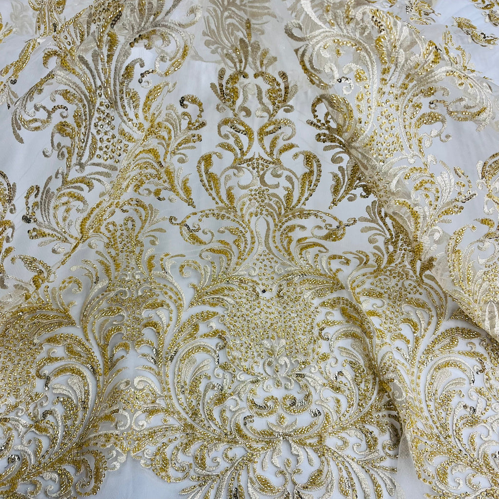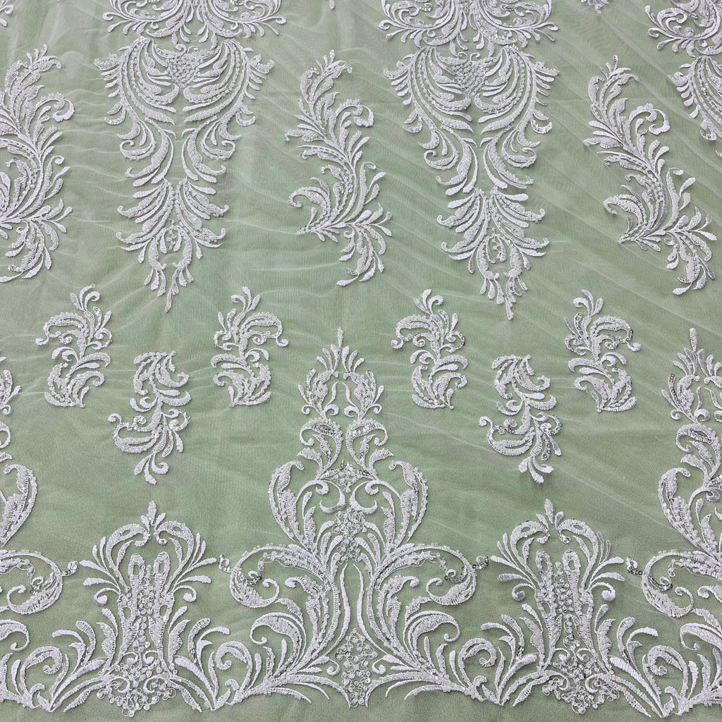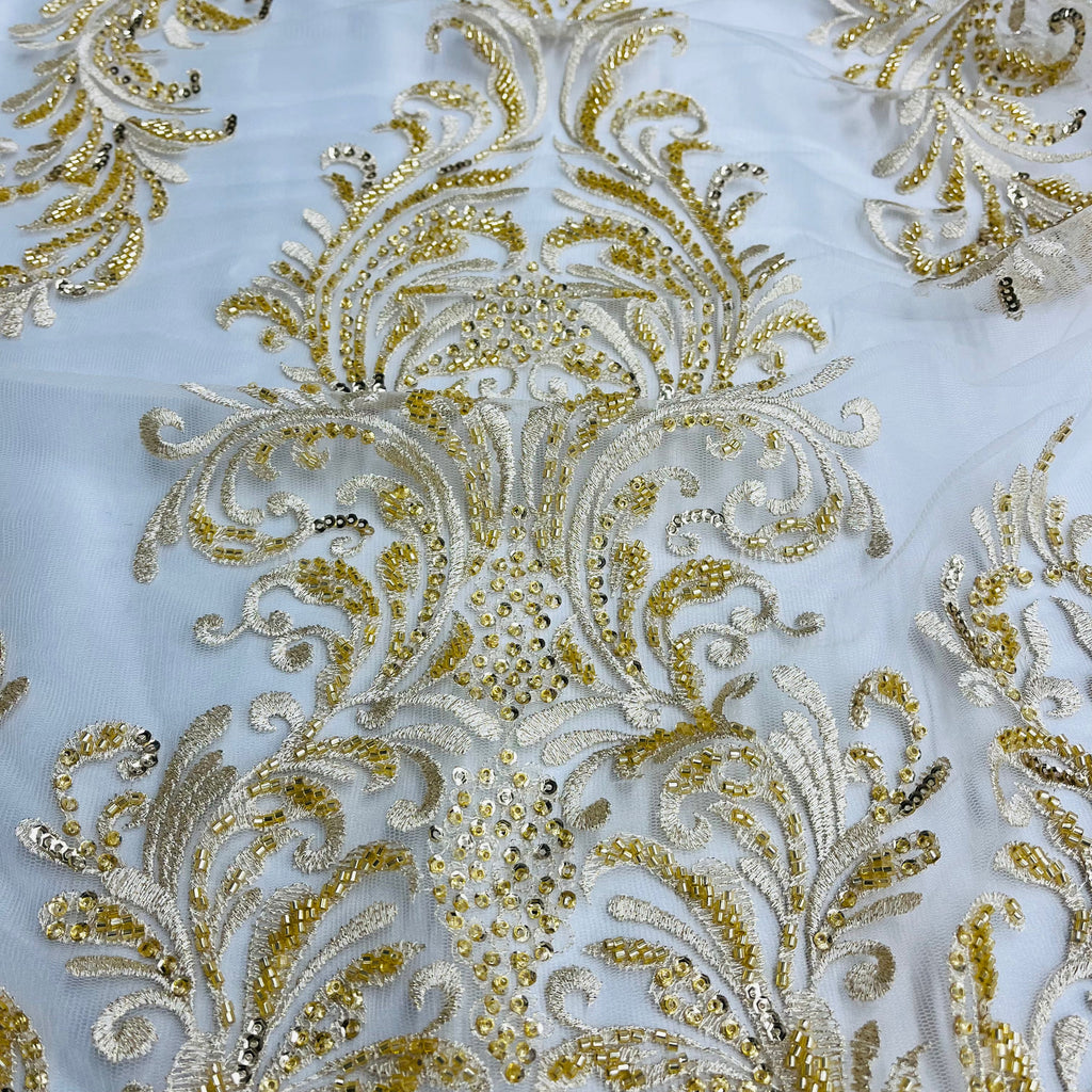 Beaded Lace Fabric Embroidered on 100% Polyester Net Mesh | Lace USA - GD-13267