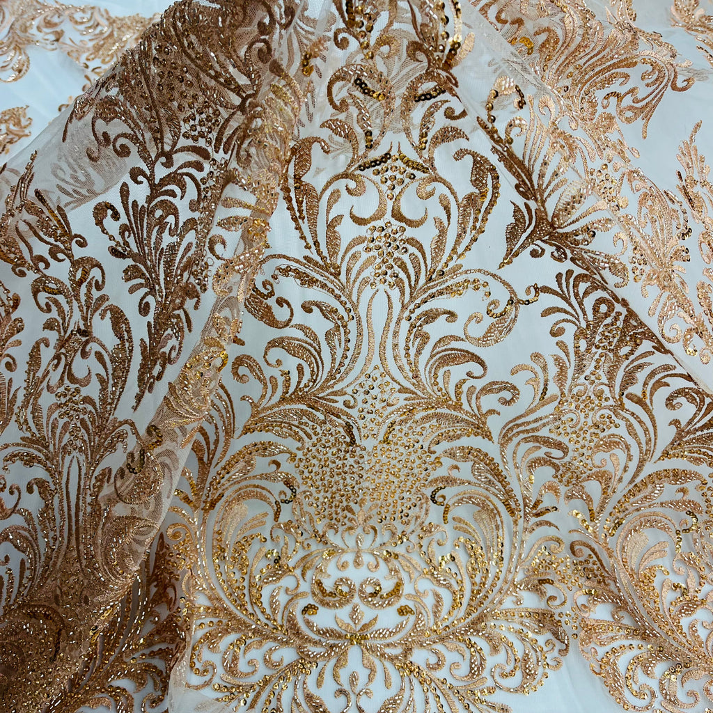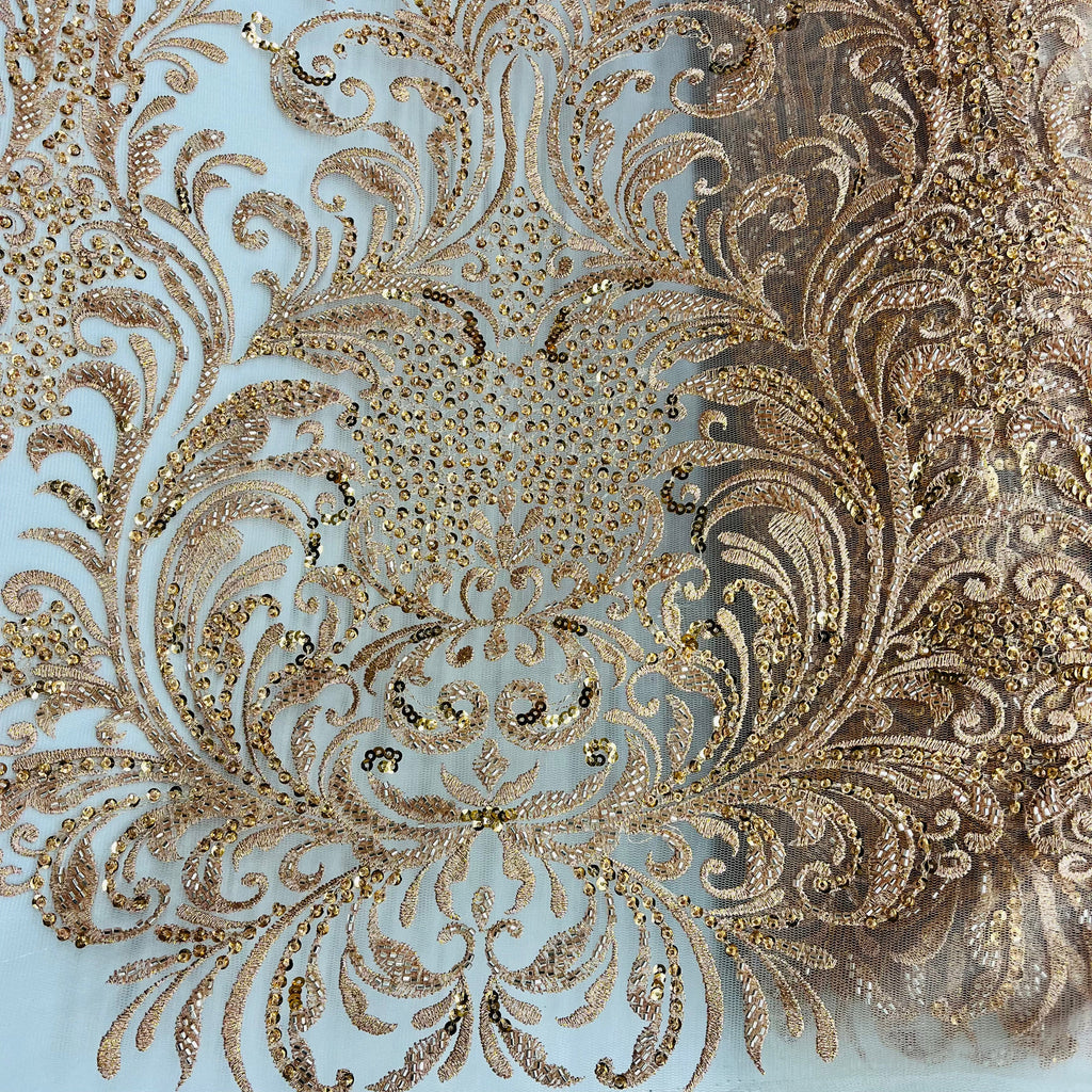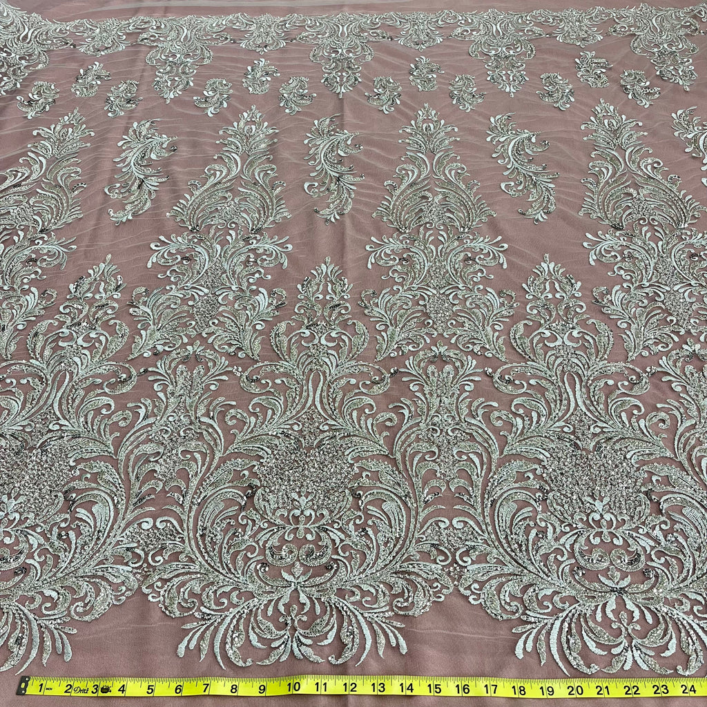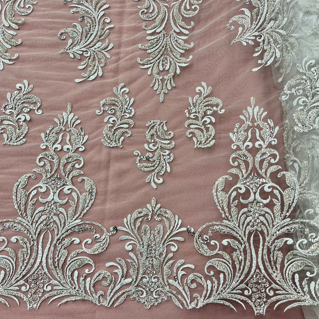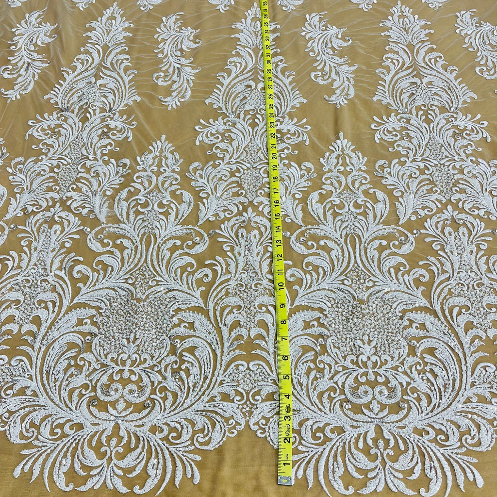 Beaded Lace Fabric Embroidered on 100% Polyester Net Mesh | Lace USA - GD-13267
